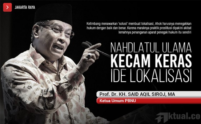 Jakarta, Aktual.co —Pengurus Besar Nahdlatul Ulama (PBNU) mengecam keras wacana yang disodorkan Gubernur DKI Basuki Tjahaja Purnama (Ahok) untuk membuat lokalisasi bagi pekerja seks komersial (PSK) di DKI Jakarta.
