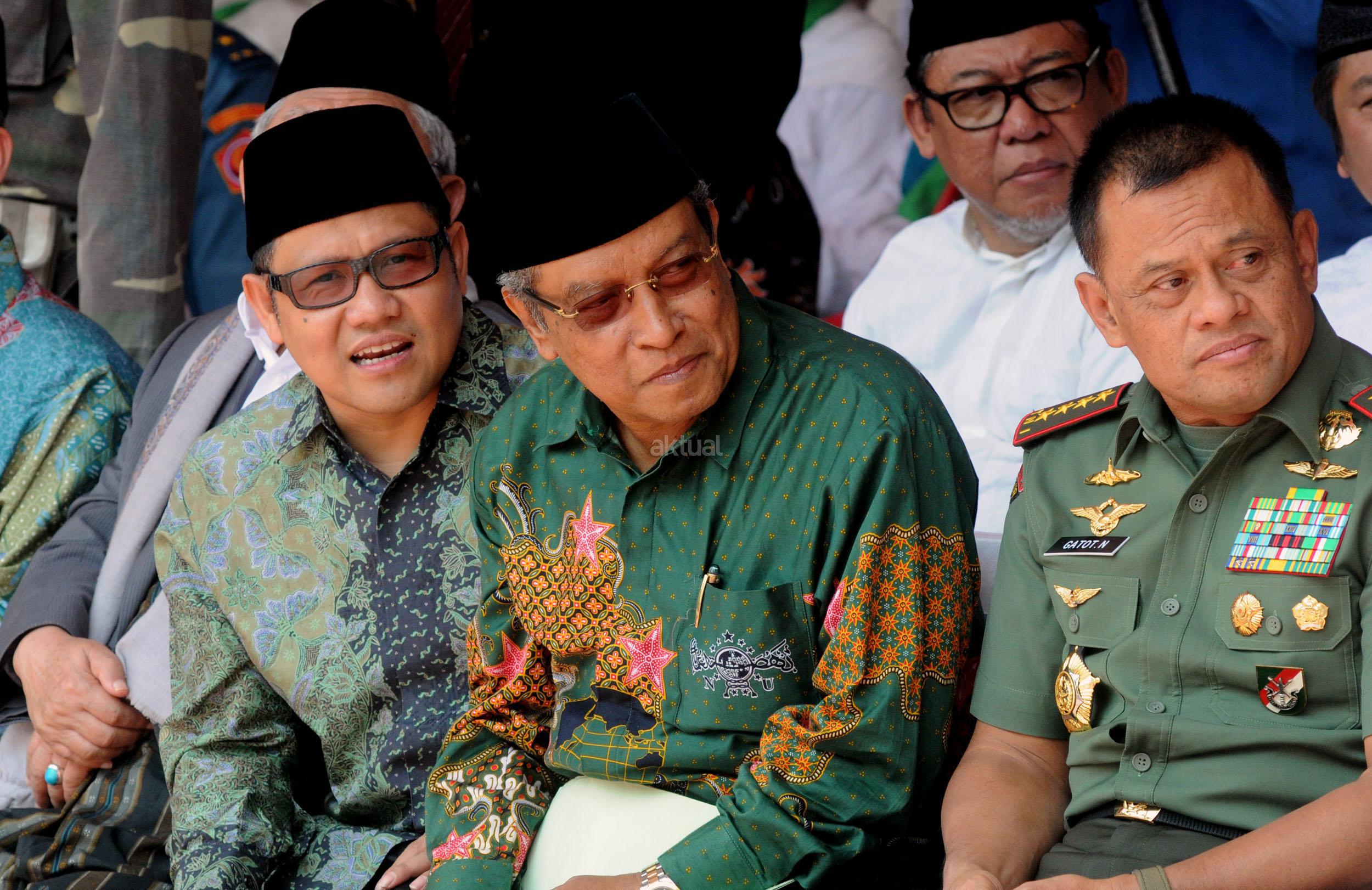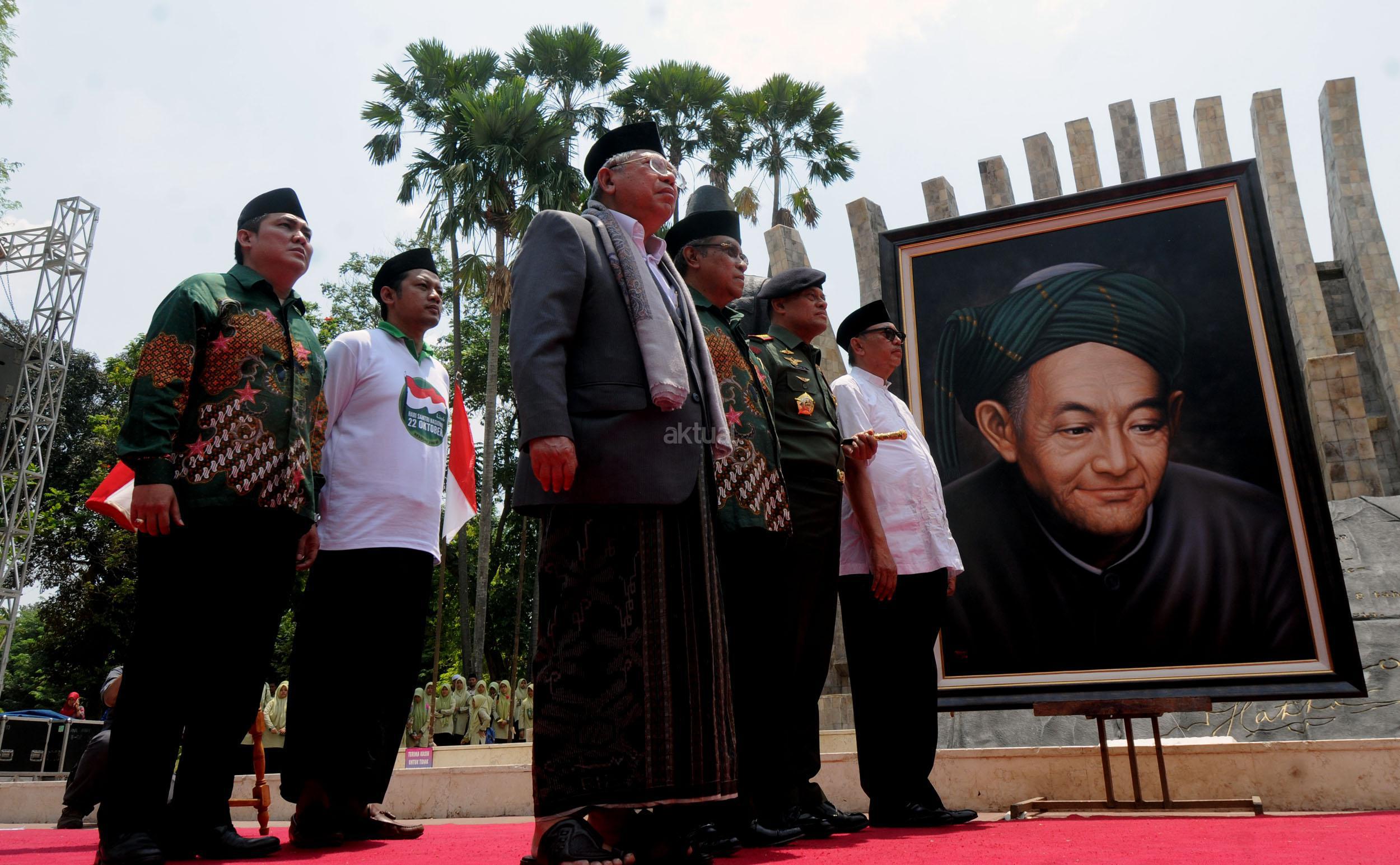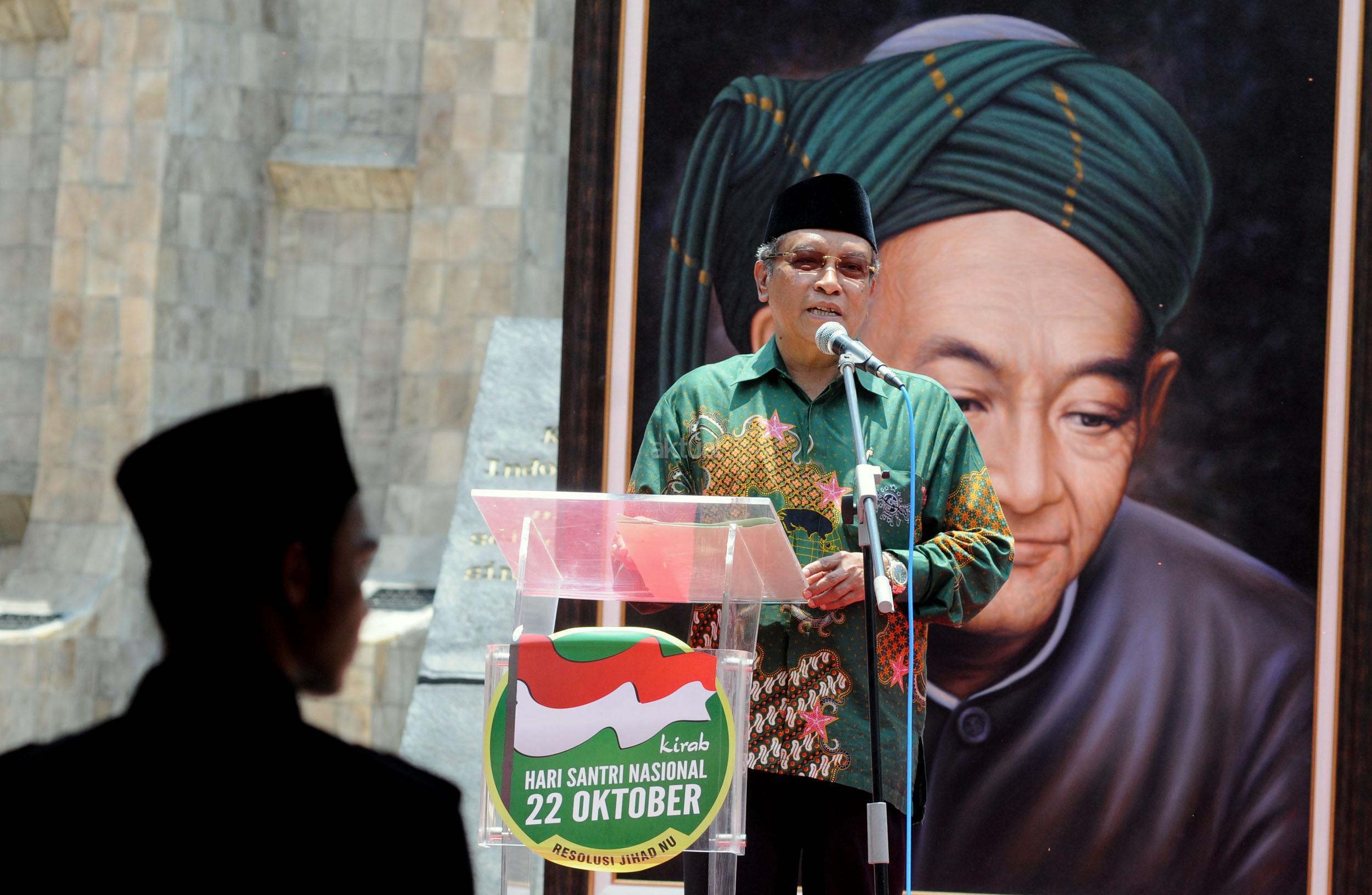 Ketua Umum PBNU KH Said Aqil Siradj menyampaikan pidato dalam acara Kirab Resolusi Jihad NU menyambut Hari Santri Nasional di Tugu Proklamasi, Jakarat, Kamis (22/10/2015). Pemerintah menetapkan Hari Santri Nasional ditetapkan jatuh pada tanggal 22 Oktober yang bertepatan dengan momentum Resolusi Jihad yang dikeluarkan oleh KH Hasyim Asy'ari dalam menjaga keutuhan NKRI dari agresi militer penjajah.