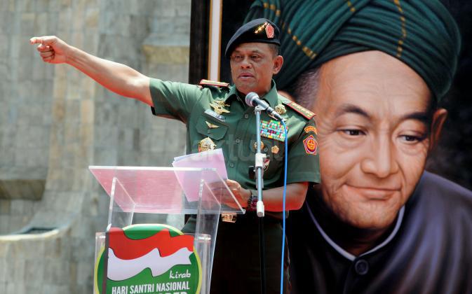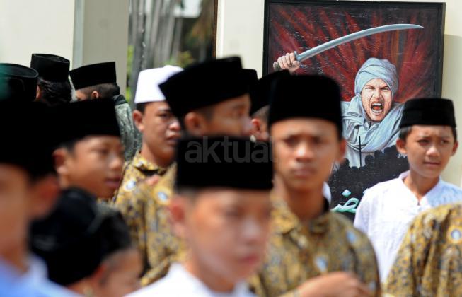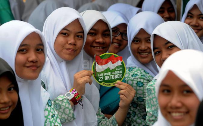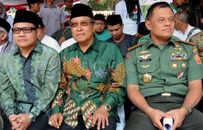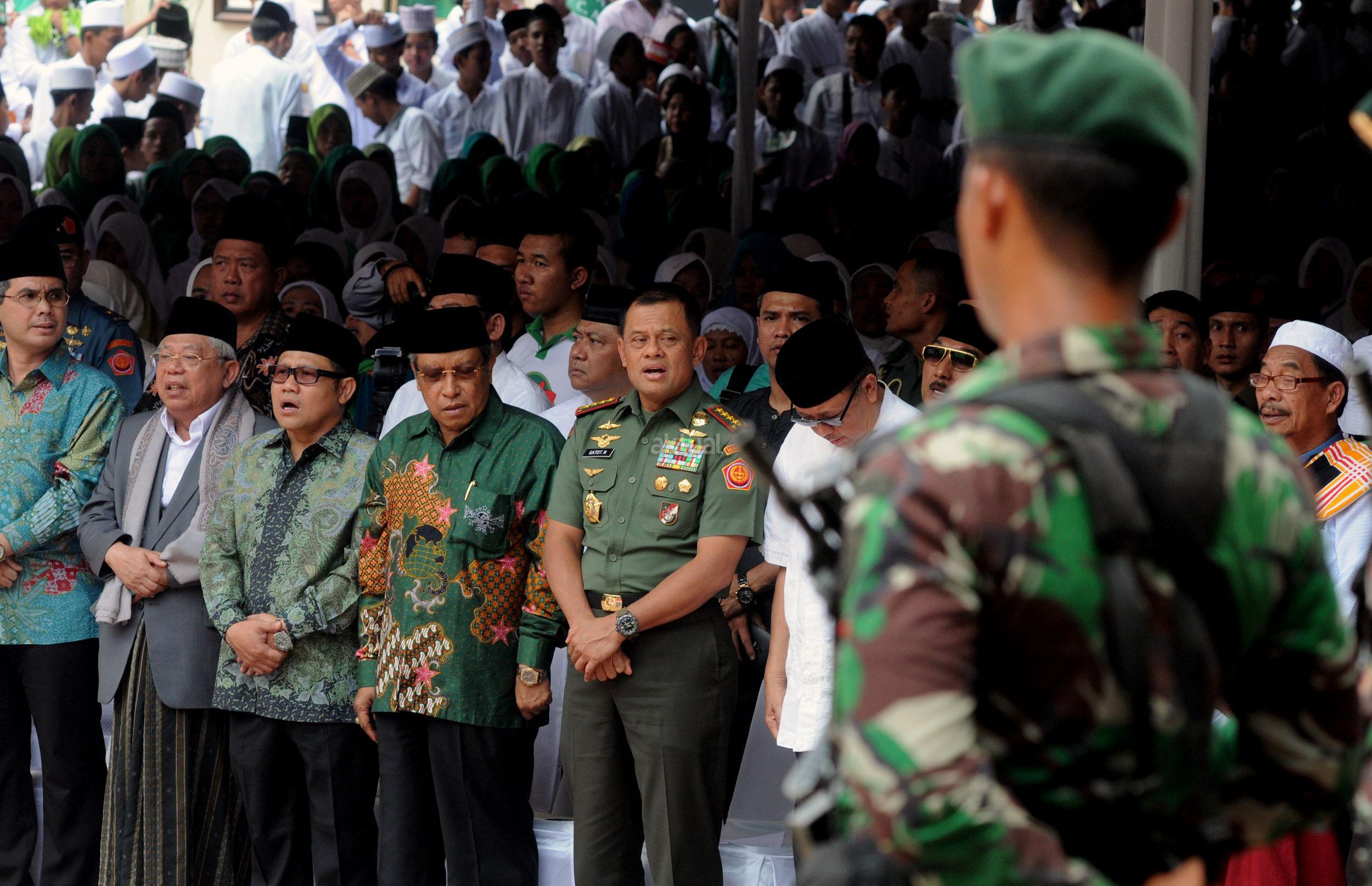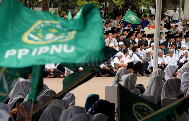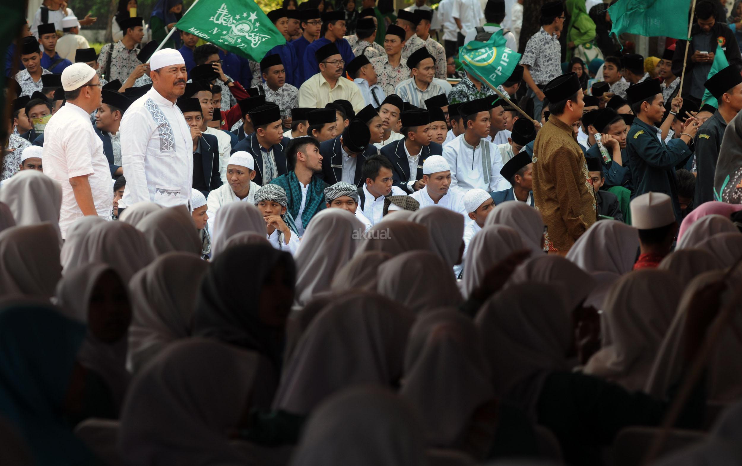 Ketua Umum PBNU KH Said Aqil Siradj menyampaikan pidato dalam acara Kirab Resolusi Jihad NU menyambut Hari Santri Nasional di Tugu Proklamasi, Jakarat, Kamis (22/10/2015). Pemerintah menetapkan Hari Santri Nasional ditetapkan jatuh pada tanggal 22 Oktober yang bertepatan dengan momentum Resolusi Jihad yang dikeluarkan oleh KH Hasyim Asy'ari dalam menjaga keutuhan NKRI dari agresi militer penjajah.