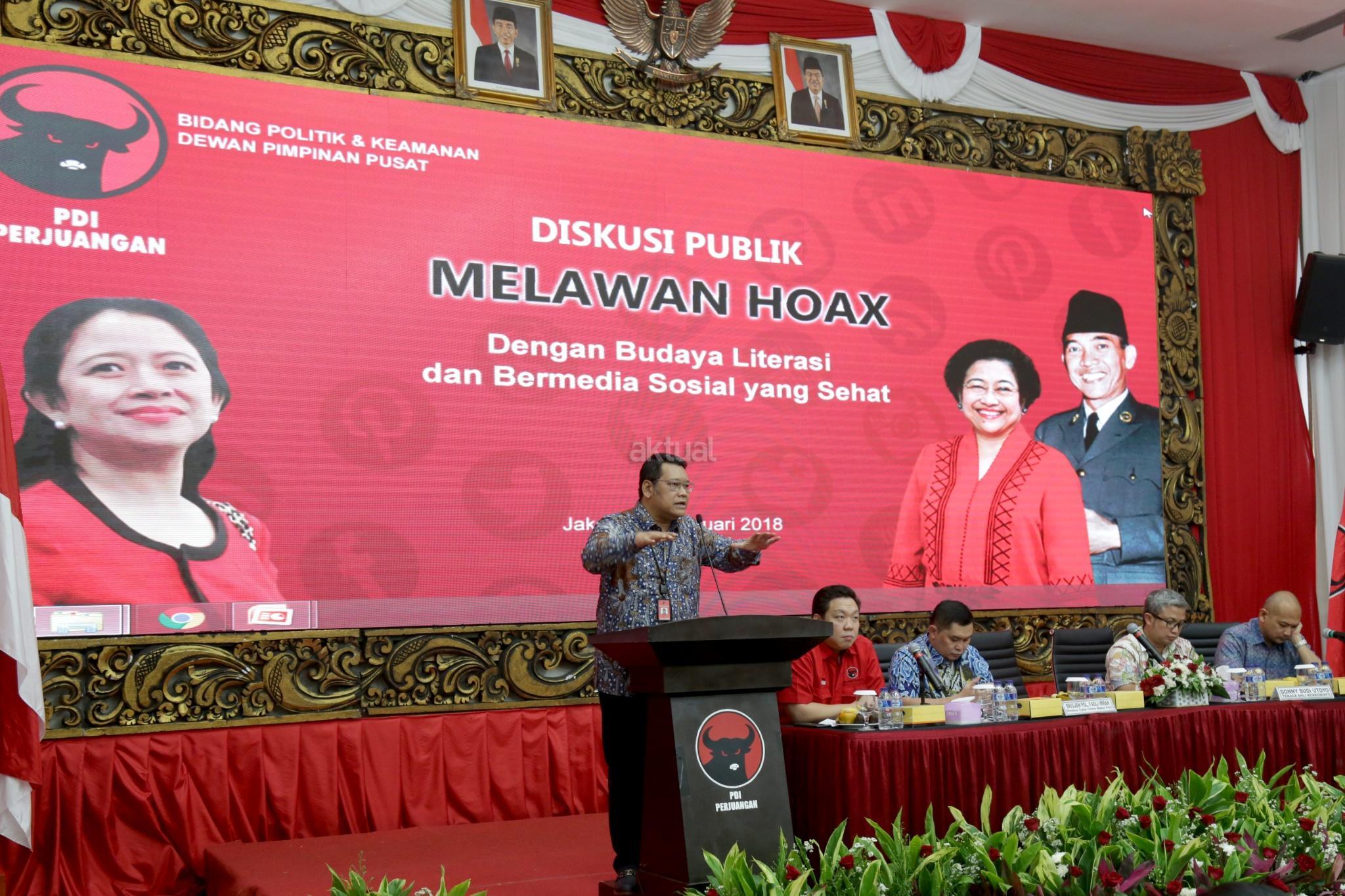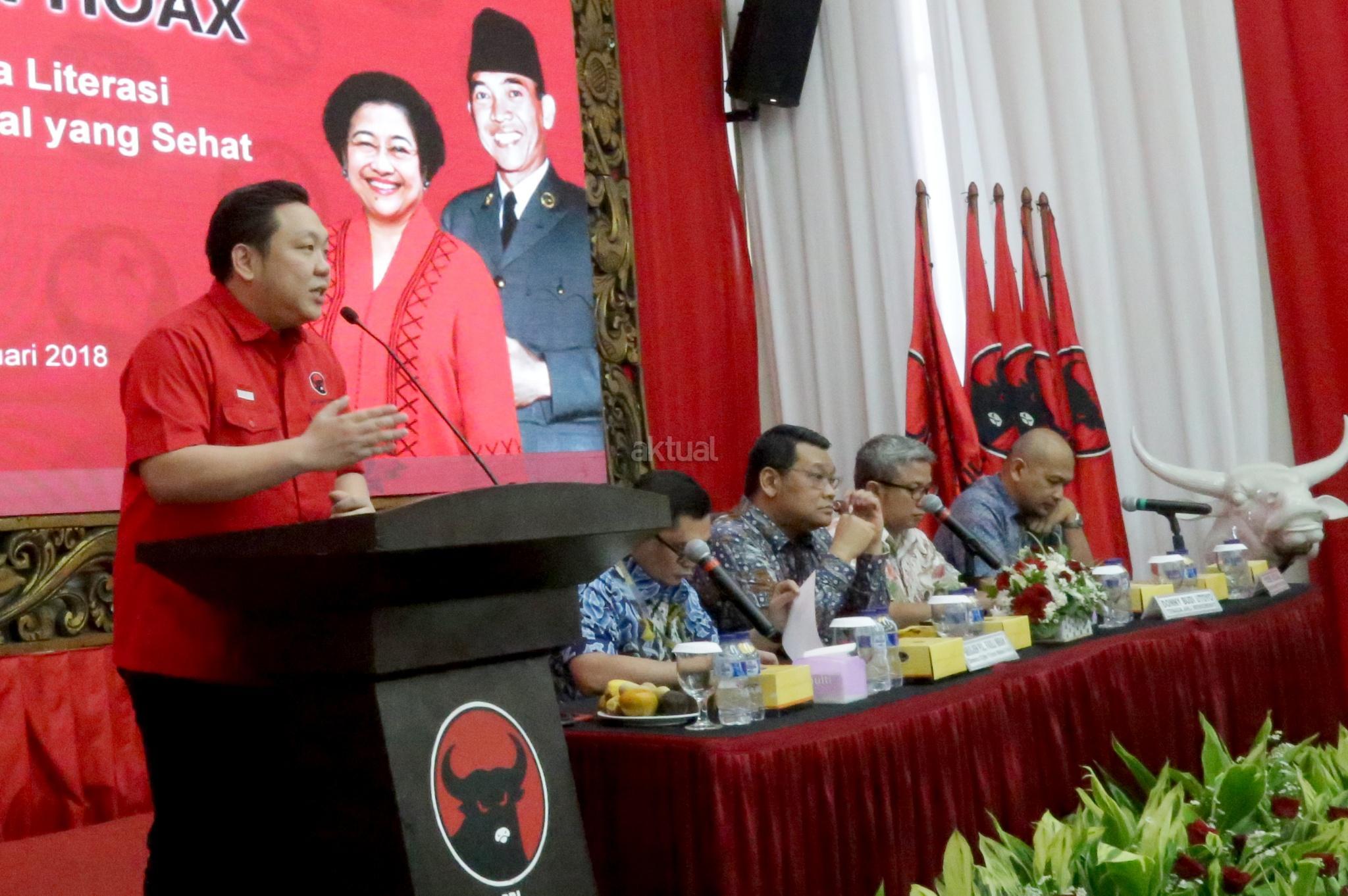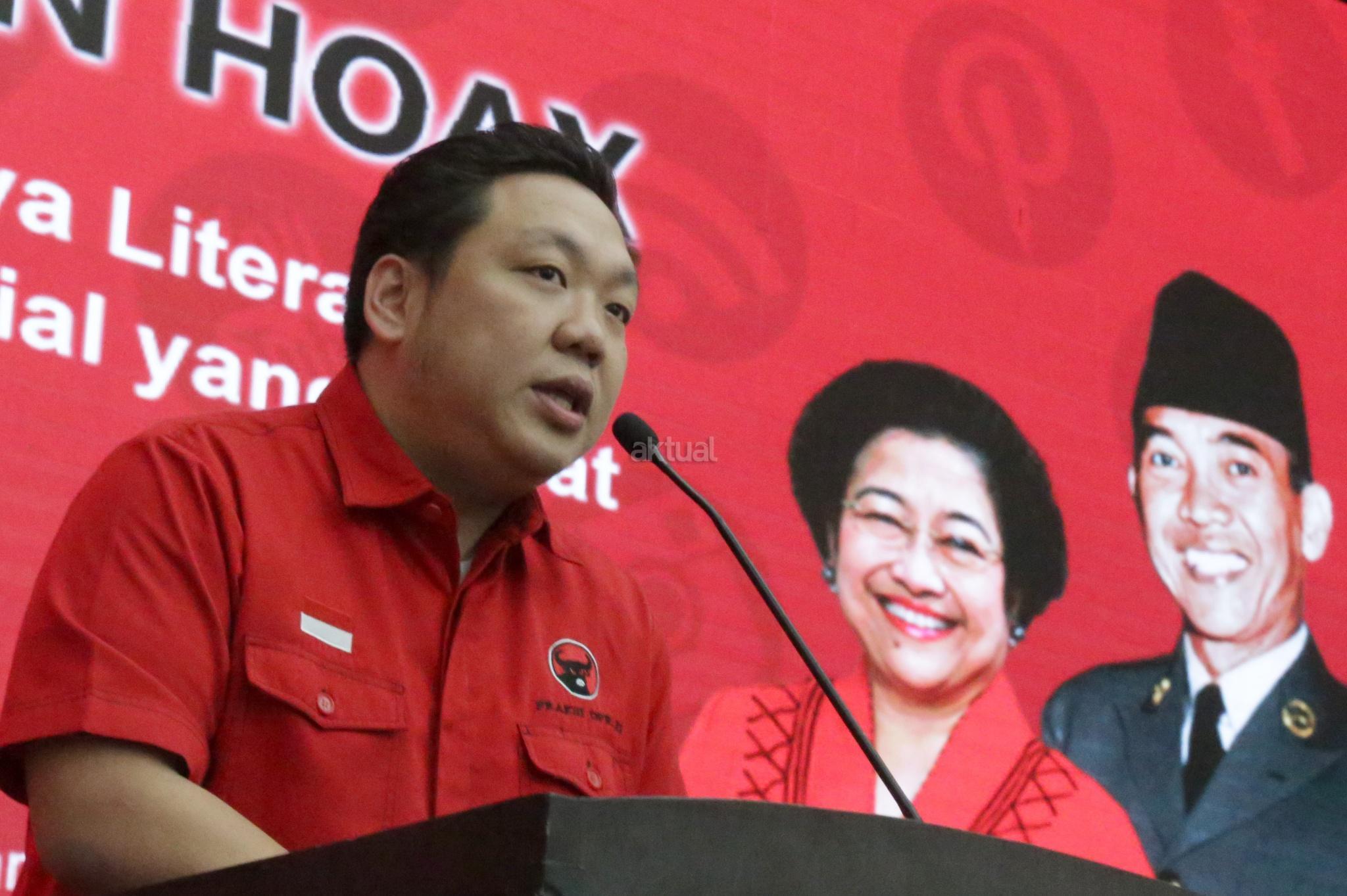 Anggota DPR RI Fraksi PDI Perjuangan Charles Honoris, memberikan sambutan saat acara diskusi publik di kantor DPP PDIP, Jalan Dipenogoro, Jakarta, Jumat (9/2/2018). Diskusi publik yang diselenggarakan PDI Perjuangan Bidang Politik dan Keamanan tersebut mengambil tema "Melawan Hoax Dengan Budaya Literasi Dan Bermedia Sosial Yang Sehat". AKTUAL/Tino Oktaviano