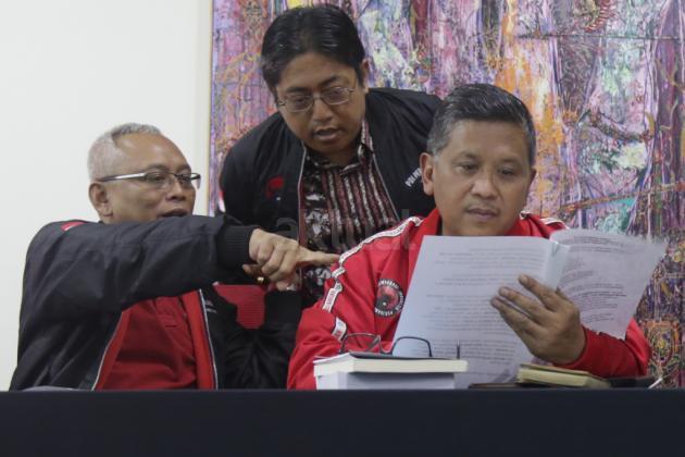 Sekjen Partai Demokrasi Indonesia Perjuangan (PDIP) Hasto Kristiyanto saat akan mengumumkan hasil pemilihan presiden 2019 dan legislatif di kantor DPP PDIP, Jalan Dipenogoro, Jakarta Pusat, Senin (22/4/2019). AKTUAL/Tino Oktaviano