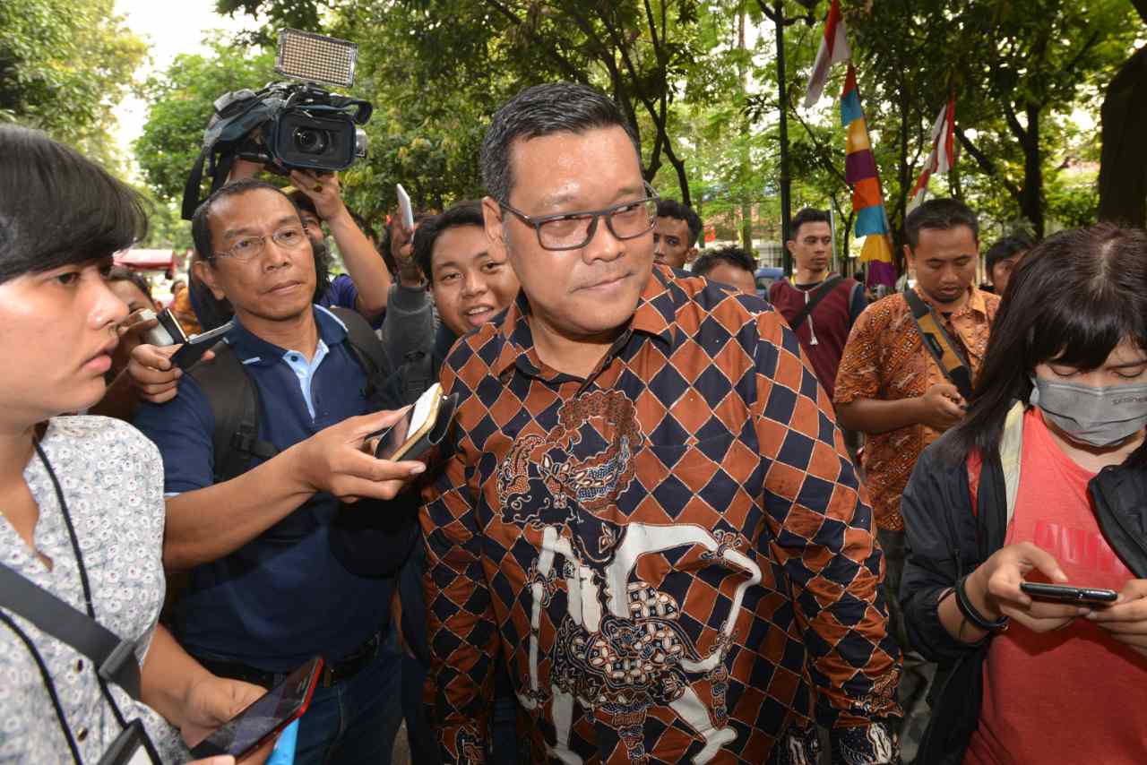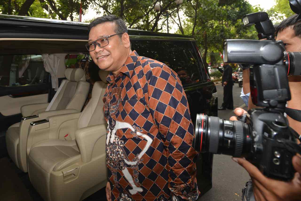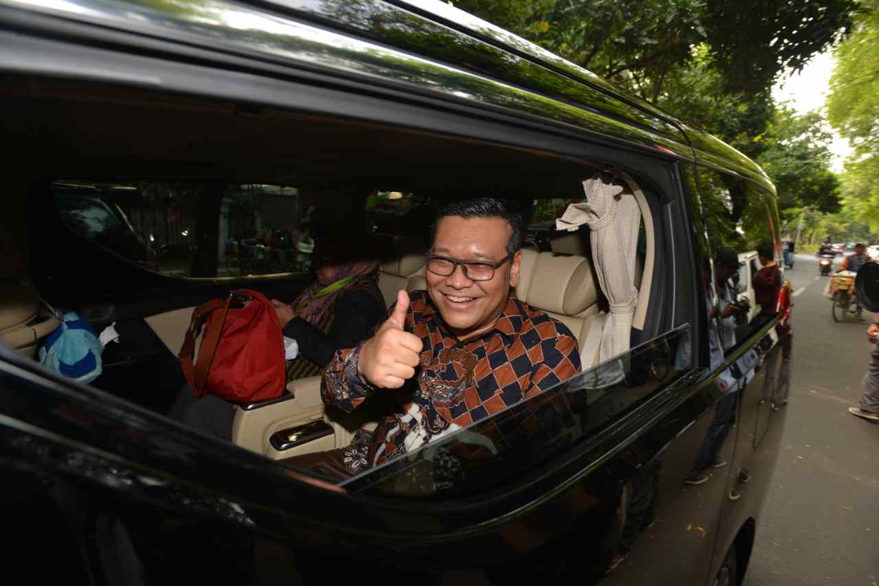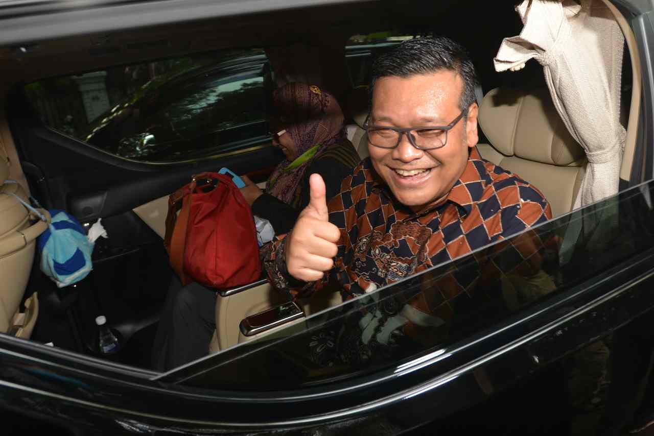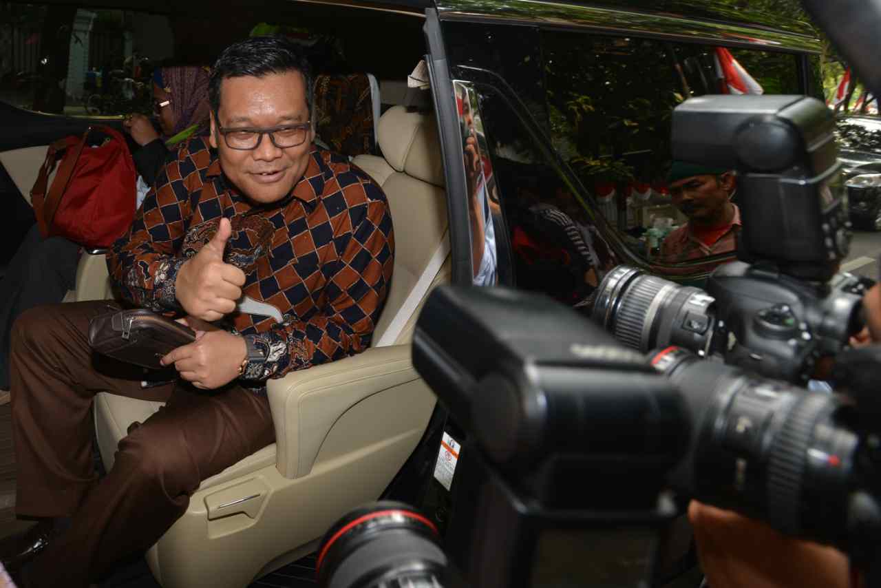 Wasekjen Partai Demokrasi Indonesia Perjuangan (PDIP) Erico Sotarduga mengacungkan jempol saat mendatangi kediaman Ketua Umum PDIP Megawati Soekarnoputri Jalan Teuku Umar, Jakarta Pusat, Jumat (12/8). Sejumlah petinggi PDIP melakukan pertemuan membahas Pemilukada DKI Jakarta. Saat ini PDIP tetap dengan tiga skenario awal salah satunya yakni mencalonkan kembali petahana Basuki Tjahaja Purnama alias Ahok sebagai gubernur. Ketiga skenario tersebut memiliki peluang yang sama, dan hasilnya akan ditentukan oleh Megawati sebagai Ketua Umum PDI-P AKTUAL/TINO OKTAVIANO