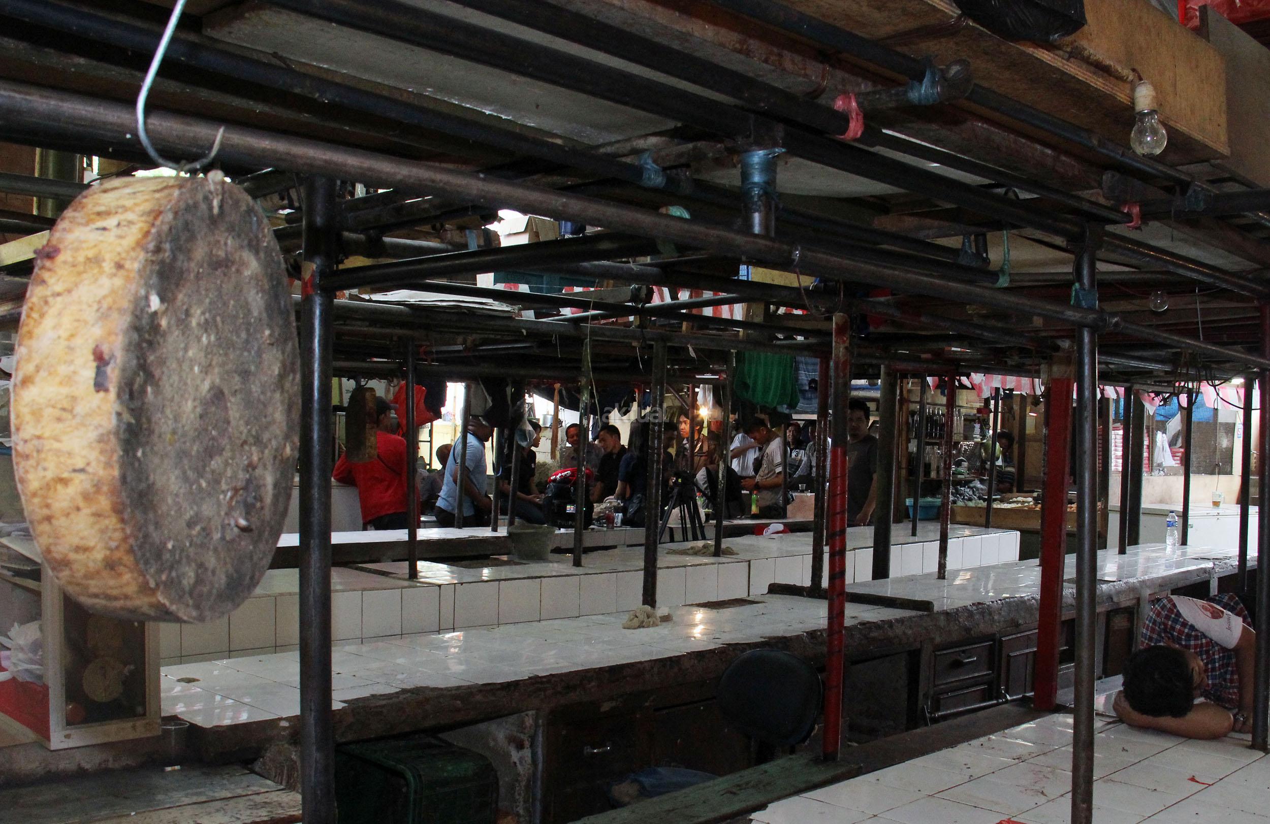 Sejumlah pedagang daging yang berjualan di Pasar Senen melakukan mogok berjualan, terlihat kios -kios pedagang daging tutup di Pasar Senen, Jakarta Pusat, Minggu (9/8/2015). Aksi mogok yang dilakukan ratusan pedagang daging sapi ini akan berlangsung hingga Rabu, 12 Agustus nanti. Mereka kecewa karena harga daging terus naik tak terkendali. Di samping itu, kuota impor sapi juga dibatasi.