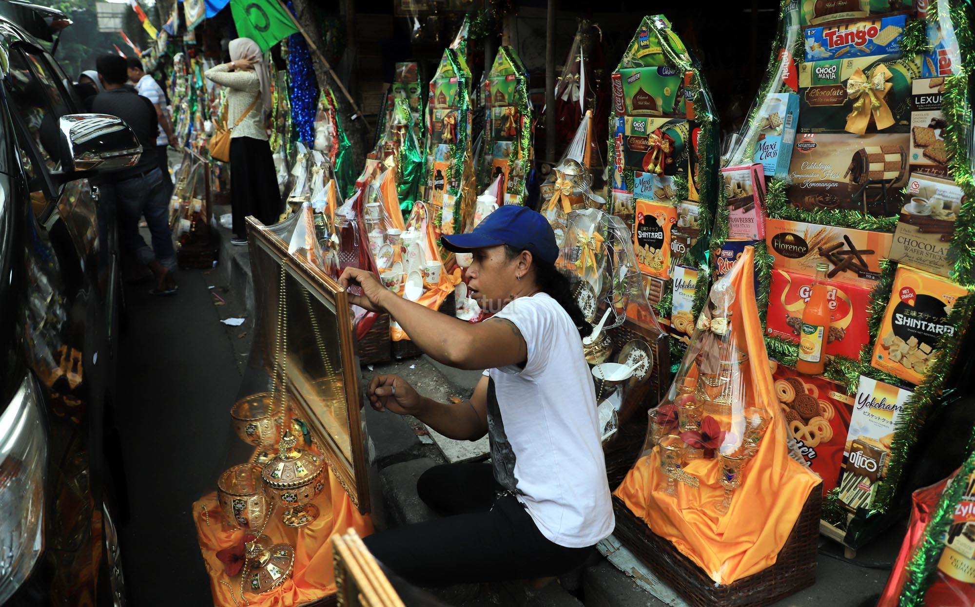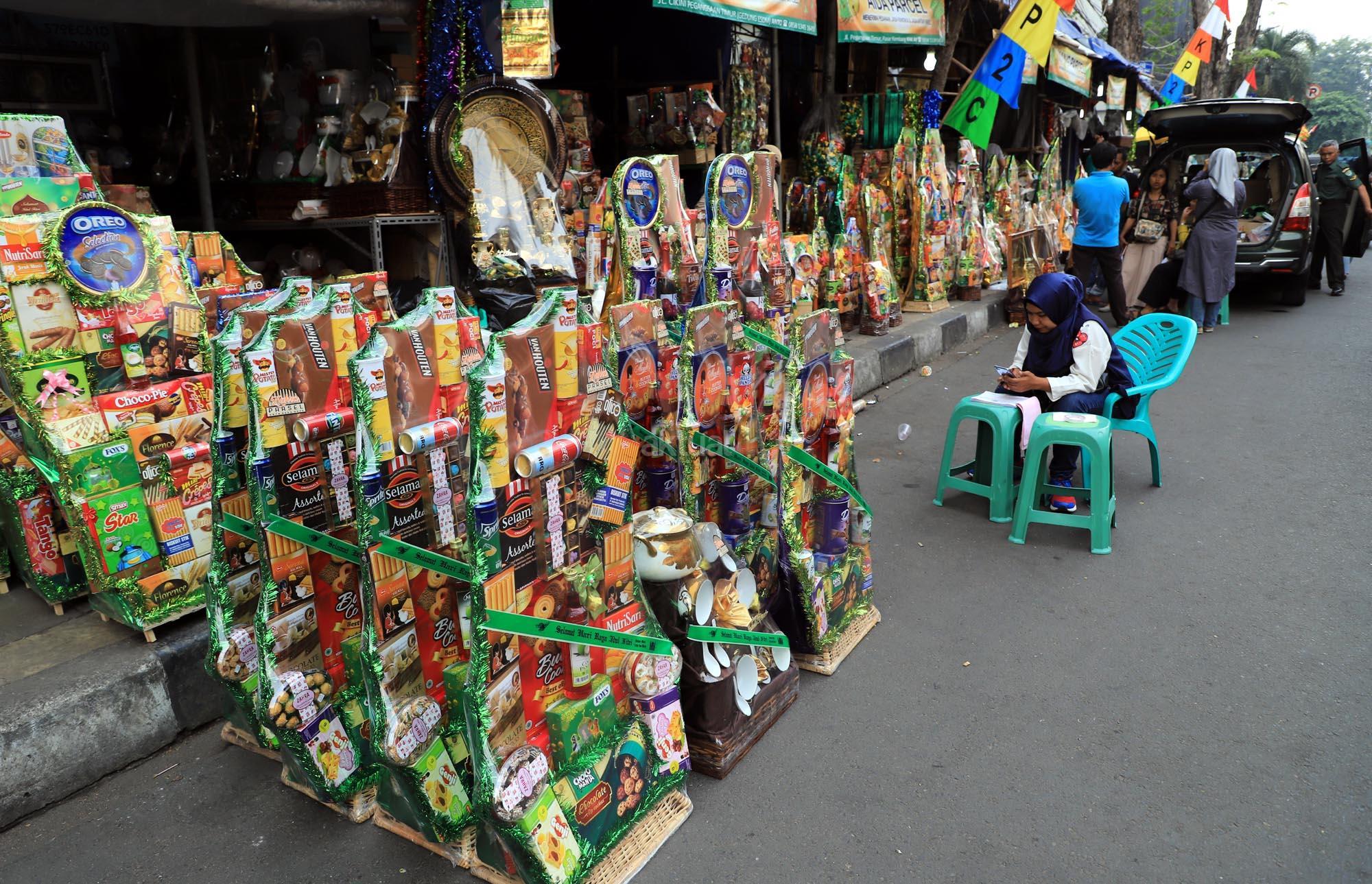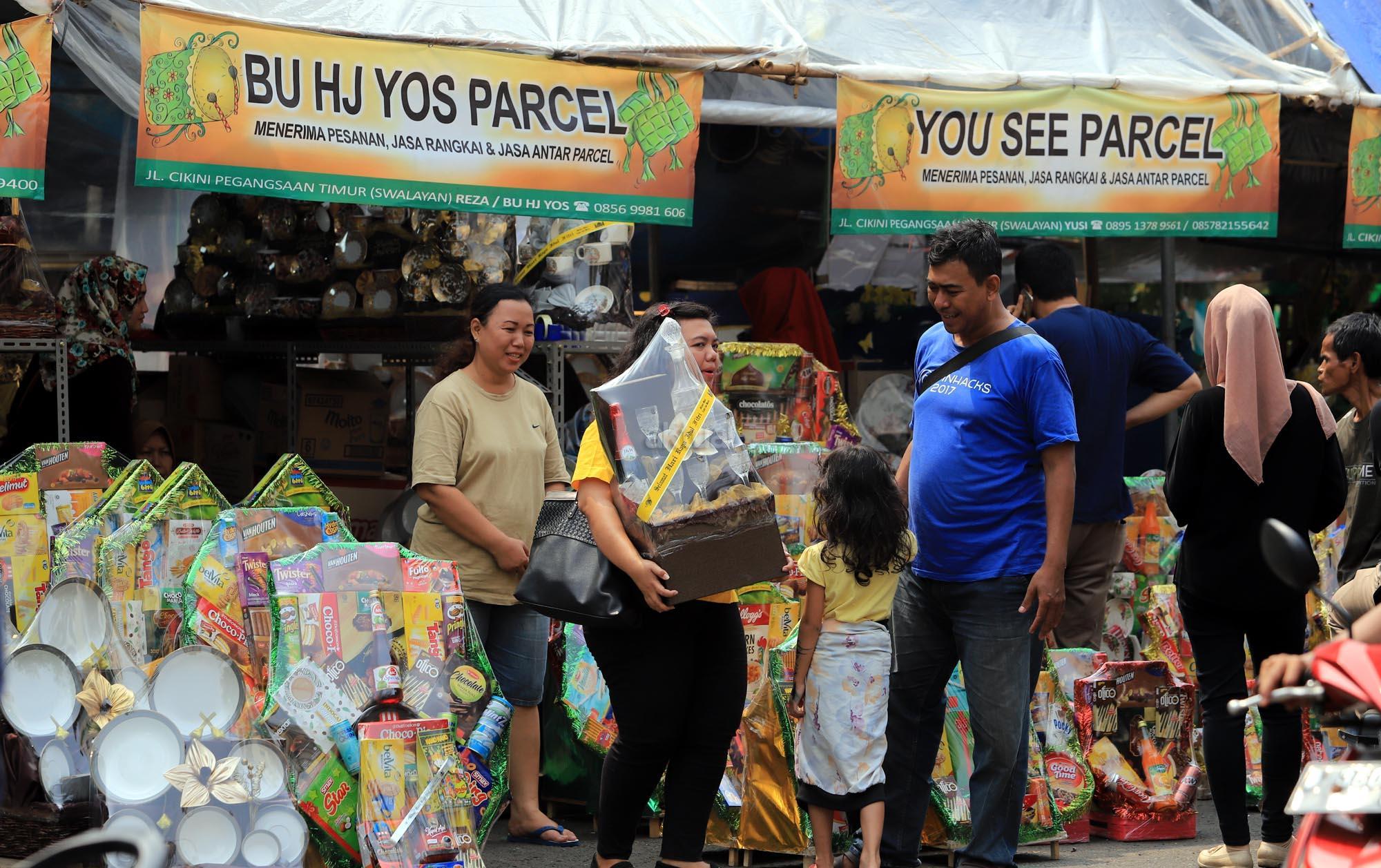 Pedagang parsel Lebaran di kawasan Cikini, Jakarta, Kamis (7/5/2018). Menjelang Hari Raya Idul Fitri, penjualan parsel para pedagang musiman tersebut meningkat hingga 50 persen. AKTUAL/Tino Oktaviano