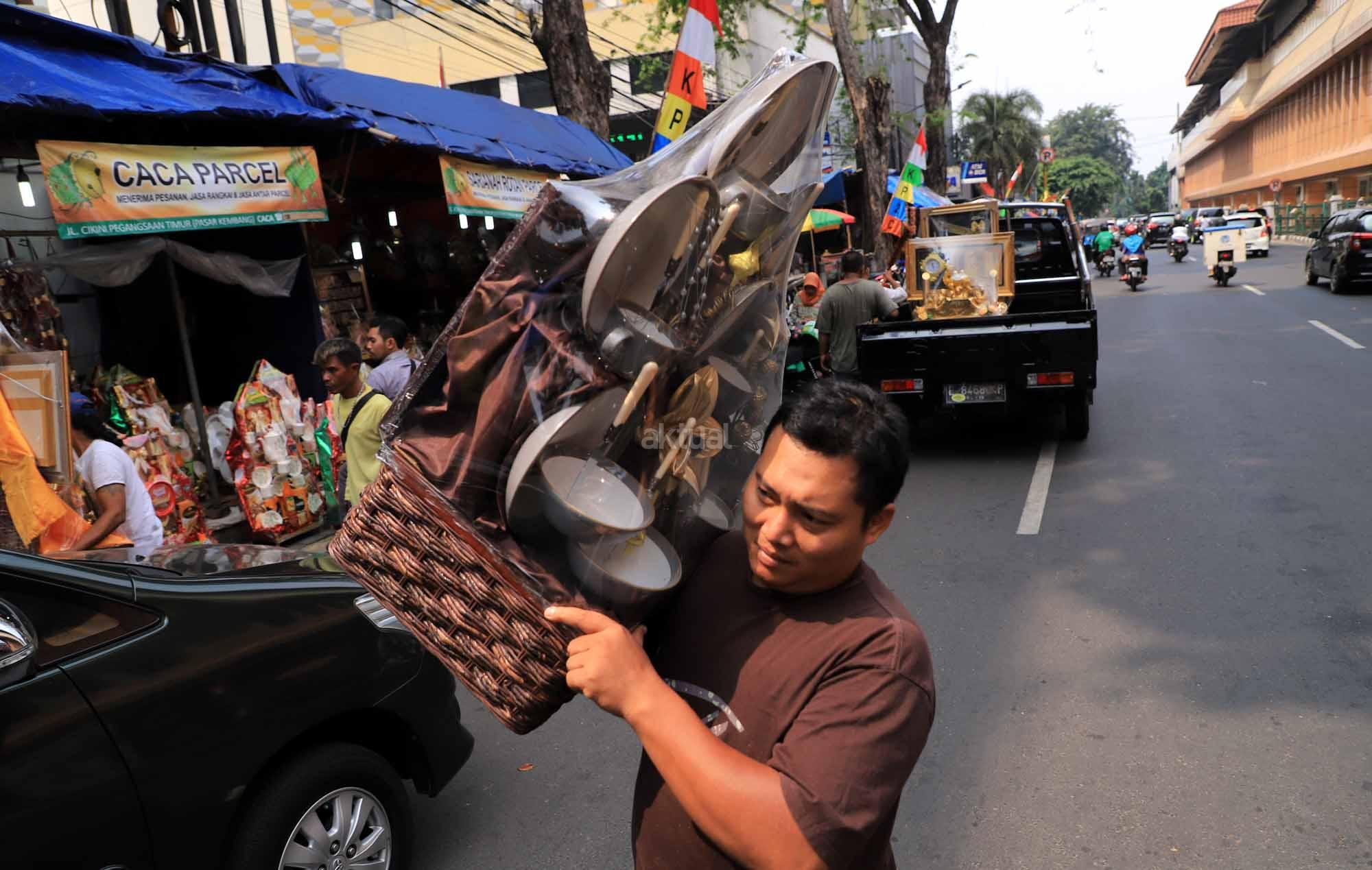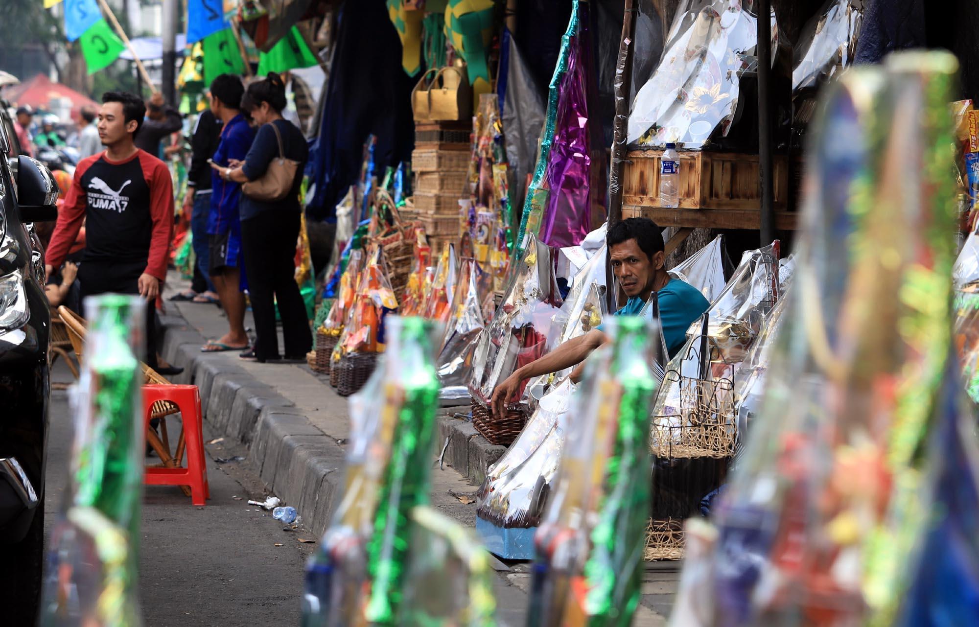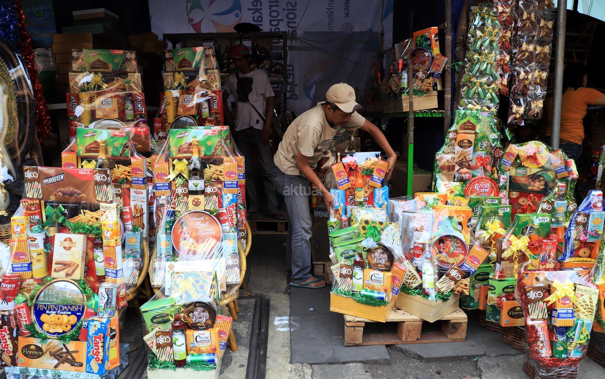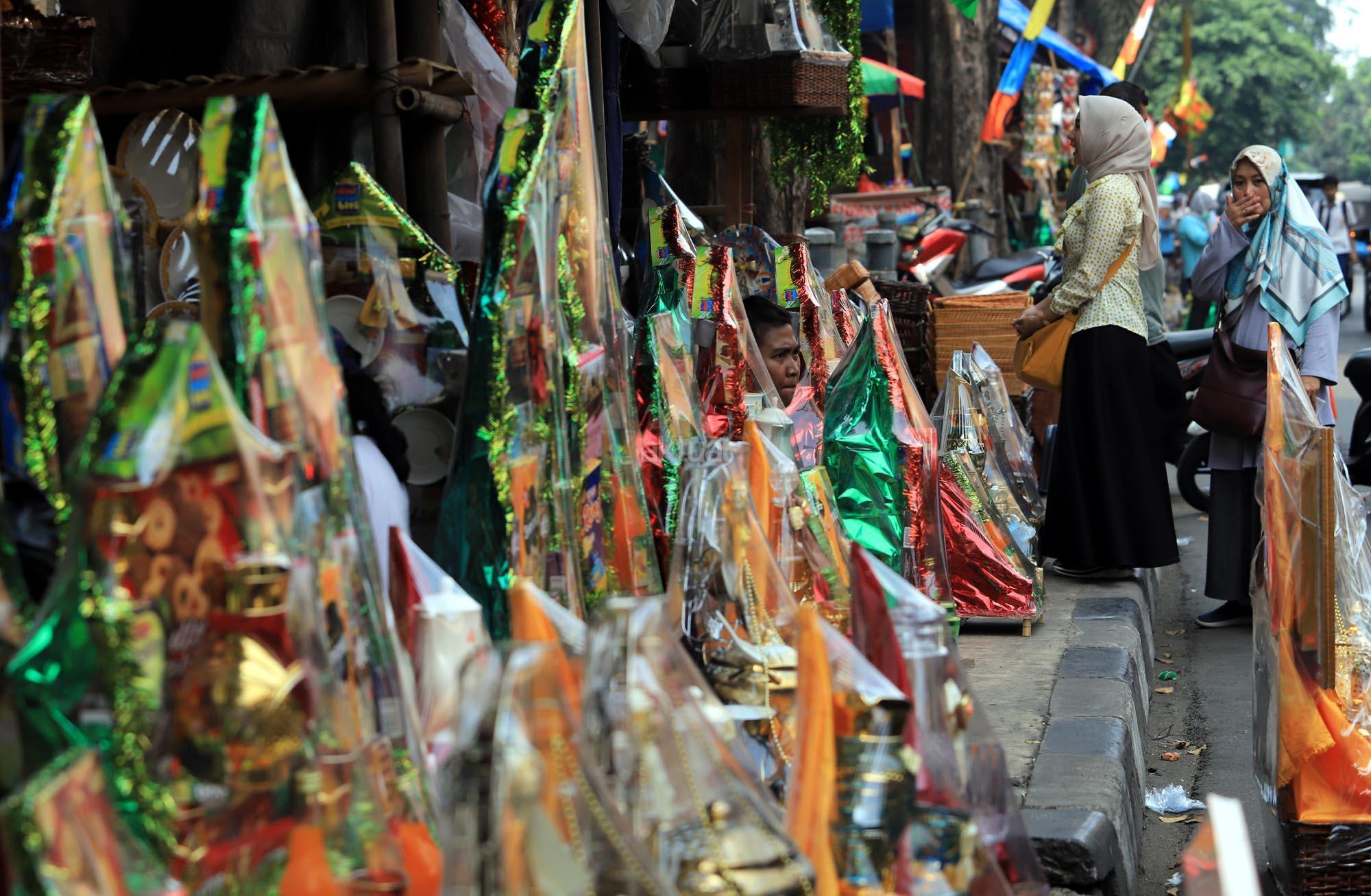 Pedagang parsel Lebaran di kawasan Cikini, Jakarta, Kamis (7/5/2018). Menjelang Hari Raya Idul Fitri, penjualan parsel para pedagang musiman tersebut meningkat hingga 50 persen. AKTUAL/Tino Oktaviano