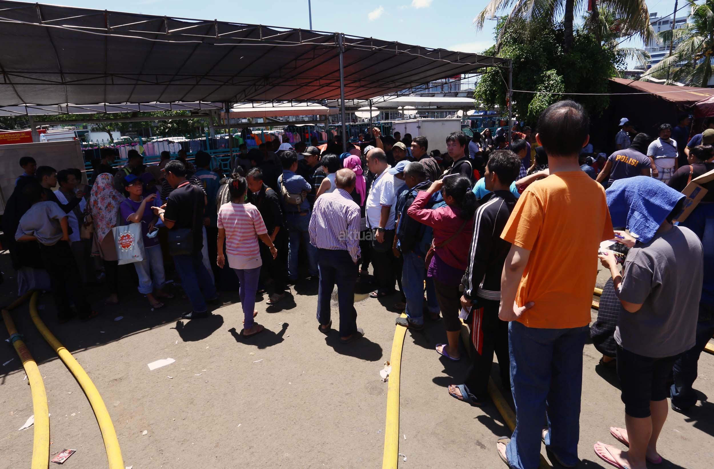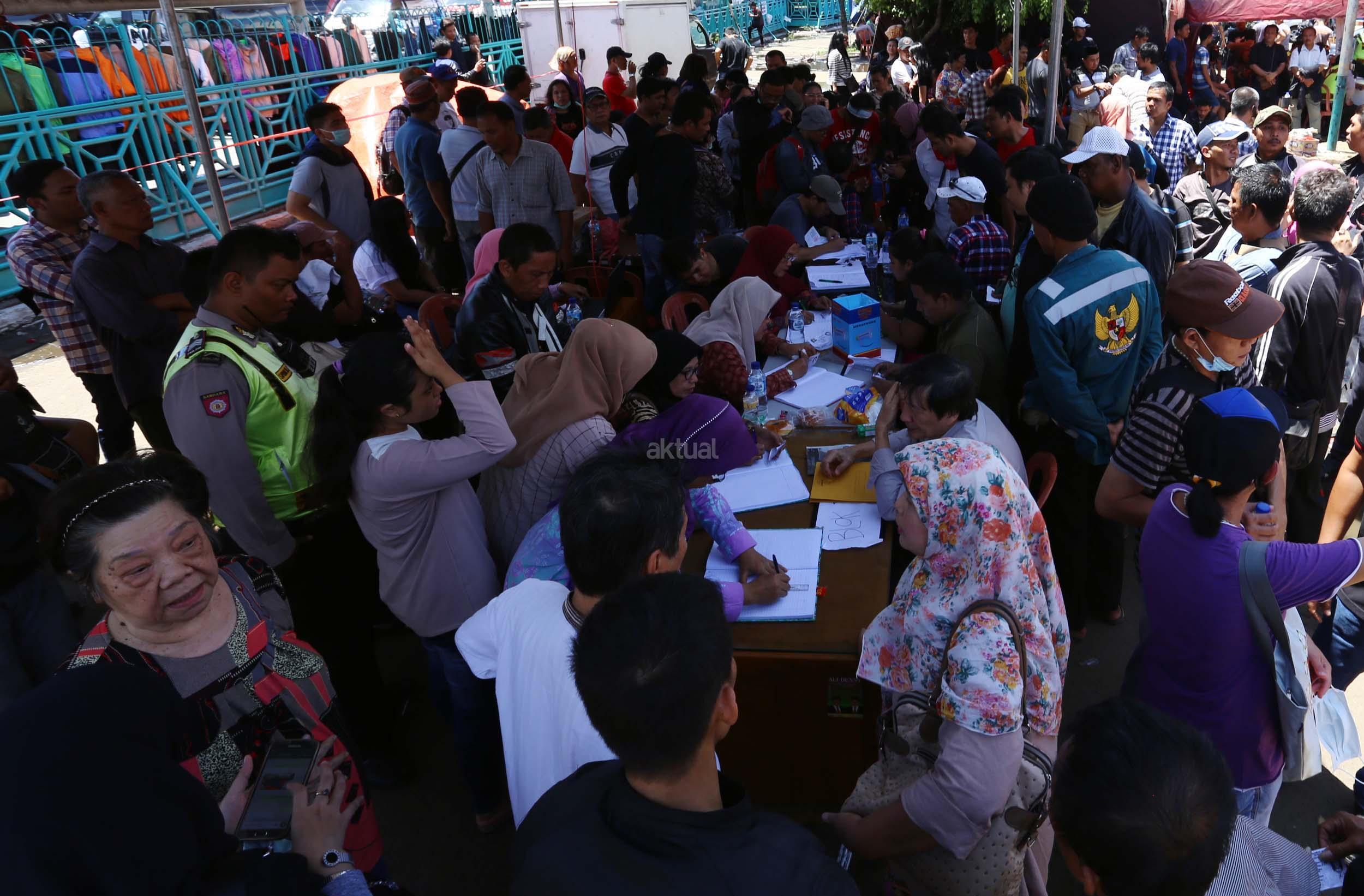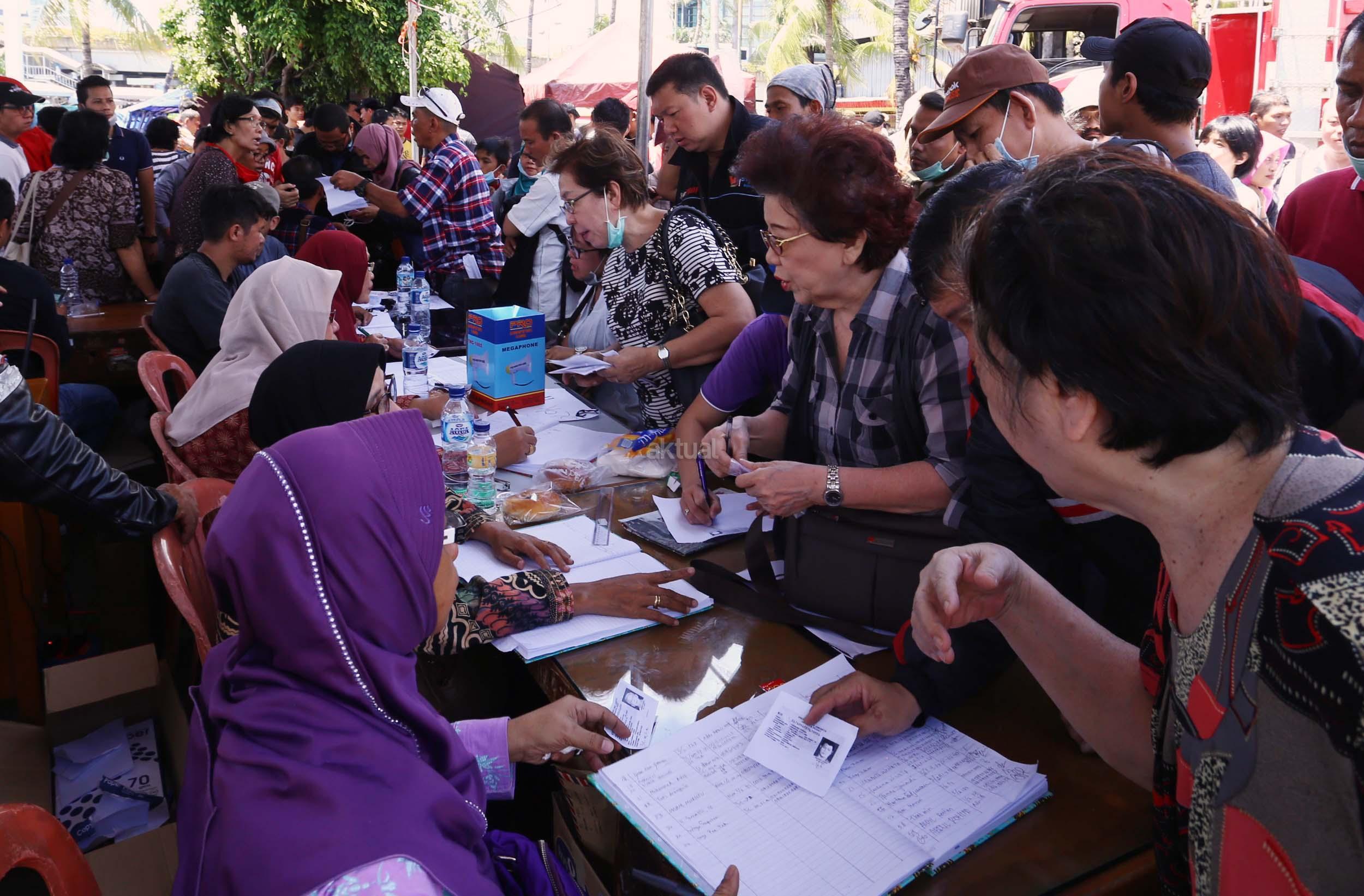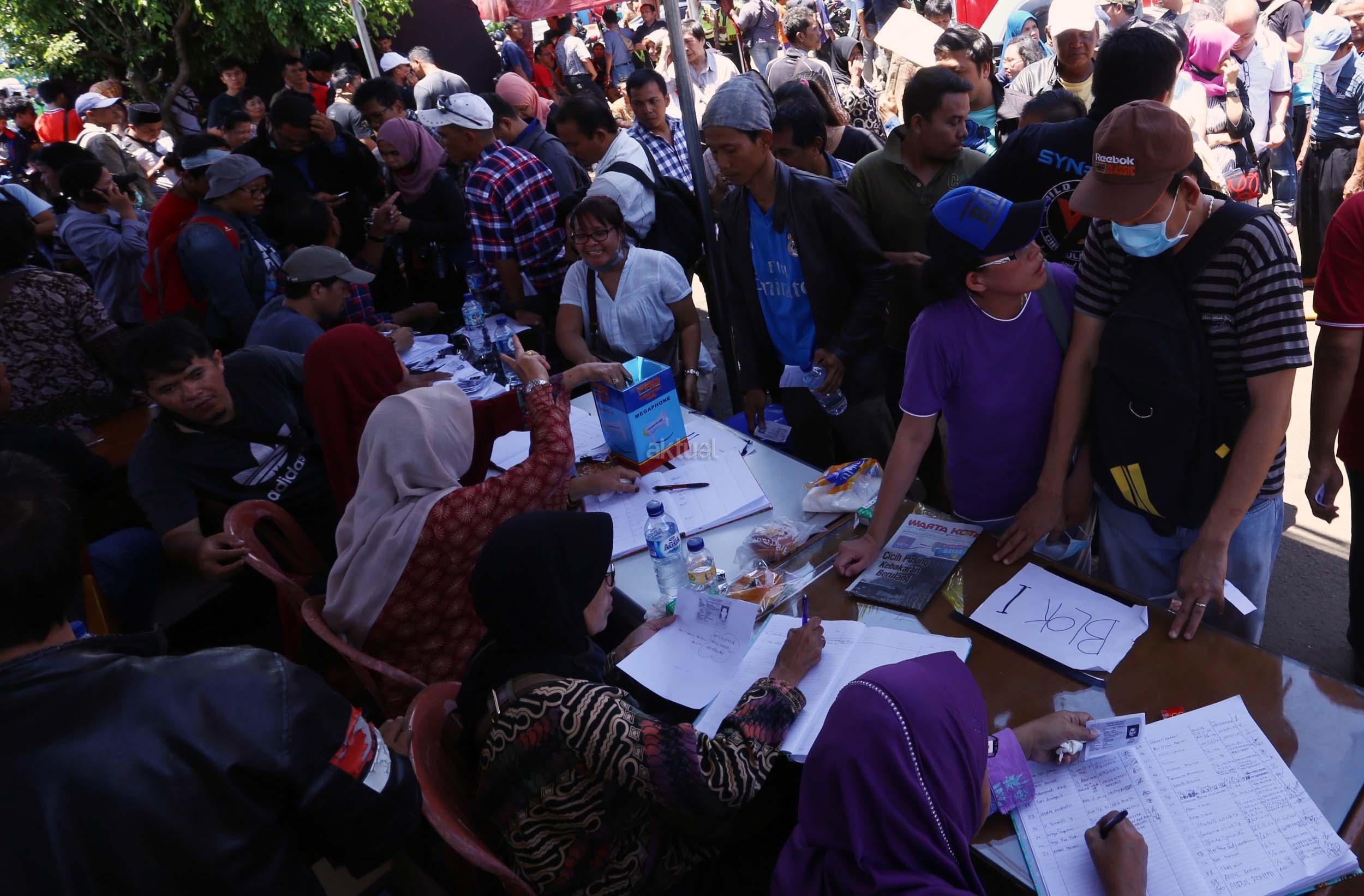 Ratusan pedagang pasar Senen mengantri untuk mendaftar relokasi kiosnya yang hangus terbakar , Jakarta, Jumat (20/1/2017). PT Pembangunan Jaya, pengelola blok 1 dan 2 Pasar Senen, akan merelokasi pedagang korban kebakaran. Hari ini para pedagang mulai antre daftar relokasi dan para pedagang menyerahkan berkas pendaftaran berupa foto kopi atau salinan KTP, nomor telepon, dan nomor kios. AKTUAL/Munzir