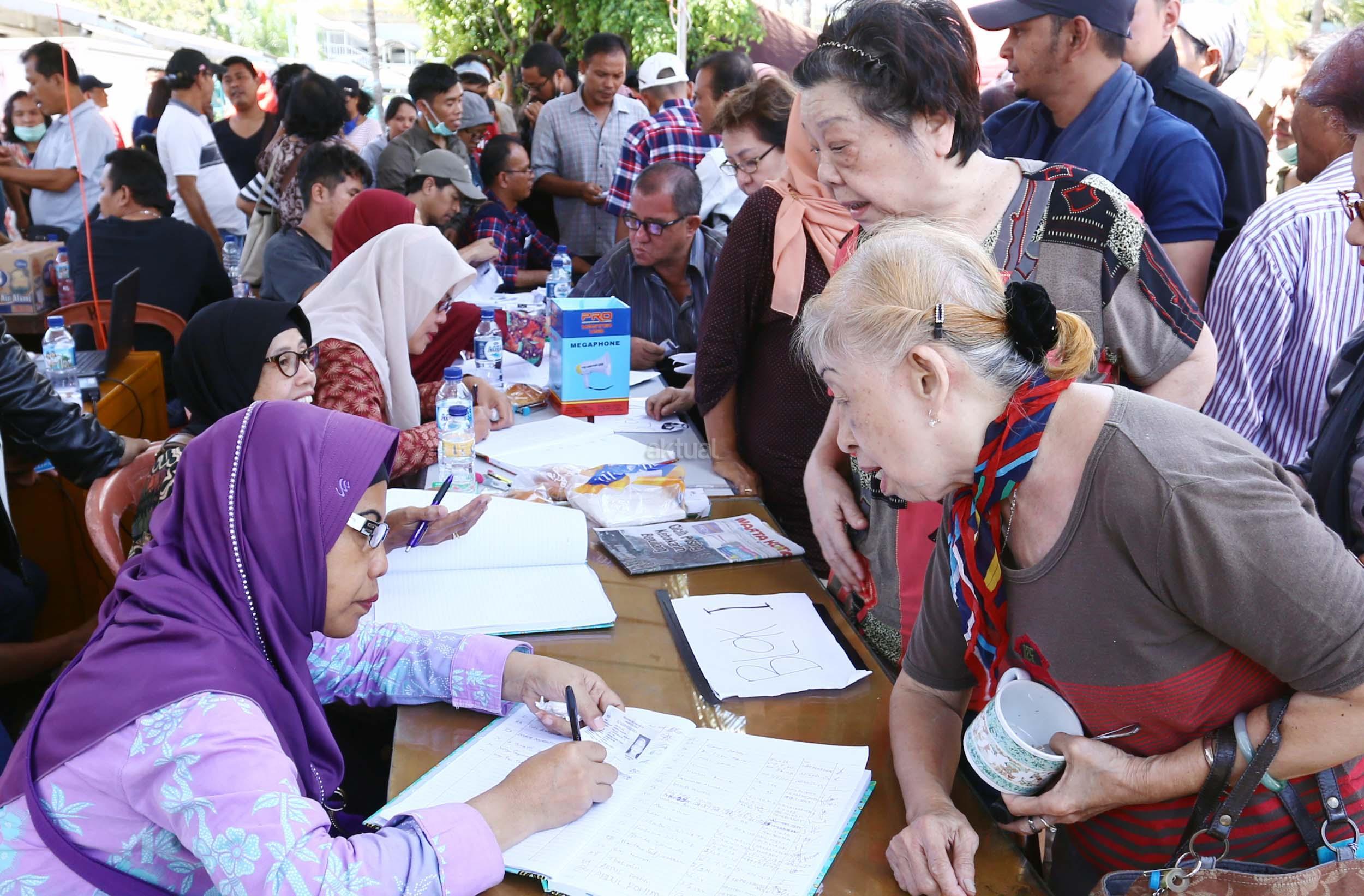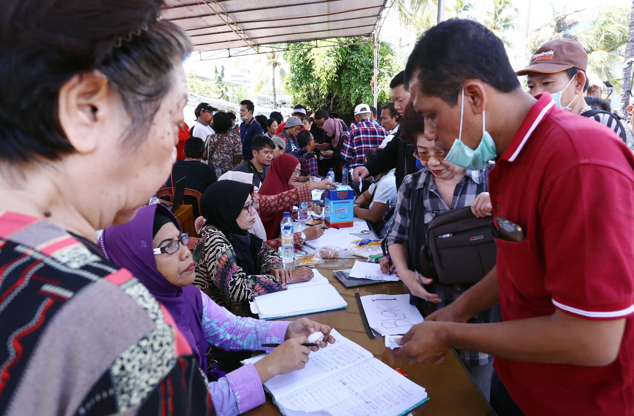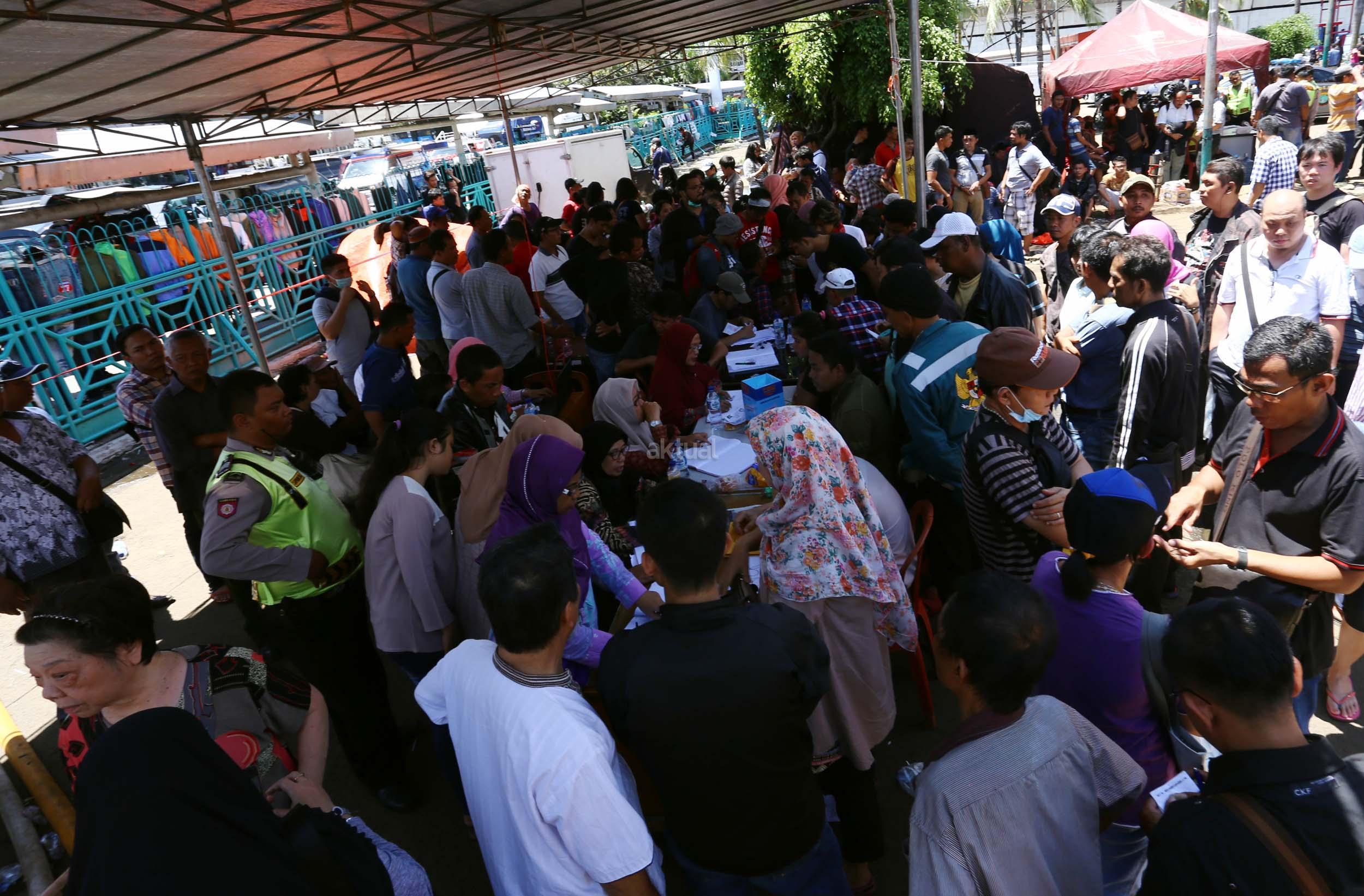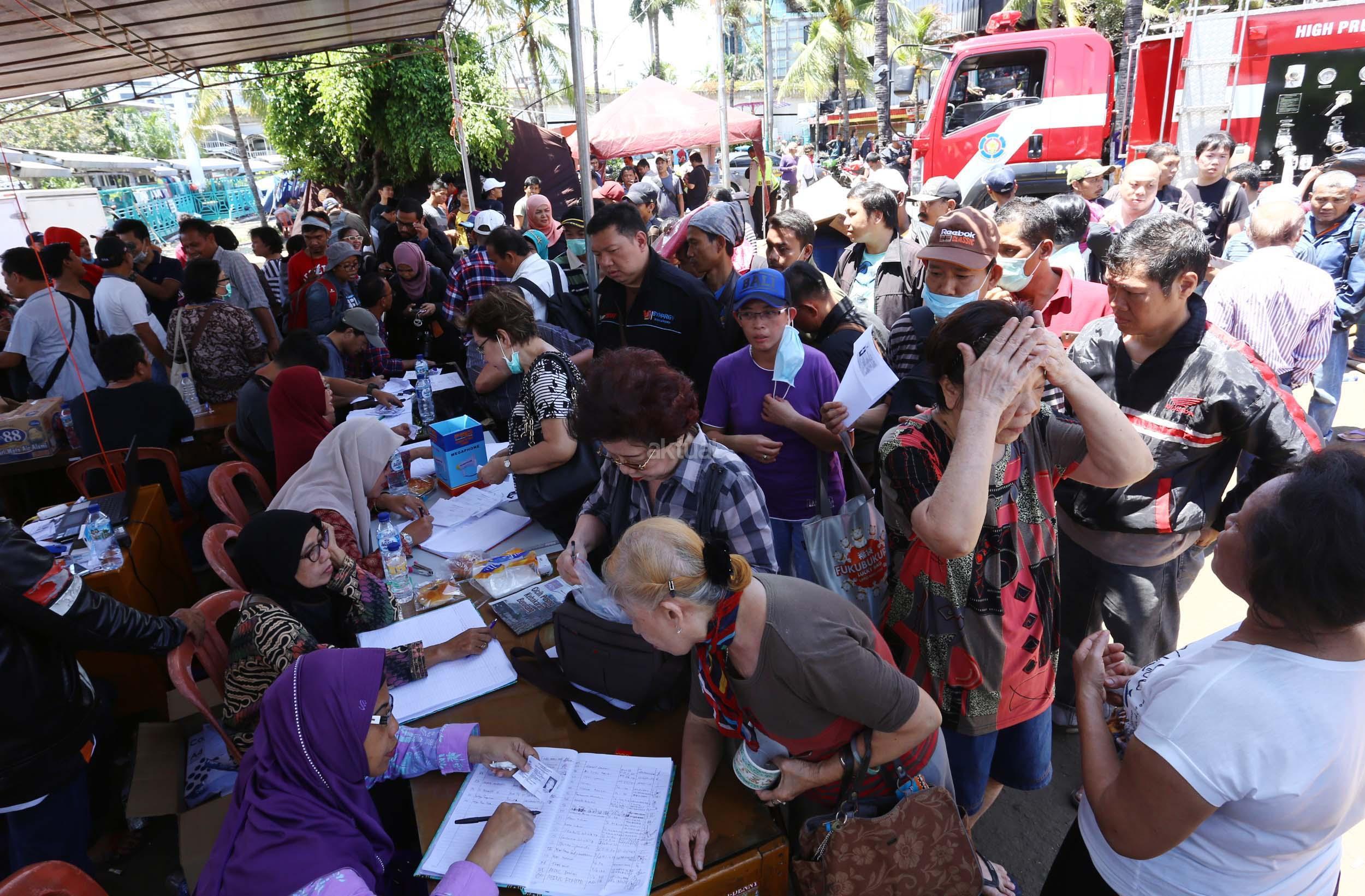 Ratusan pedagang pasar Senen mengantri untuk mendaftar relokasi kiosnya yang hangus terbakar , Jakarta, Jumat (20/1/2017). PT Pembangunan Jaya, pengelola blok 1 dan 2 Pasar Senen, akan merelokasi pedagang korban kebakaran. Hari ini para pedagang mulai antre daftar relokasi dan para pedagang menyerahkan berkas pendaftaran berupa foto kopi atau salinan KTP, nomor telepon, dan nomor kios. AKTUAL/Munzir