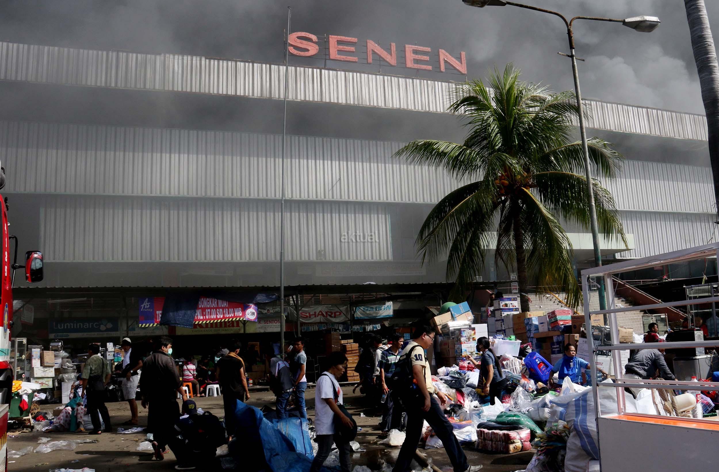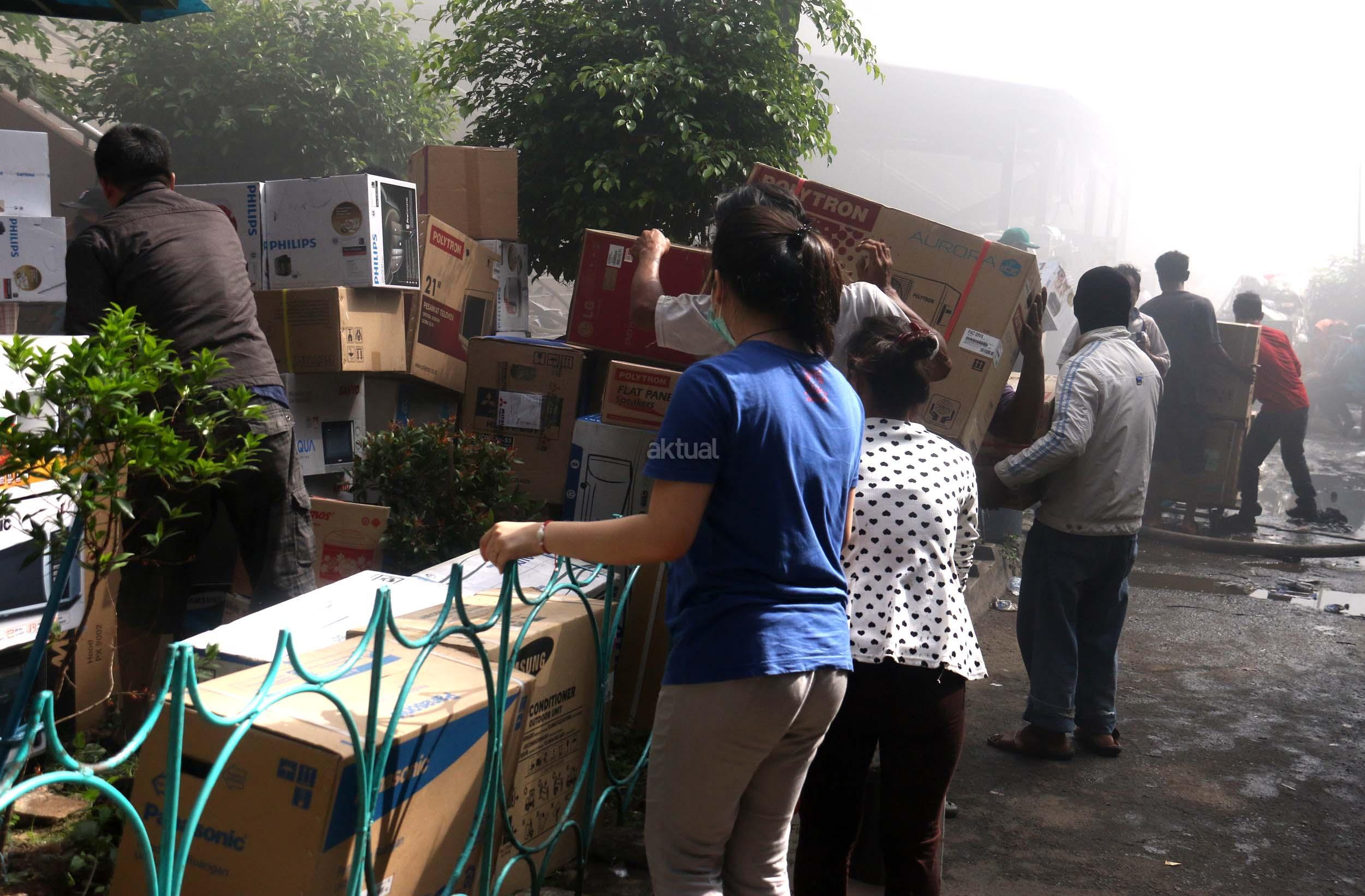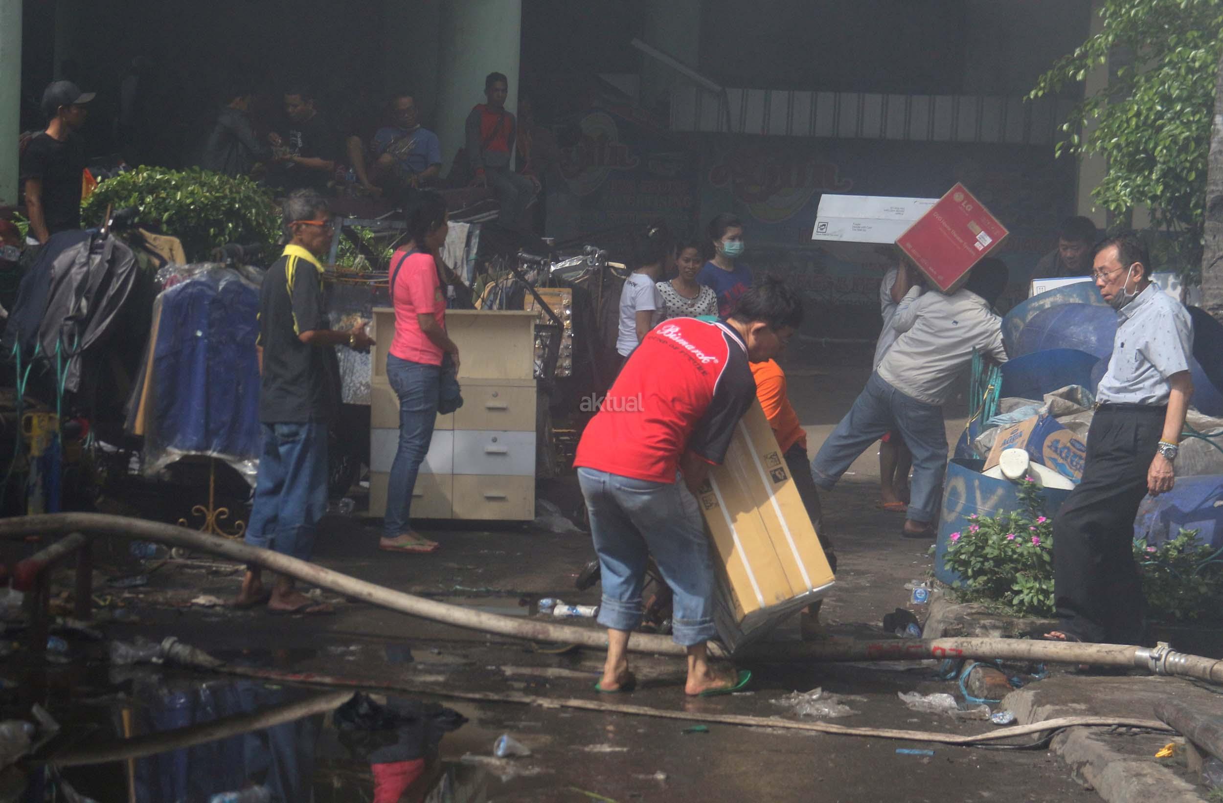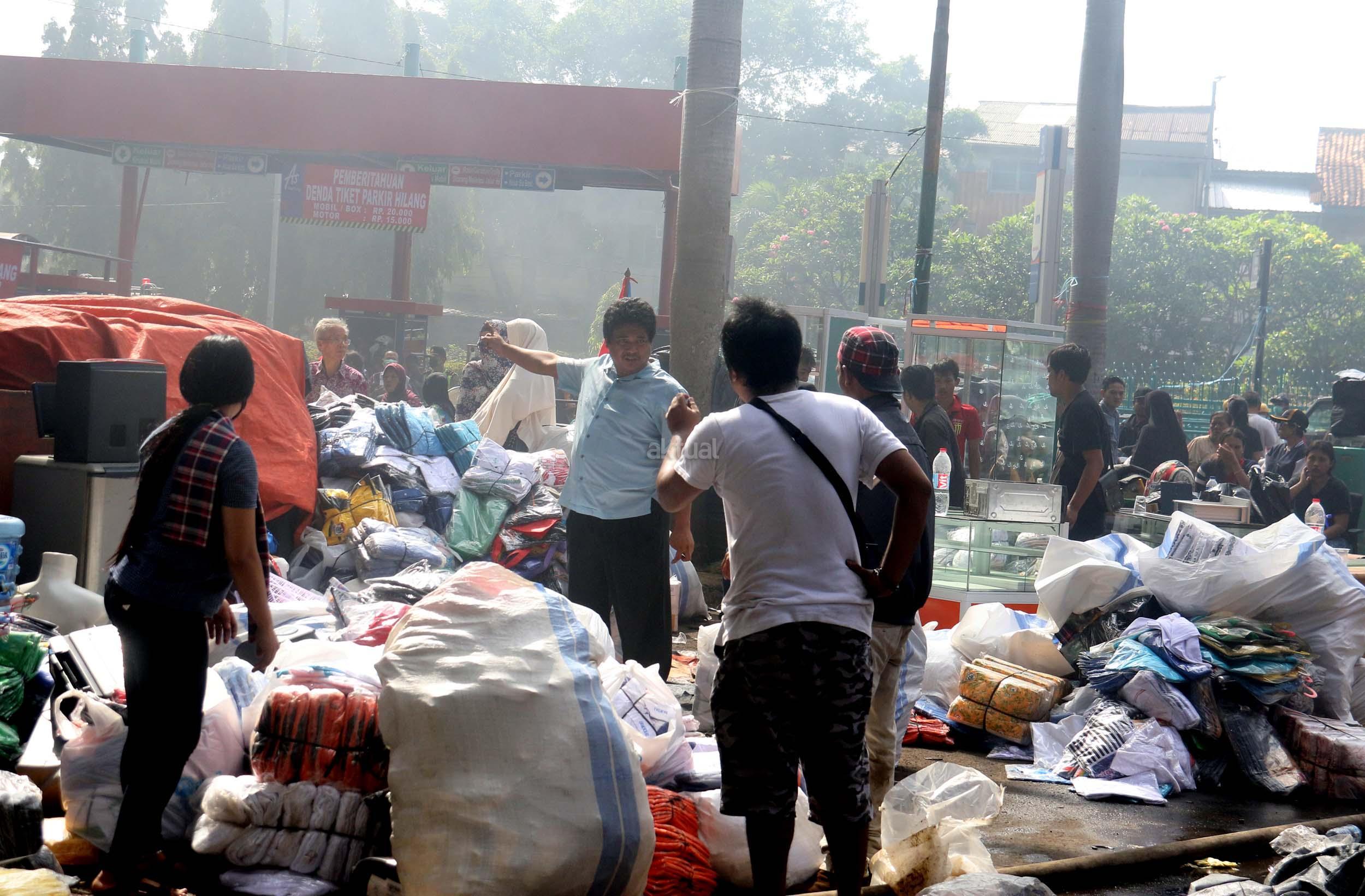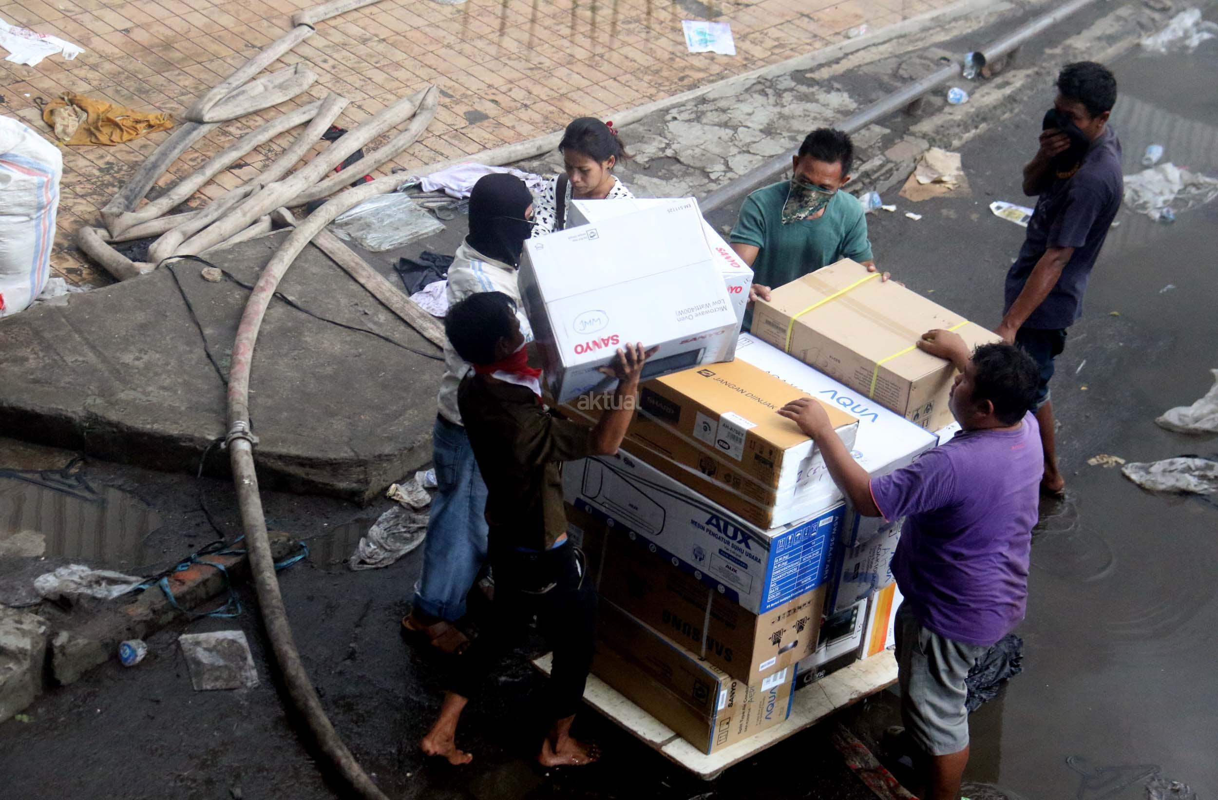 Pedagang menyelamatkan barang-barangnya dari lokasi Blok I dan Blok II Pasar Senen yang terbakar di Jakarta, Kamis (19/1/2017). Kebakaran yang melanda Pasar Senen membuat sejumlah pedagang panik dan menyelamatkan barang dagangannya, Kebakaran di Pasar Senen tersebut dilaporkan terjadi sekitar pukul 04.43 WIB dan masih dalam penanganan petugas yang mengerahkan sedikitnya 50 unit mobil pemadam kebakaran. AKTUAL/Munzir