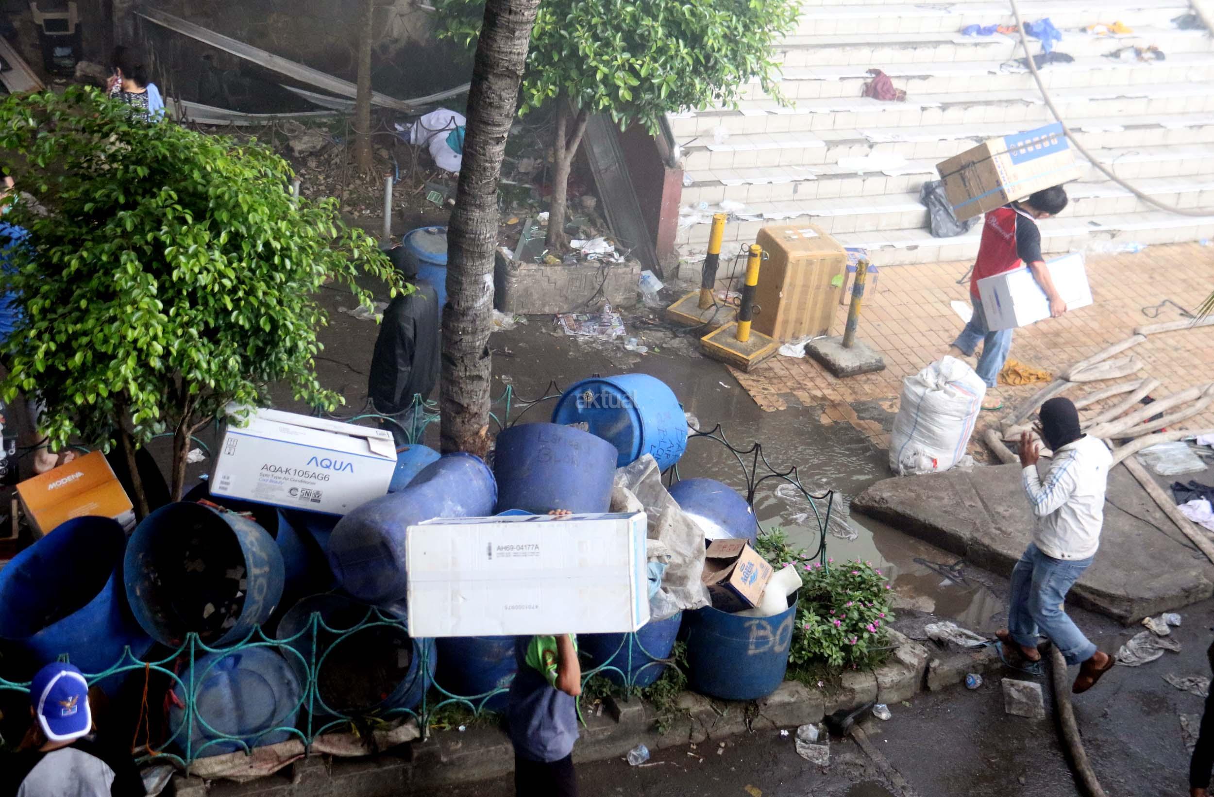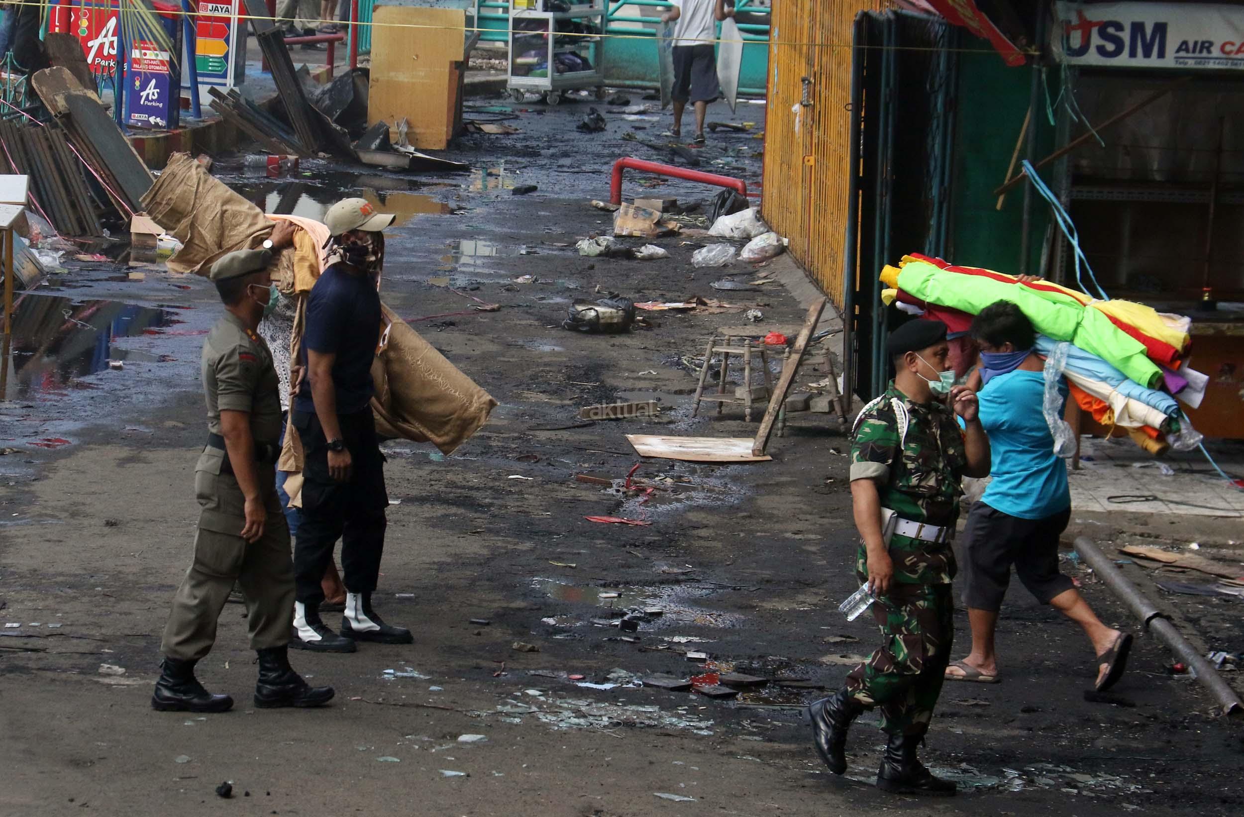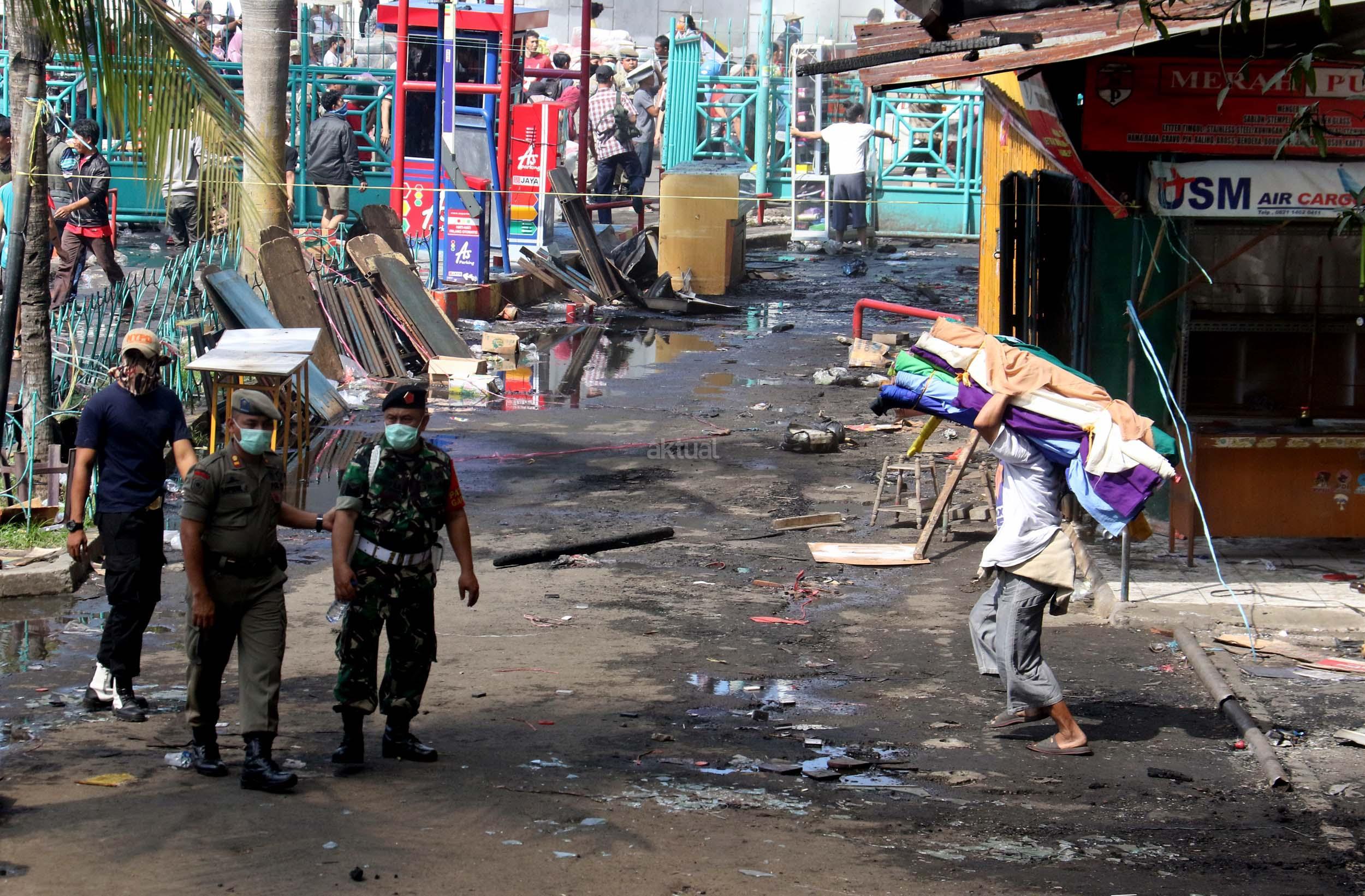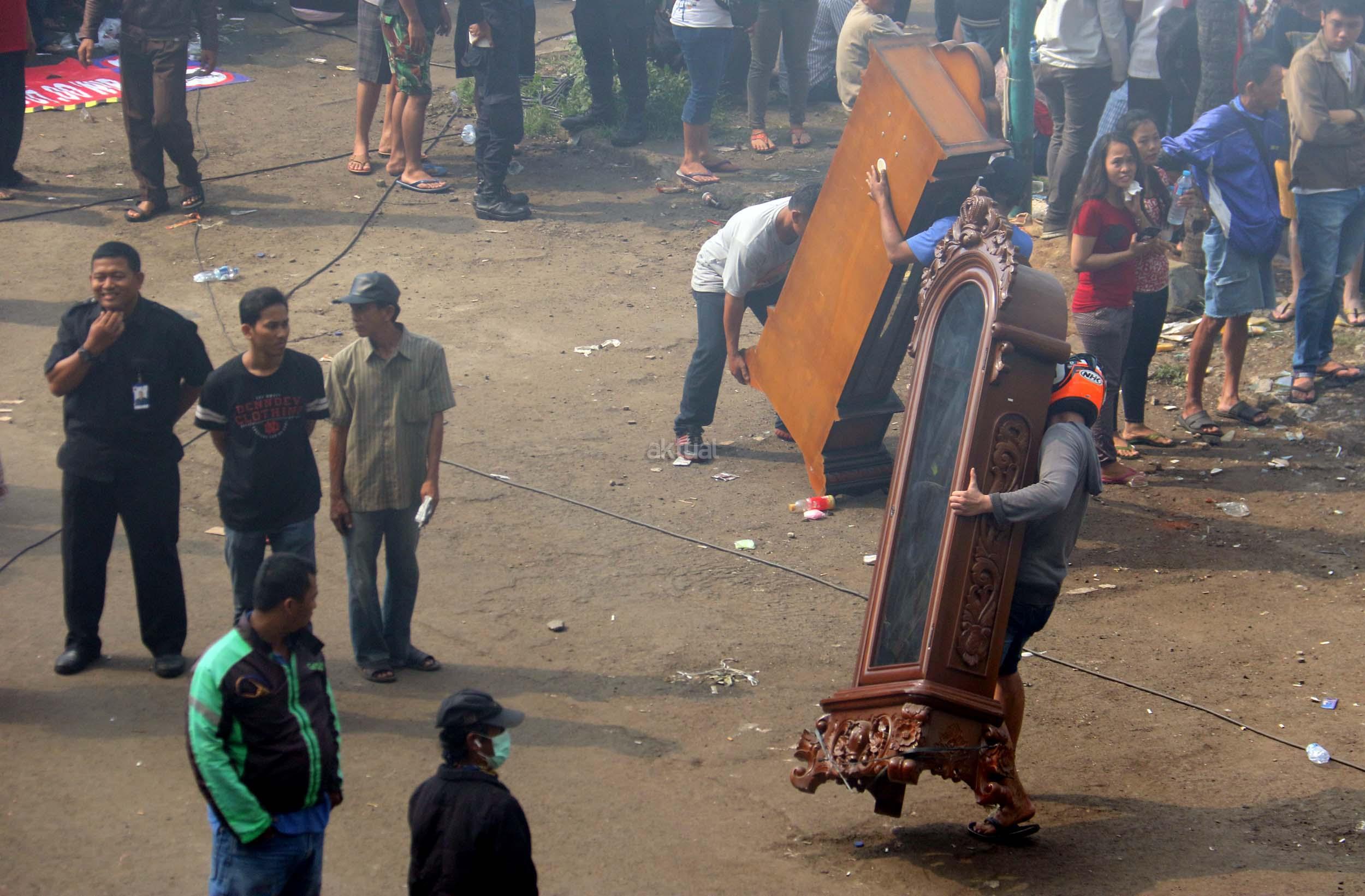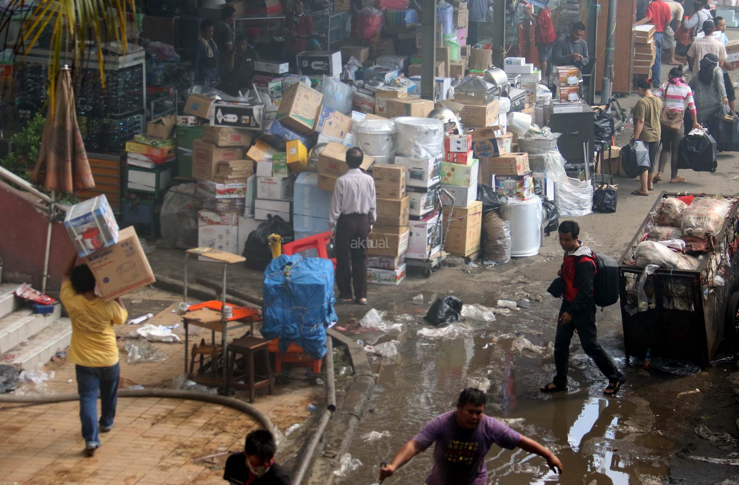 Pedagang menyelamatkan barang-barangnya dari lokasi Blok I dan Blok II Pasar Senen yang terbakar di Jakarta, Kamis (19/1/2017). Kebakaran yang melanda Pasar Senen membuat sejumlah pedagang panik dan menyelamatkan barang dagangannya, Kebakaran di Pasar Senen tersebut dilaporkan terjadi sekitar pukul 04.43 WIB dan masih dalam penanganan petugas yang mengerahkan sedikitnya 50 unit mobil pemadam kebakaran. AKTUAL/Munzir