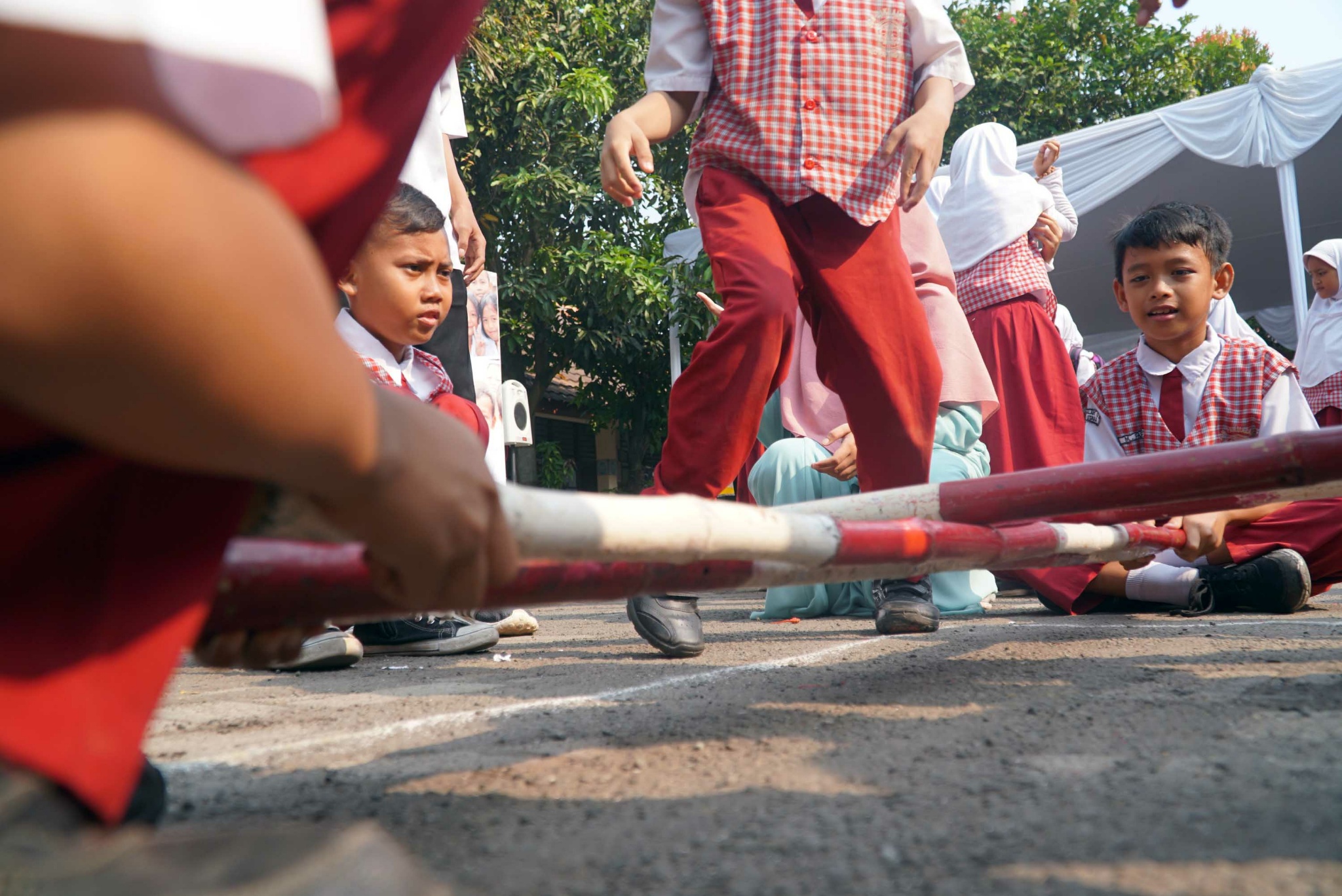 Anak-anak bermain permainan tradisional saat peluncuran rogram donasi pelanggan bertajuk “Senyum Indonesia”, berfokus pada pemberian bantuan untuk sekolah Pendidikan Anak Usia Dini (PAUD), dan Giant meresmikan program donasi pelanggannya dengan nama “Gerakan Inspirasi Anak Teladan Indonesia (GIAT Indonesia)”, dimana pemberian bantuannya untuk mendukung kemajuan pendidikan Sekolah Dasar (SD). AKTUAL/Eko S Hilman