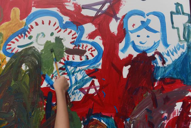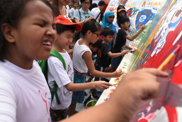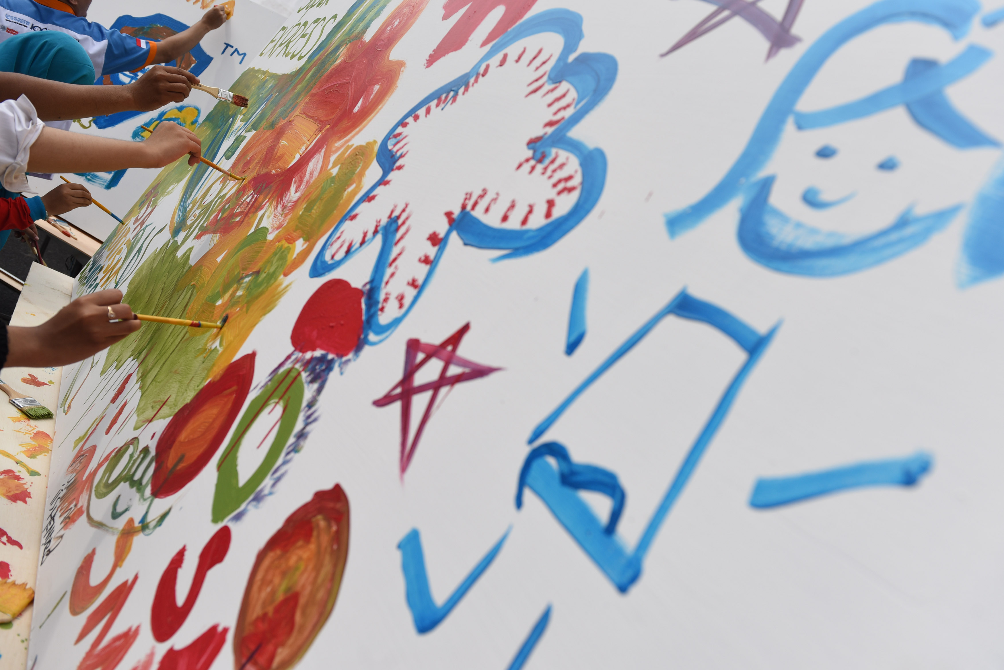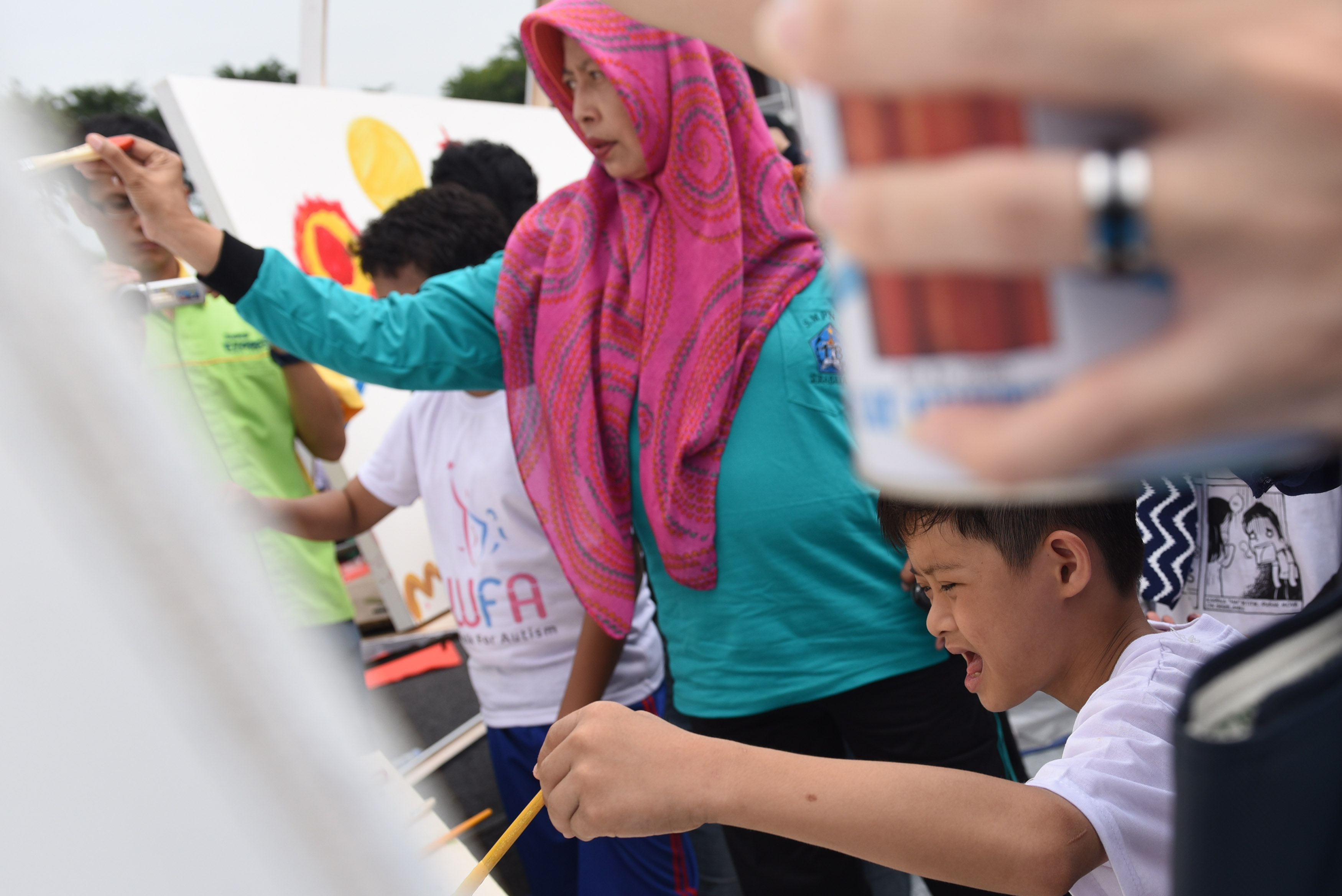 Sejumlah anak berkebutuhan khusus melukis di papan saat memperingati Hari Peduli Autisme Sedunia di Surabaya, Jawa Timur, Sabtu (21/5). Kegiatan tersebut bertujuan agar masyarakat lebih peduli terhadap penyandang autisme atau anak-anak berkebutuhan khusus. ANTARA FOTO/Zabur Karuru/ama/16