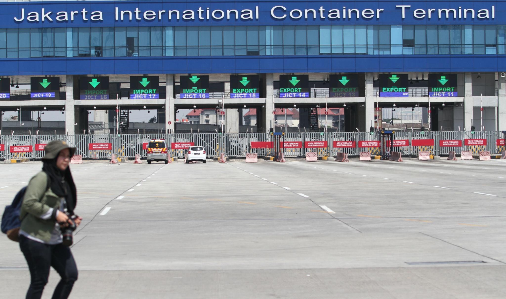 Suasana sepi terlihat di Jakarta International Container Terminal (JICT) di Tanjung Priok, Jakarta, Kamis (3/8). Suasana sepi ini disebabkan Aksi Mogok kerja ratusan Pekerja PT Jakarta International Countainer Terminal (JICT). AKTUAL/Tino Oktaviano