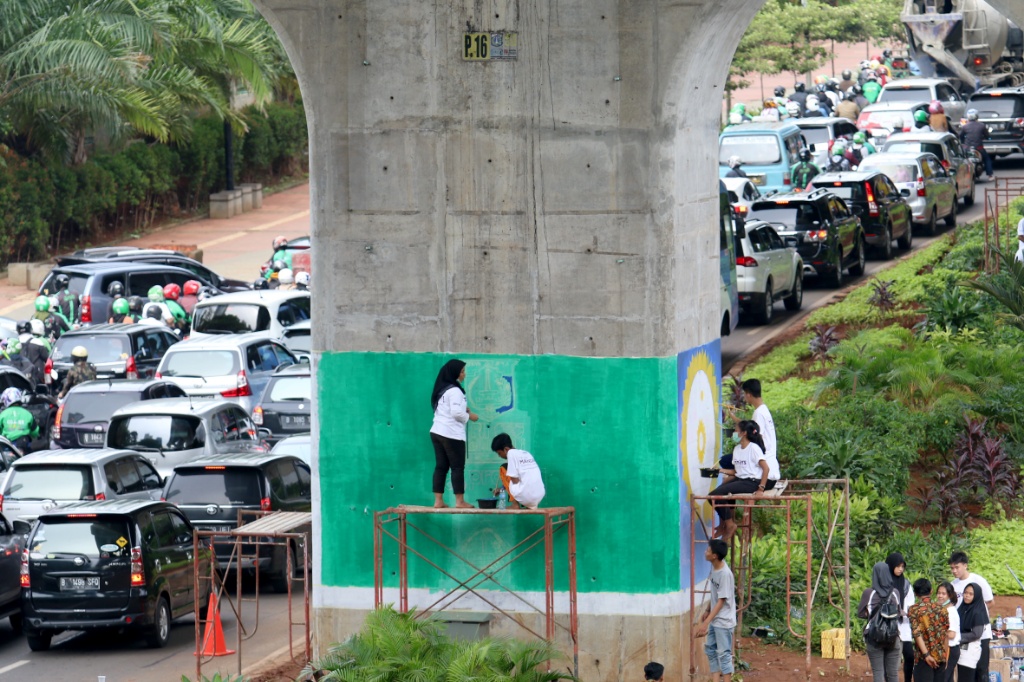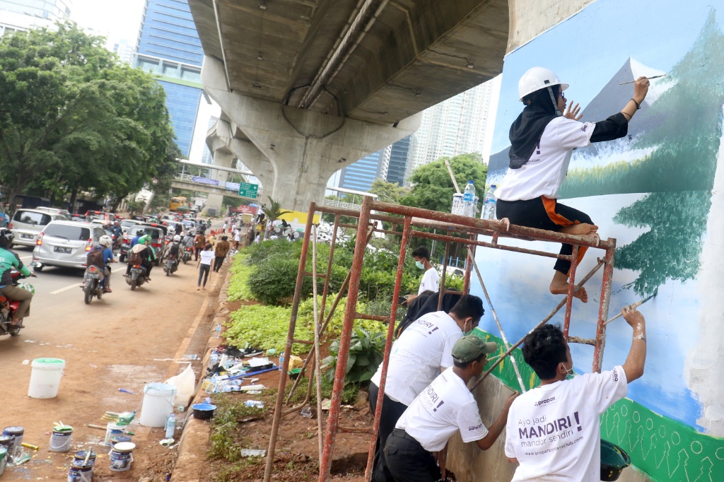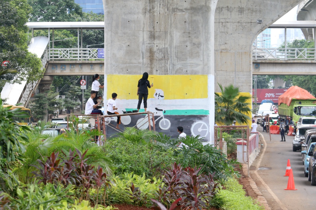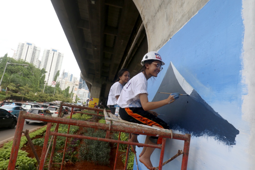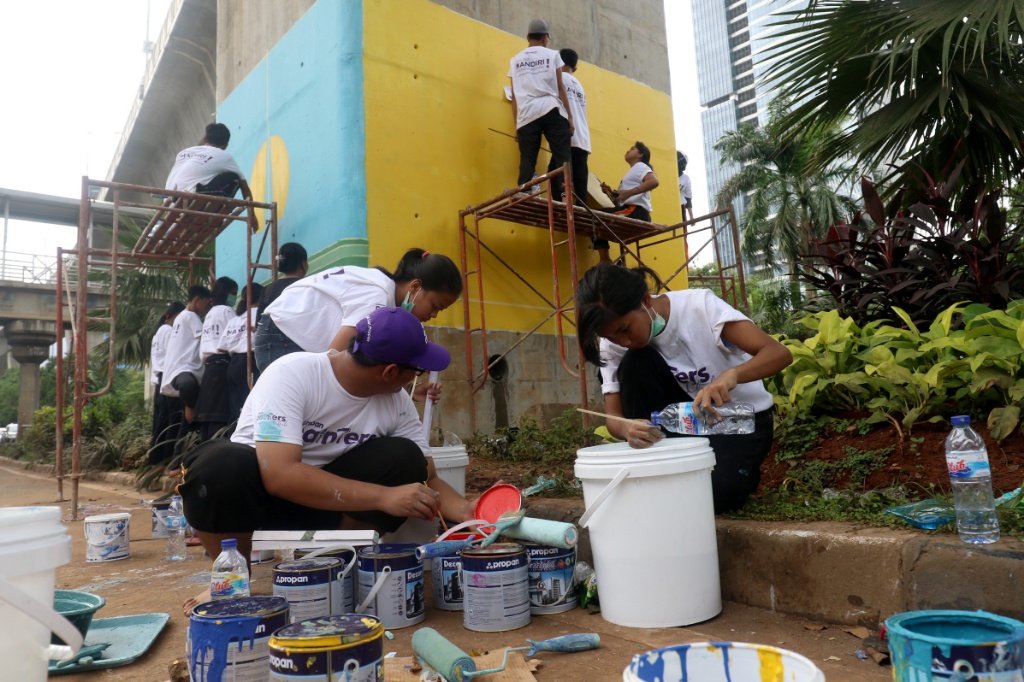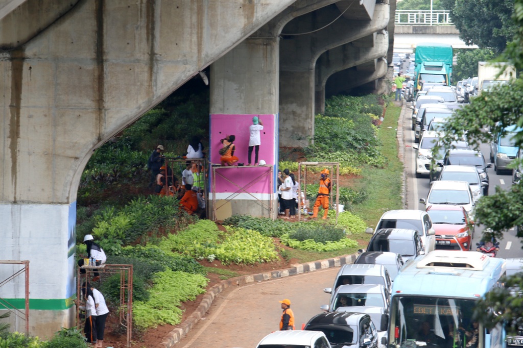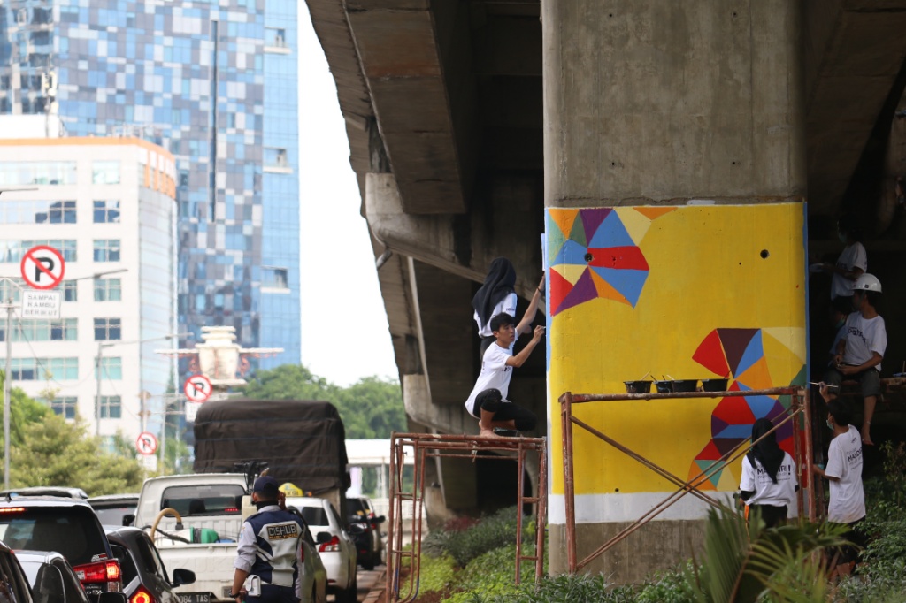 Pelajar SMK Buat Mural, Percantik Kolong Jalan Layang Non Tol