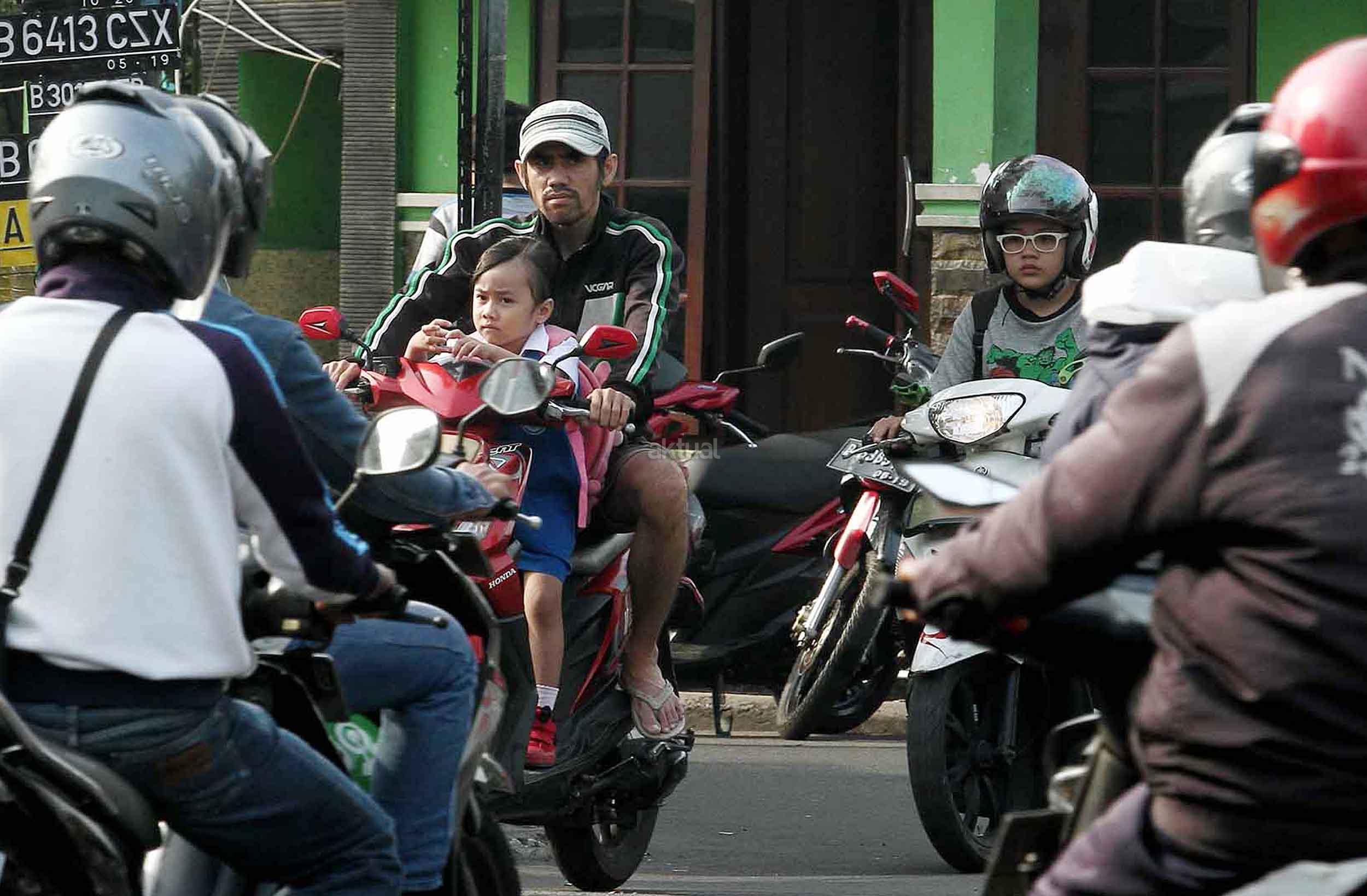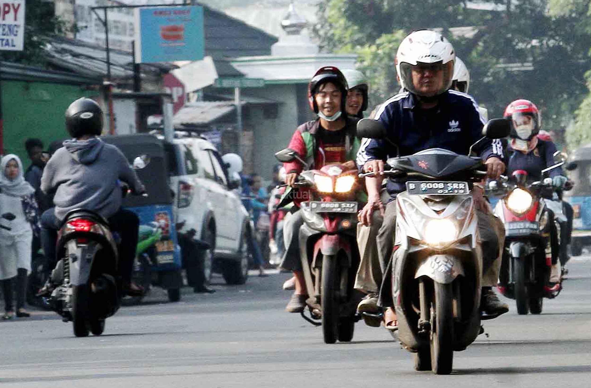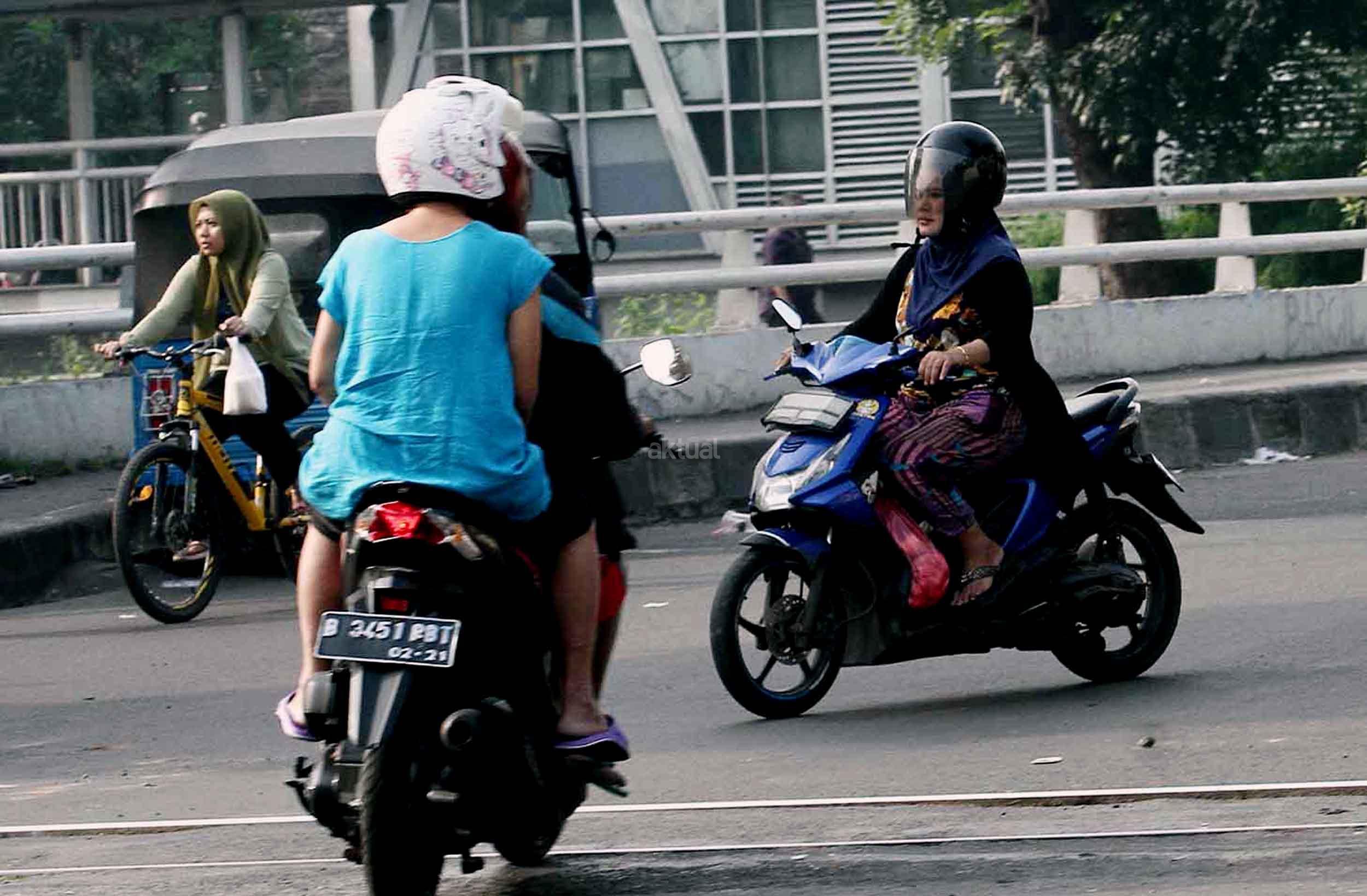 Seorang pengendara motor tidak menggunakan helm saat melintasi jalan dengan sepeda motor, di Jakarta, Selasa (01/11/20160. Direktorat Lalu Lintas Polda Metro Jaya mencatat, terjadi peningkatan pelanggaran lalu lintas sebesar 36,58 persen pada periode Januari sampai September 2016 dibanding Januari hingga September 2015. AKTUAL/Munzir