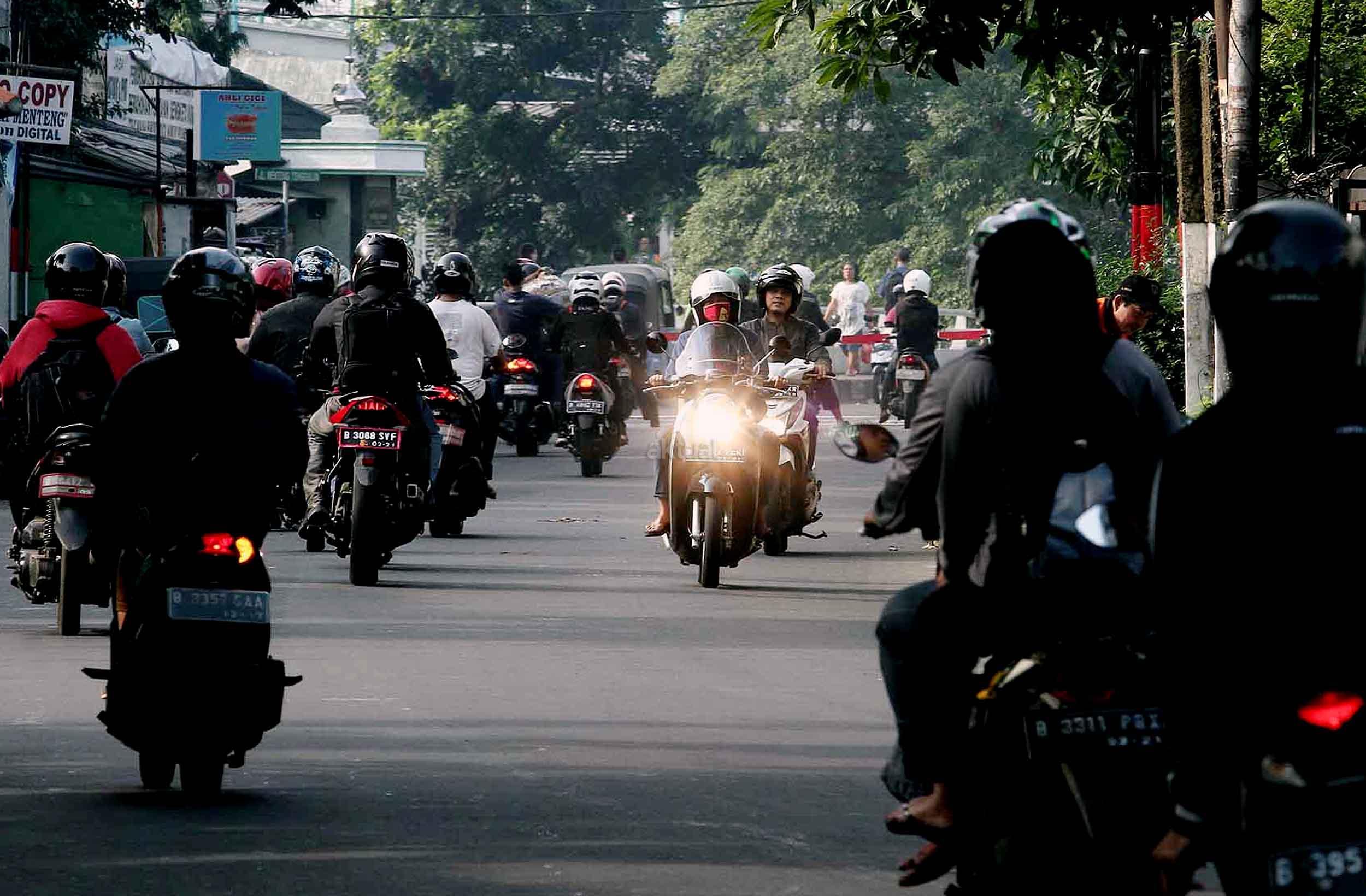 Pengendara kendaraan bermotor berlawanan arah menuju palang pintu kereta api pasar Rumput, Jakarta, Selasa (1/11/2016). Direktorat Lalu Lintas Polda Metro Jaya mencatat, terjadi peningkatan pelanggaran lalu lintas sebesar 36,58 persen pada periode Januari sampai September 2016 dibanding Januari hingga September 2015, di Jakarta.