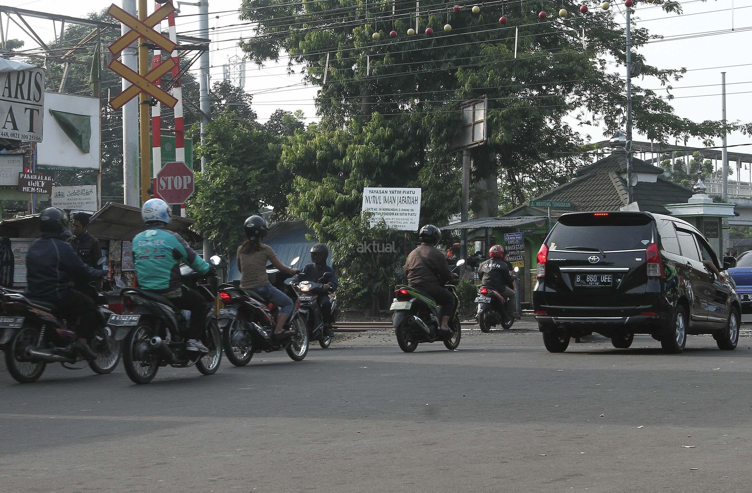 Pengendara motor melintasi jalur kereta api di Jakarta, Selasa (01/11/2016). Direktorat Lalu Lintas Polda Metro Jaya mencatat, terjadi peningkatan pelanggaran lalu lintas sebesar 36,58 persen pada periode Januari sampai September 2016 dibanding Januari hingga September 2015. AKTUAL/Munzir