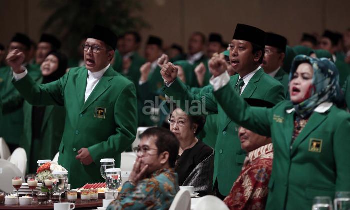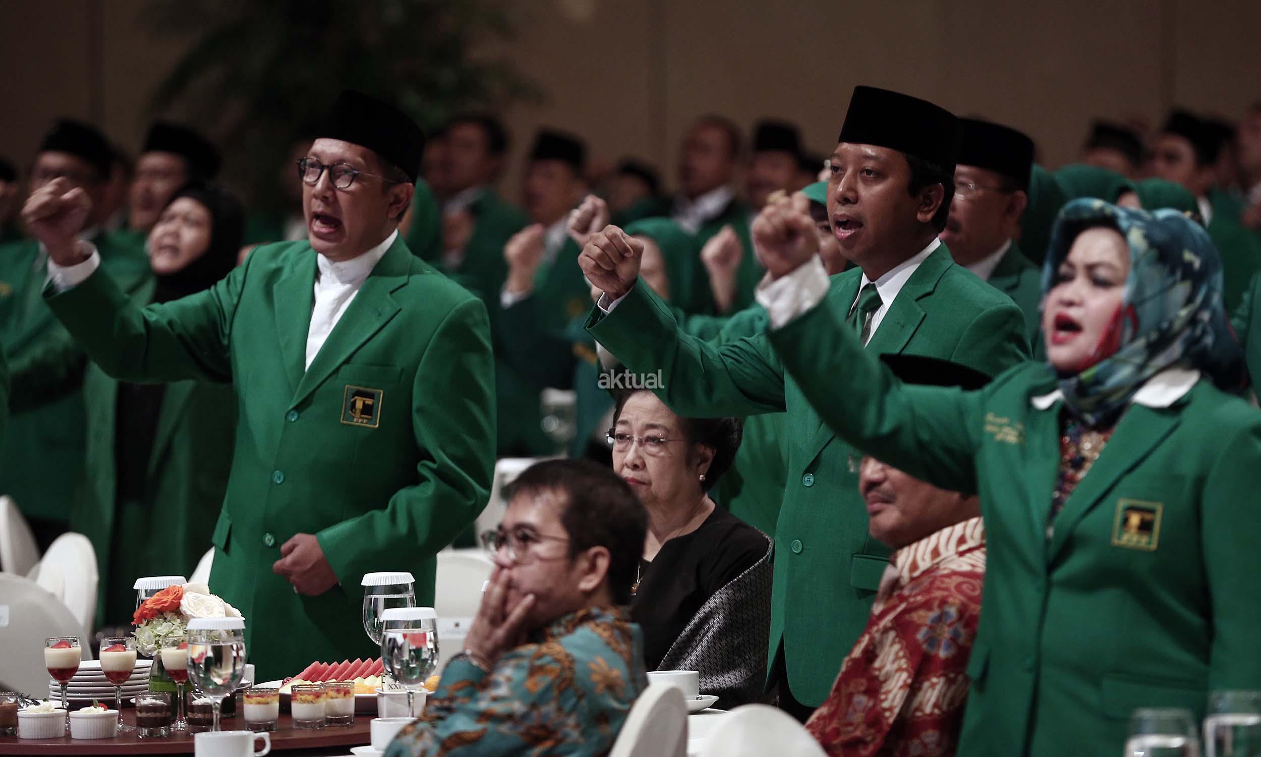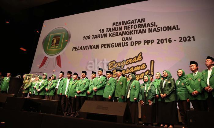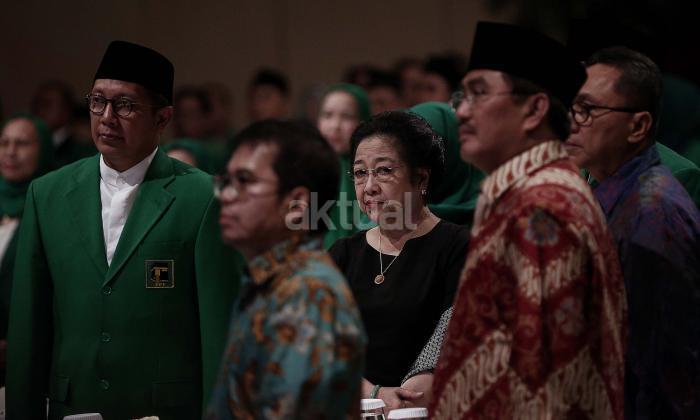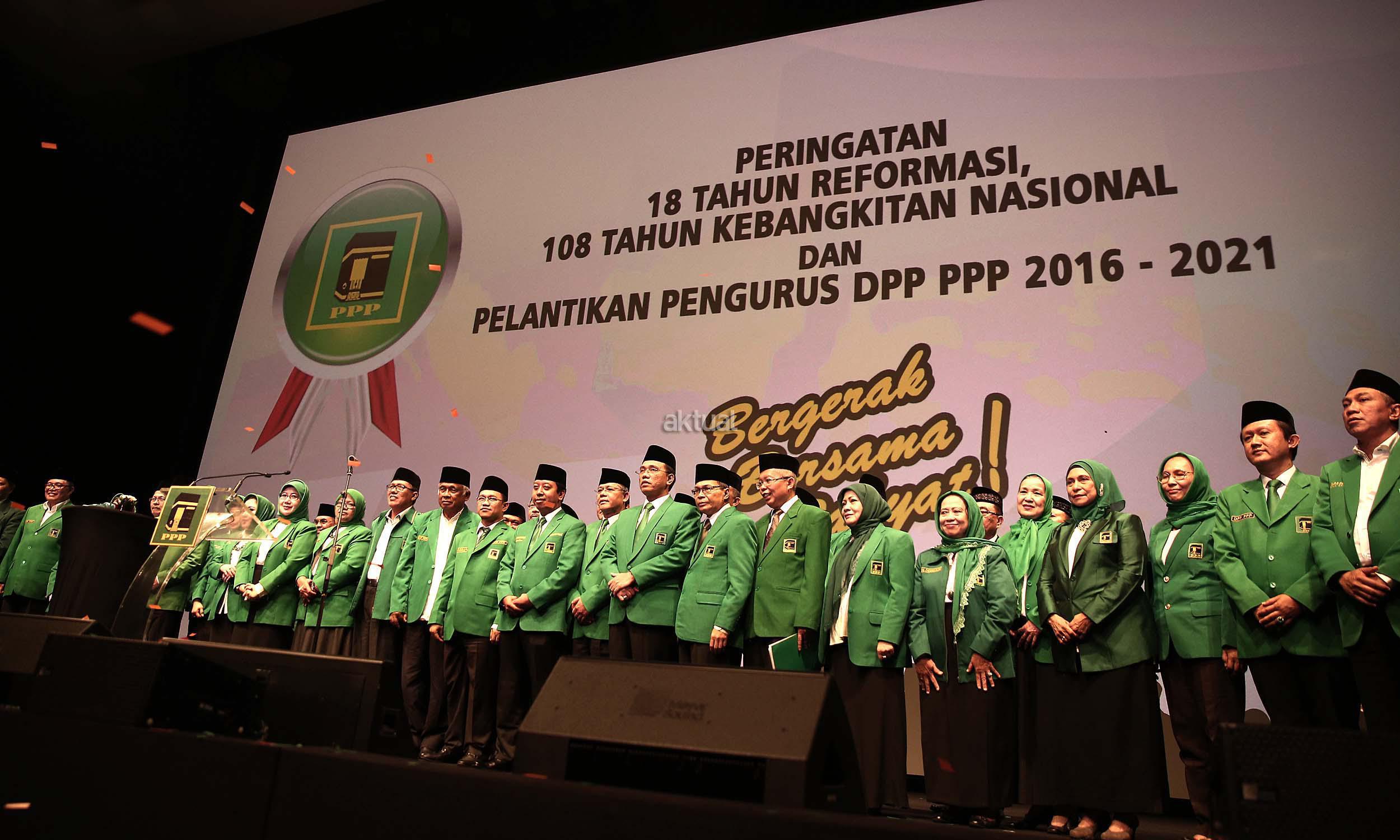 Kiri - kanan ; Menteri Agama yang juga Ketua Majelis Pakar PPP Lukman Hakim Saifuddin, Ketua Umum PDI Perjuangan Megawati Umum PAN Zulkifli Hasan, Ketua DKPP Jimly Asshiddiqie, Pengamat Politik Yudi Latif saat menghadiri menghadiri acara Peringatan 18 Tahun Reformasi dan 108 Tahun Kebangkitan Nasional di Jakarta, Jumat (20/5/2016). Dalam acara tersebut Ketua Umum DPP PPP Romahurmuziy sekaligus melantik 146 orang DPP PPP Masa Bakti 2016-2021.