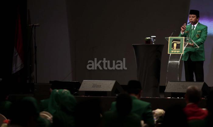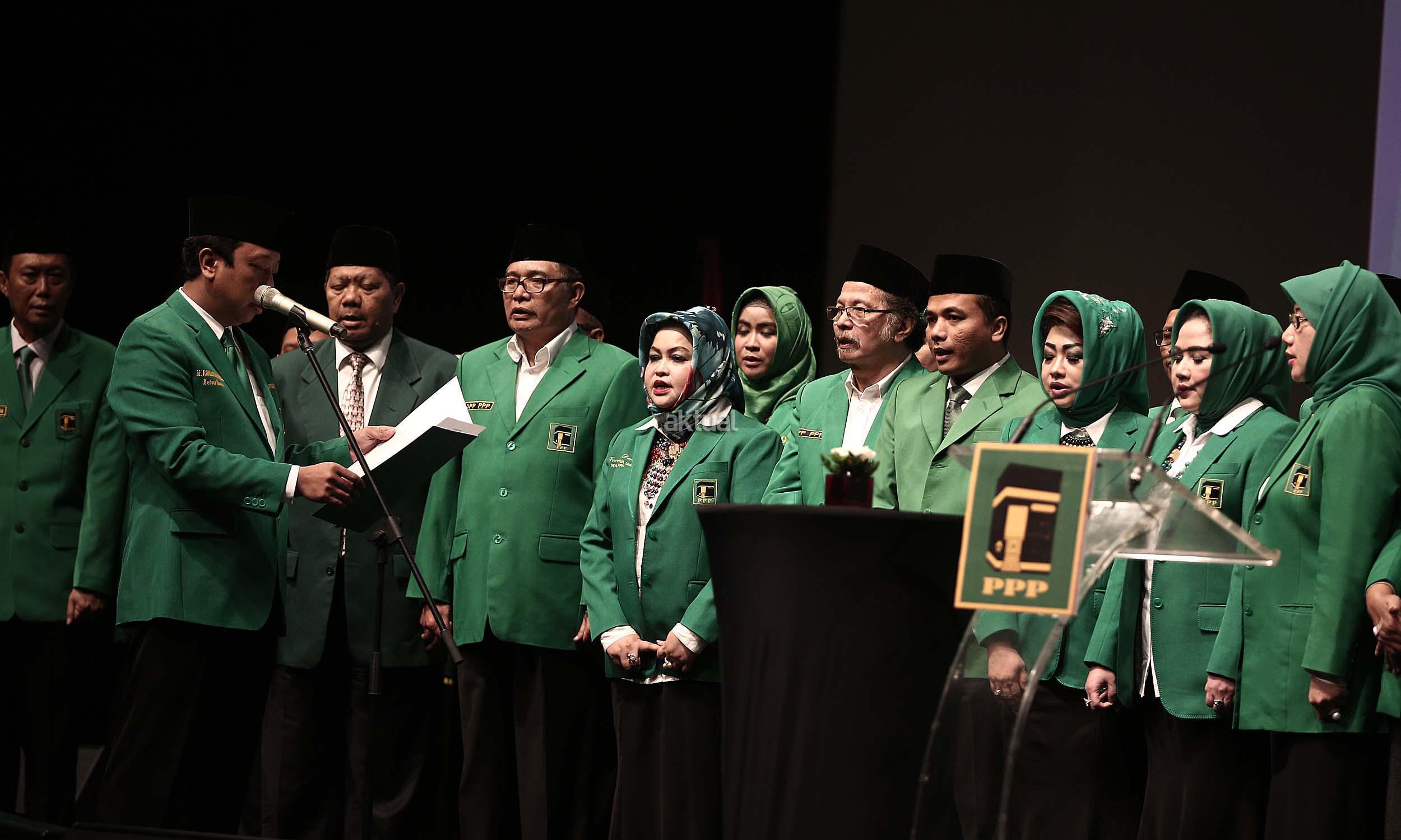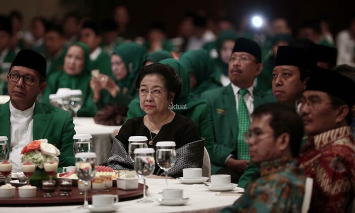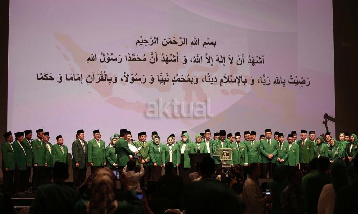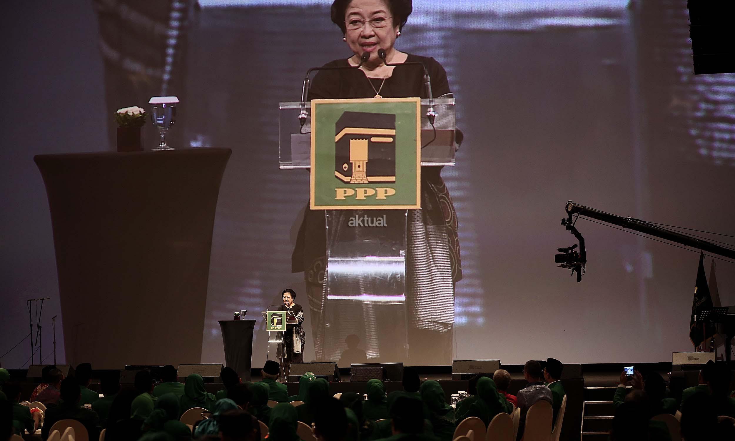 Kiri - kanan ; Menteri Agama yang juga Ketua Majelis Pakar PPP Lukman Hakim Saifuddin, Ketua Umum PDI Perjuangan Megawati Umum PAN Zulkifli Hasan, Ketua DKPP Jimly Asshiddiqie, Pengamat Politik Yudi Latif saat menghadiri menghadiri acara Peringatan 18 Tahun Reformasi dan 108 Tahun Kebangkitan Nasional di Jakarta, Jumat (20/5/2016). Dalam acara tersebut Ketua Umum DPP PPP Romahurmuziy sekaligus melantik 146 orang DPP PPP Masa Bakti 2016-2021.