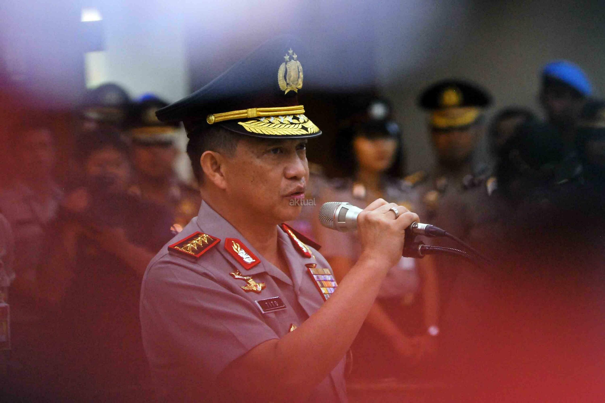 Kapolri Jenderal Pol. Tito Karnavian memberikan sambutan saat Pelantikan Wakil Kapolri di Mabes Polri, Jakarta, Sabtu (10/9). Komjen Pol. Syafruddin dilantik menjadi Wakil Kapolri menggantikan Jenderal Pol. Budi Gunawan yang ditunjuk Presiden Joko Widodo menjadi Kepala BIN. AKTUAL/TINO OKTAVIANO