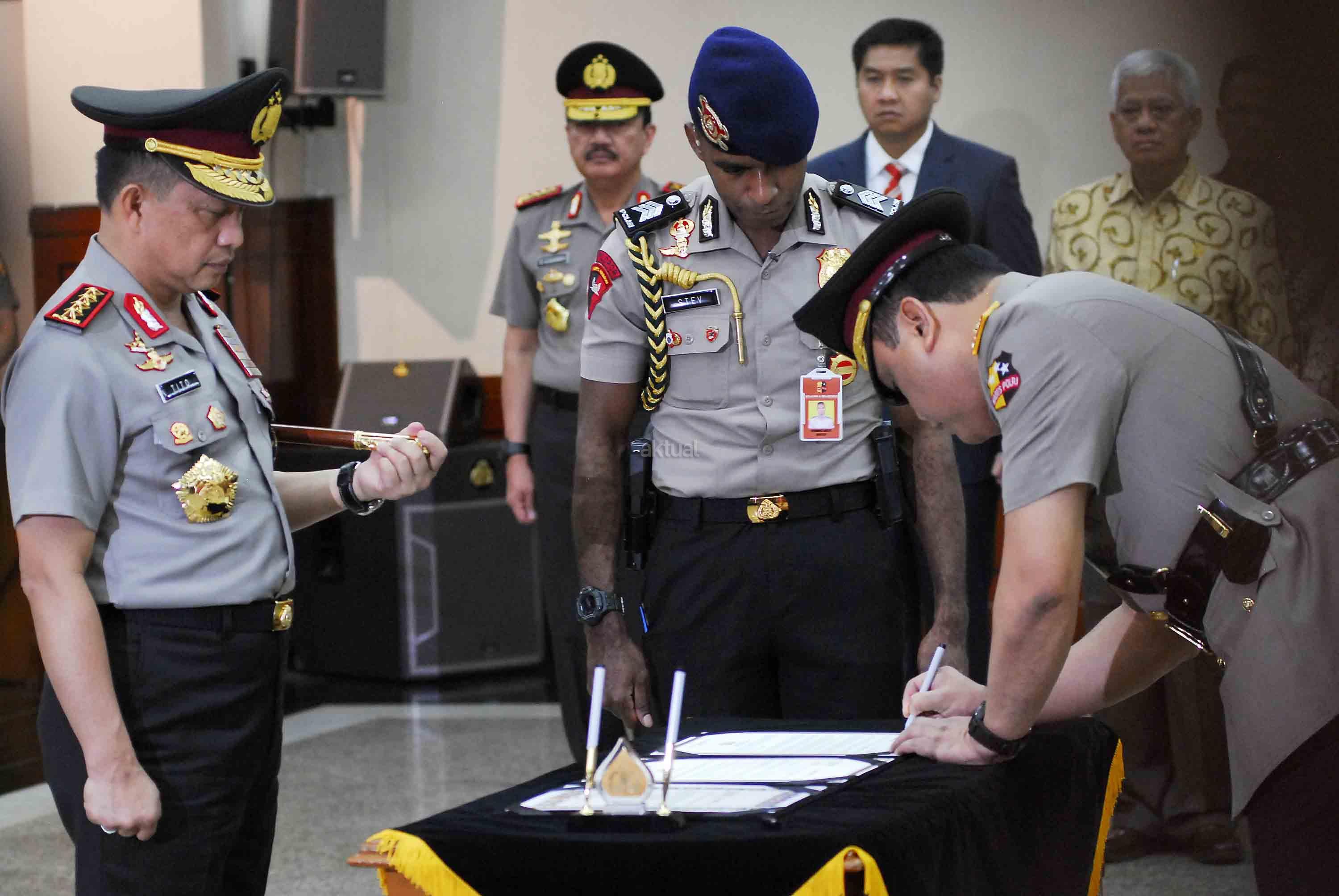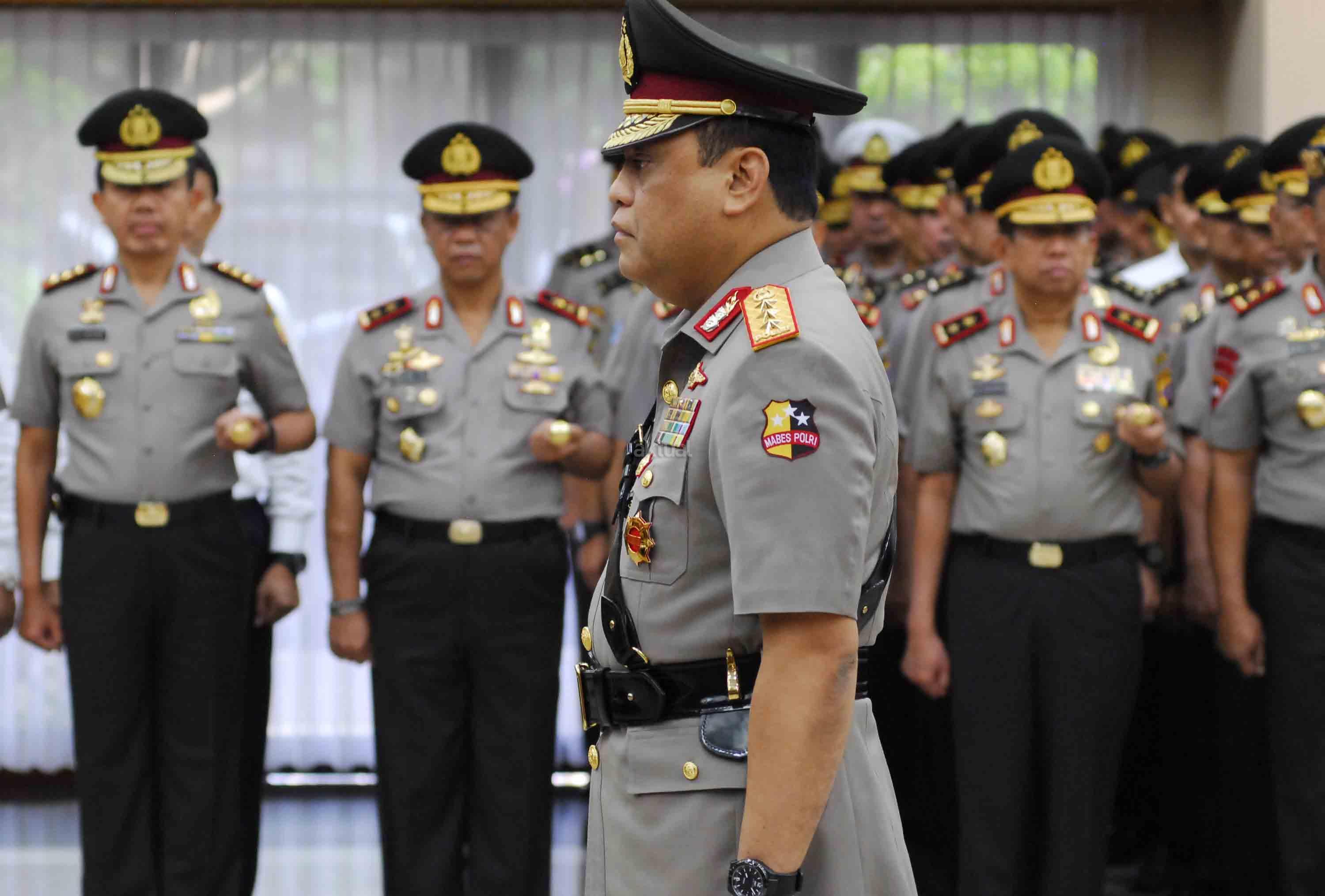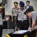 Wakil Kapolri Komjen Pol. Syafruddin (kanan) saat pelantikan di Mabes Polri, Jakarta, Sabtu (10/9). Komjen Pol. Syafruddin dilantik menjadi Wakil Kapolri menggantikan Jenderal Pol. Budi Gunawan yang ditunjuk Presiden Joko Widodo menjadi Kepala BIN. AKTUAL/TINO OKTAVIANO