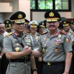 Kepala BIN Jenderal Pol. Budi Gunawan (kanan) berjabat tangan dengan Wakil Kapolri Komjen Pol. Syafruddin (kiri) usai Pelantikan Wakil Kapolri di Mabes Polri, Jakarta, Sabtu (10/9). Komjen Pol. Syafruddin dilantik menjadi Wakil Kapolri menggantikan Jenderal Pol. Budi Gunawan yang ditunjuk Presiden Joko Widodo menjadi Kepala BIN. AKTUAL/TINO OKTAVIANO