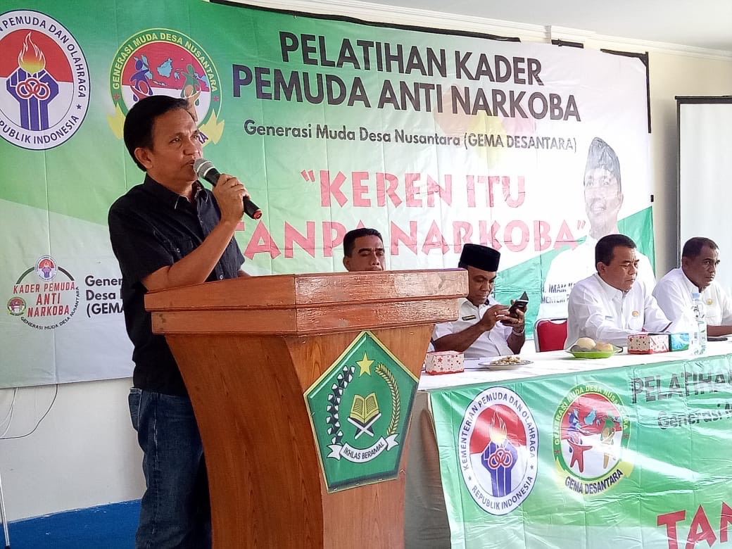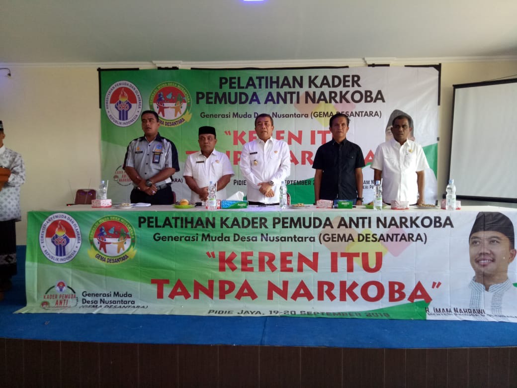 (kiri-kanan) Plt BNN Kabupaten Pidi Jayapidi, Fakhriadi, Perwakilan Kemenag, Ilyas Muhammad, Wakil Bupati Pidie Jaya, Zaid Muliadi, Asdep Peningkatan Wawasan Pemuda Kemenpora, Arifin, dan Kadispora, Rusky, saat menggelar Pelatihan Kader Pemuda Anti Narkoba di Aceh, Rabu (19/9). Mengusung tema ‘Bahaya Narkoba dan Pencegahannya’ pelatihan kader pemuda anti narkoba yang diinisiasi Kemenpora RI bekerjasama dengan Generasi Muda Desa Nusantara ini, diharapkan mampu memberikan edukasi kepada masyarakat terutama pemuda menyadari akan bahaya narkoba. AKTUAL/Pool