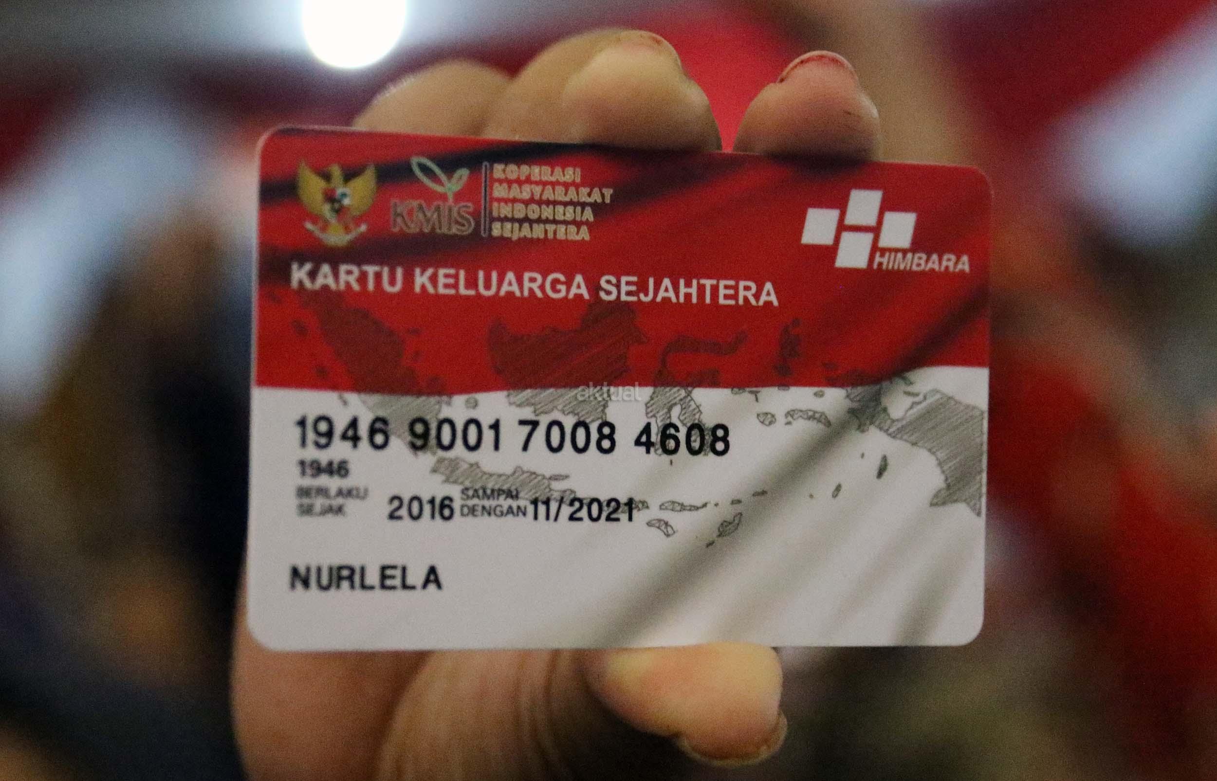 Warga menunjukan kartu Program Keluarga Harapan (PHK) pada acara peluncuran Penyaluran Bantuan Sosial Non Tunai PKH tahun 2016 di Jakarta, Kamis (17/11/2016). Program tersebut bertujuan untuk mengajak penerima Program Keluarga Harapan (PKH) agar mulai belajar menabung. AKTUAL/Munzir