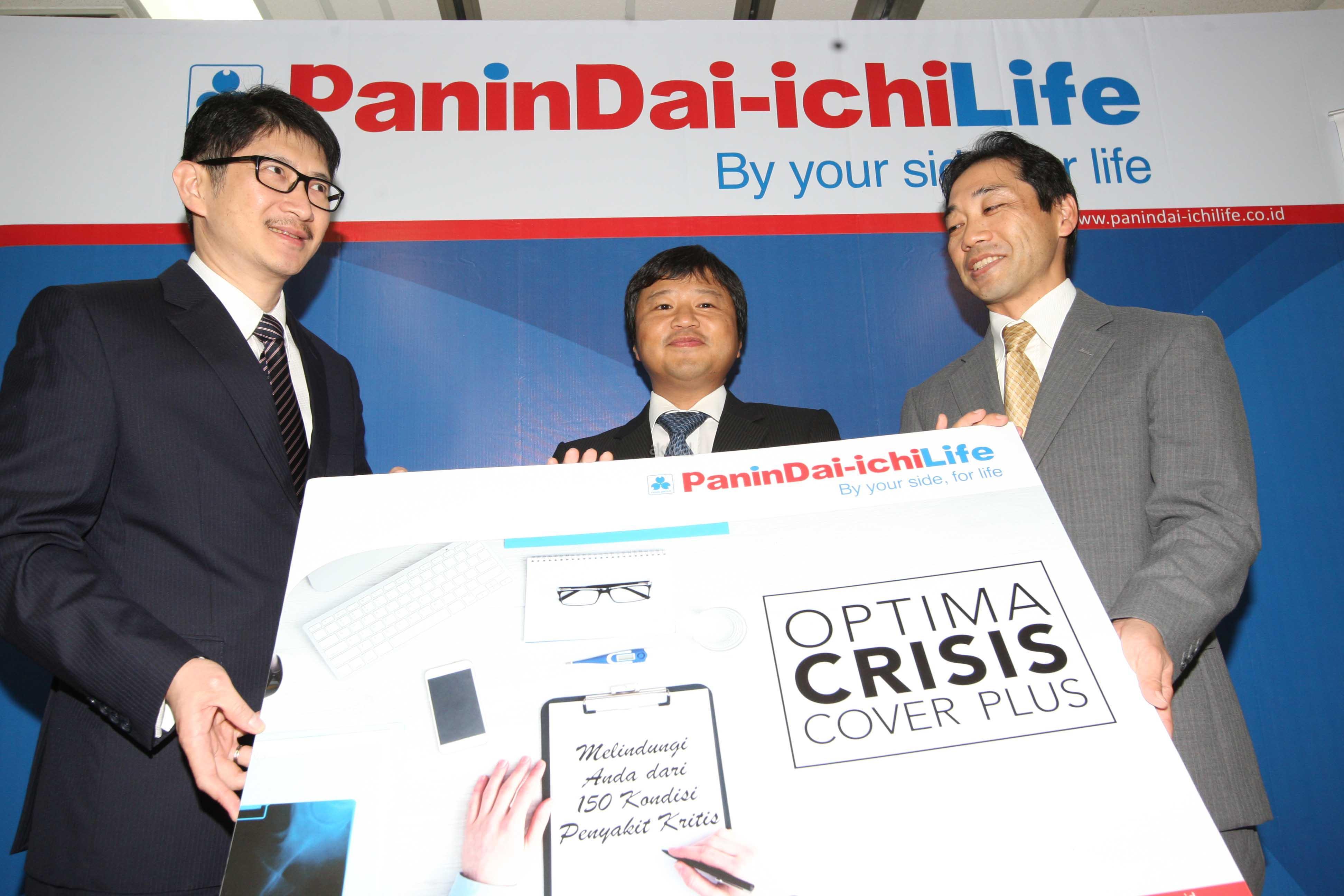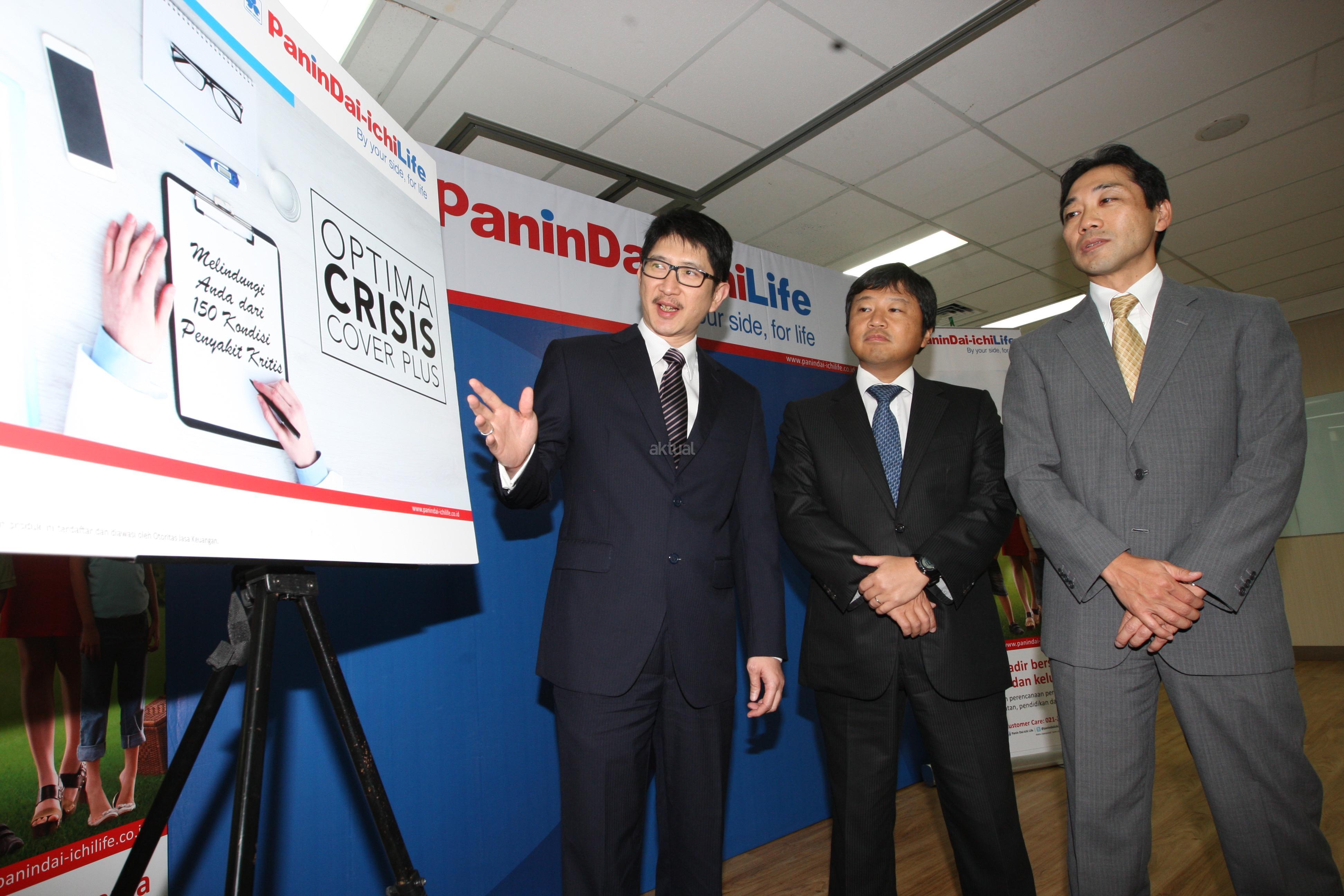 Wakil Presiden Direktur PT Panin Dai-ichi Life Simon Imanto (kiri), Wakil Presiden Direktur Masayuki Tanaka (tengah) dan Direktur Kenichi Fukuda, meluncurkan produk Optima Crisis Cover Plus di Jakarta, Kamis (2/3). Keunggulan utama dari Optima Crisis Cover Plus yaitu perlindungan dari tahap awal (early stage) terhadap 150 kondisi pengakit kritis dengan rentang usia masuk 1 bulan hingga 70 tahun. AKTUAL/HO