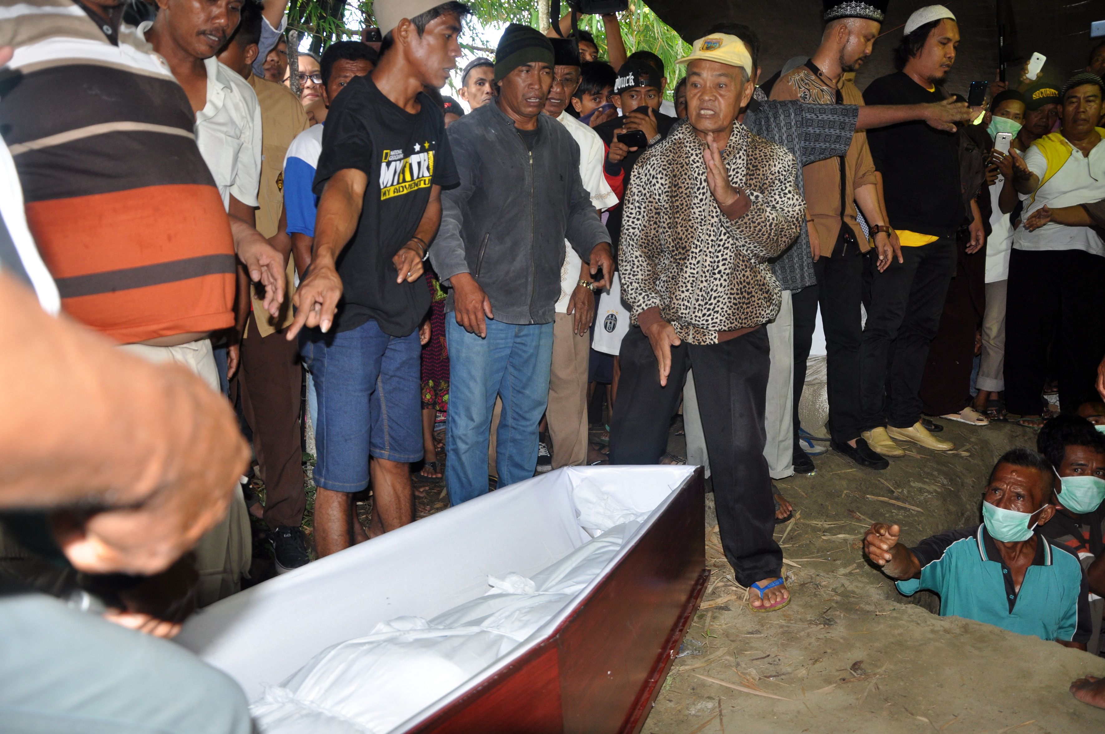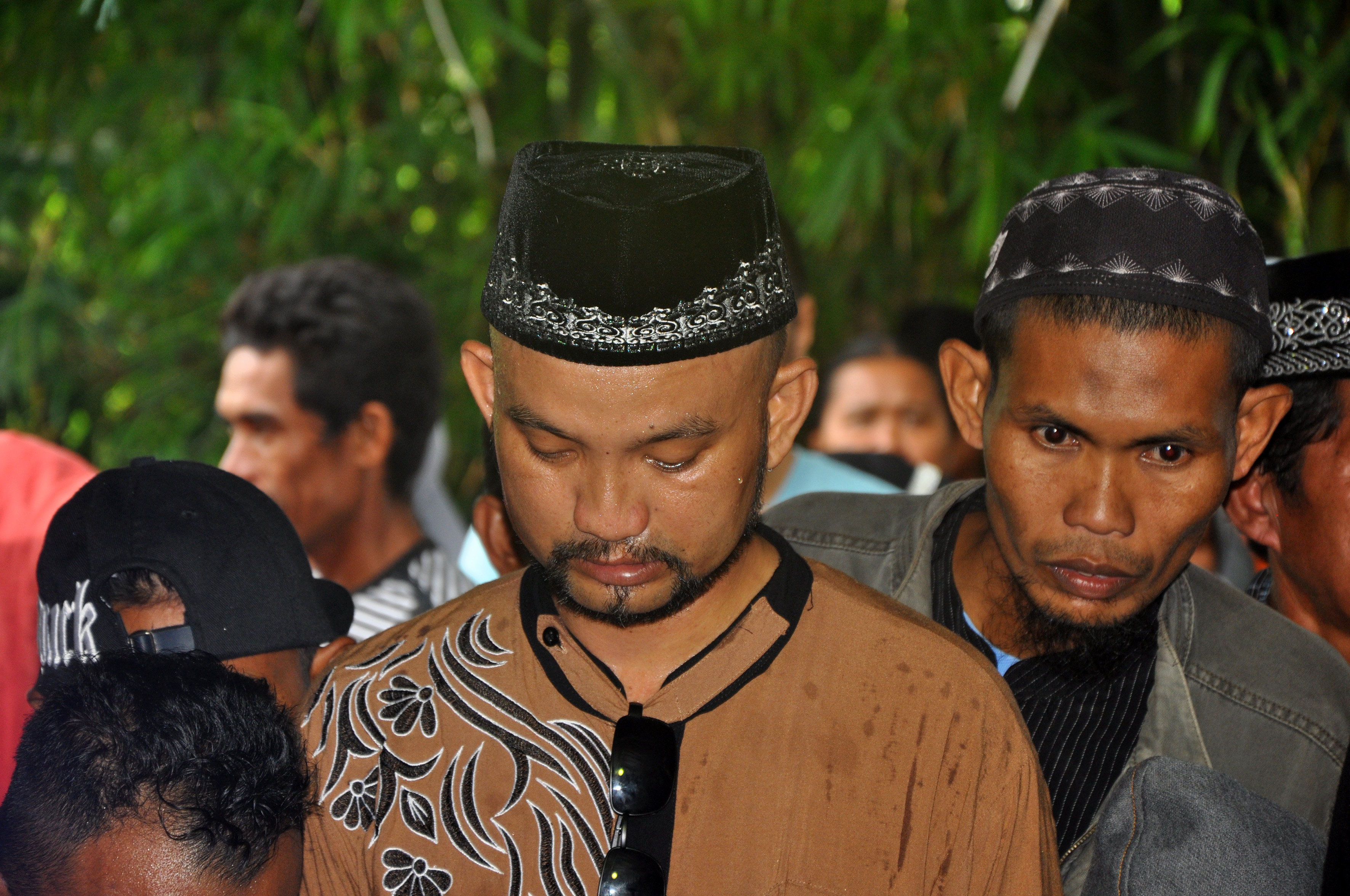 IH (tengah) kakak kandung Muhtar, salah satu anggota kelompok sipil bersenjata Poso yang mati tertembak, menyaksikan proses pemakaman jenasah kakaknya di pemakaman umum Keluarahan Lambara, Kecamatan Tawaeli, Palu, Sulawesi Tengah, Sabtu (23/7). Muhtar dan Santoso merupakan pemimpin Mujahidin Indonesia Timur (MIT) di Poso yang mati tertembak saat baku tembak di Tambarana, Poso Pesisir Utara, Poso Senin (18/7) lalu. ANTARAFOTO/ZAINUDDIN MN/EDDY MAHYUDIN/ama/16