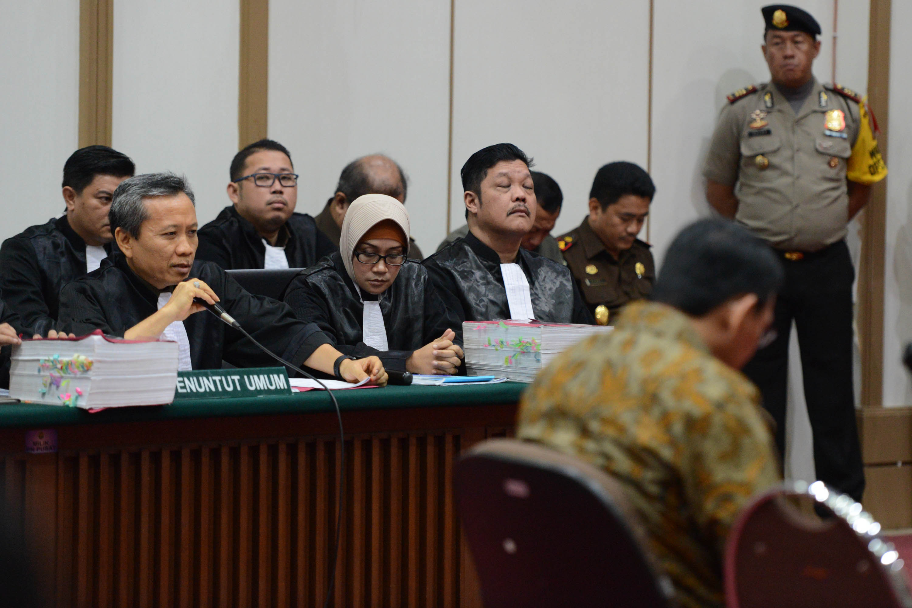 Jaksa penuntut umum memberikan pemaparan saat sidang terdakwa kasus dugaan penistaan agama Gubernur DKI Jakarta, Basuki Tjahaja Purnama dengan agenda pembacaan tuntutan yang digelar oleh Pengadilan Negeri Jakarta Utara di Auditorium Kementerian Pertanian, Jakarta, Selasa (11/4). Sidang tersebut ditunda hingga 20 April mendatang karena Jaksa belum selesai mengetik tuntutan. Foto: Republika/Raisan Al Farisi/POOL Foto: Raisan Al Farisi/Republika