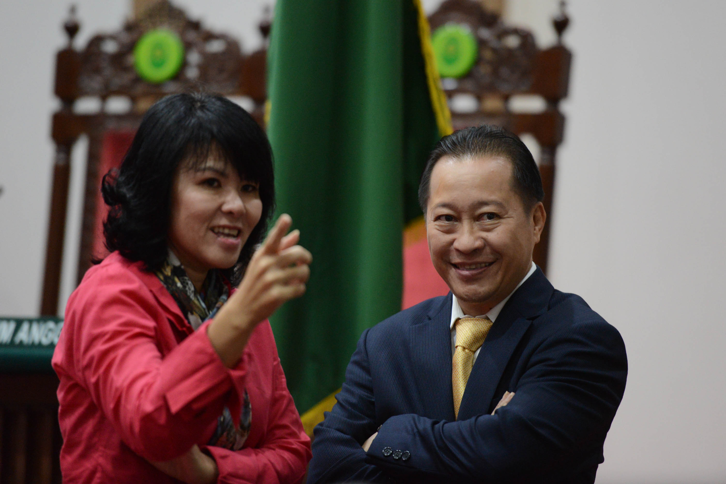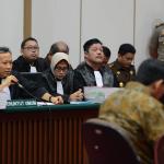 Pengacara Humprey Djemat (kanan) bersiap untuk menjalani sidang dengan Terdakwa kasus dugaan penistaan agama Gubernur DKI Jakarta, Basuki Tjahaja Purnama dengan agenda pembacaan tuntutan yang digelar oleh Pengadilan Negeri Jakarta Utara di Auditorium Kementerian Pertanian, Jakarta, Selasa (11/4). Sidang tersebut ditunda hingga 20 April mendatang karena Jaksa belum selesai mengetik tuntutan. Foto: Republika/Raisan Al Farisi/POOL Foto: Raisan Al Farisi/Republika