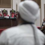 Hakim ketua Dwiarso Budi Santiarto (tengah) memimpin sidang lanjutan kasus dugaan penistaan agama dengan terdakwa Basuki Tjahaja Purnama atau Ahok menjalani sidang lanjutan dengan agenda pembacaan tuntutan di Pengadilan Jakarta Utara, Auditorium Kementan, Jakarta, Selasa (11/4). Dengan alasan belum selesai pengetikan tuntutan, Jaksa Penuntut Umum memohon Majelis Hakim untuk menunda persidangan pada Kamis (20/4) mendatang. Foto: Media Indonesia-POOL/Rommy Pujianto