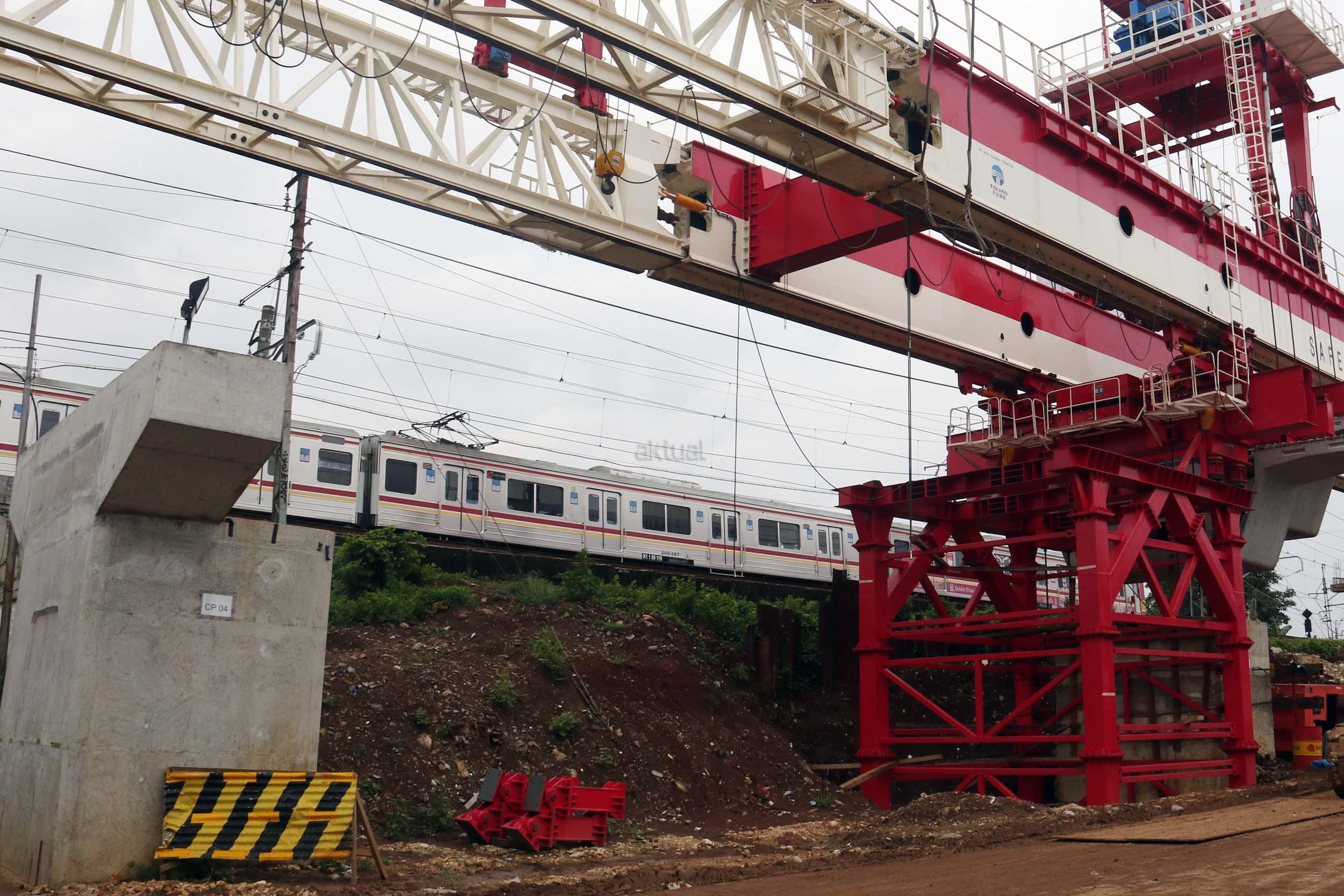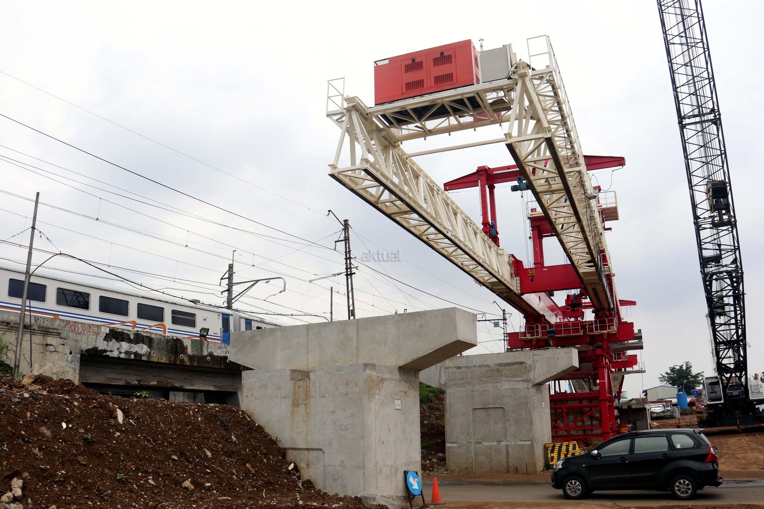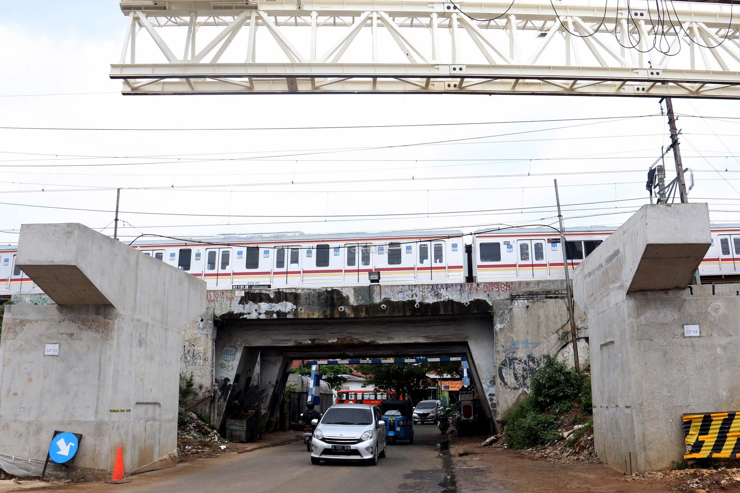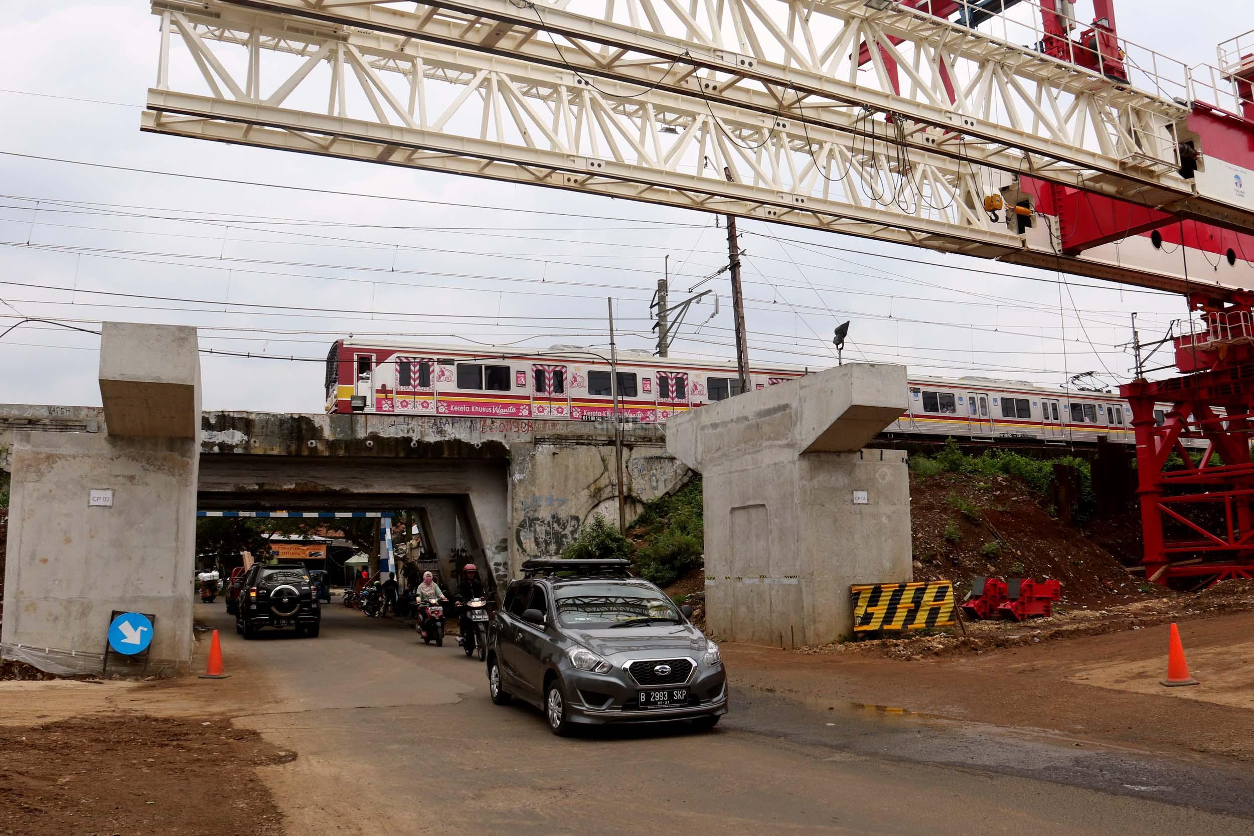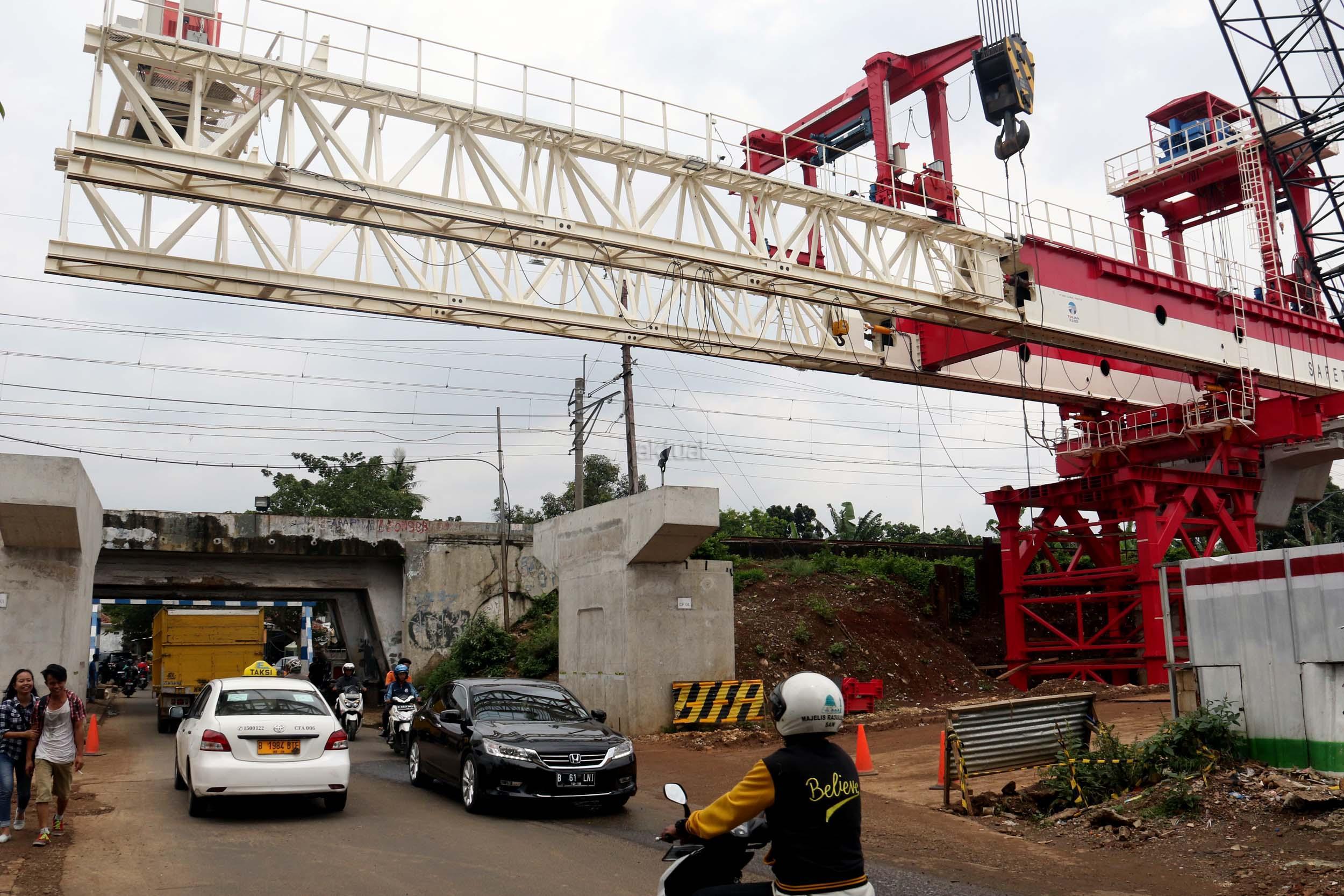 Sejumlah kendaraan mellintas di bawah proyek pembangunan Double Double Track (DDT) Manggarai / Cikarang, Jakarta, Selasa (7/2/2017). Proyek dengan nilai Rp 2,6 sd Rp 3 triliun ini di targetkan dapat digunakan oleh masyarakayat pada tahun 2019 mendatang. AKTUAL/Munzir