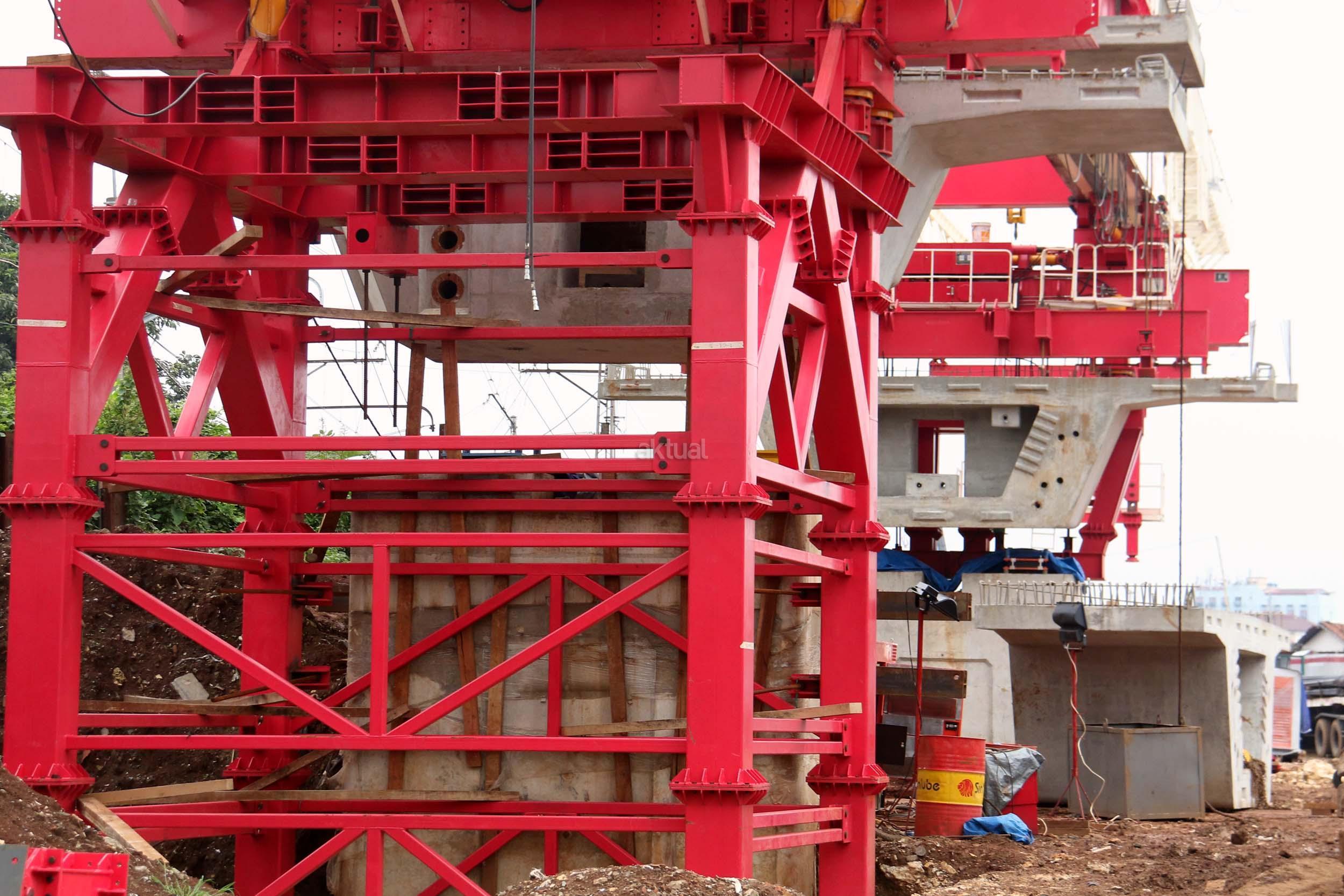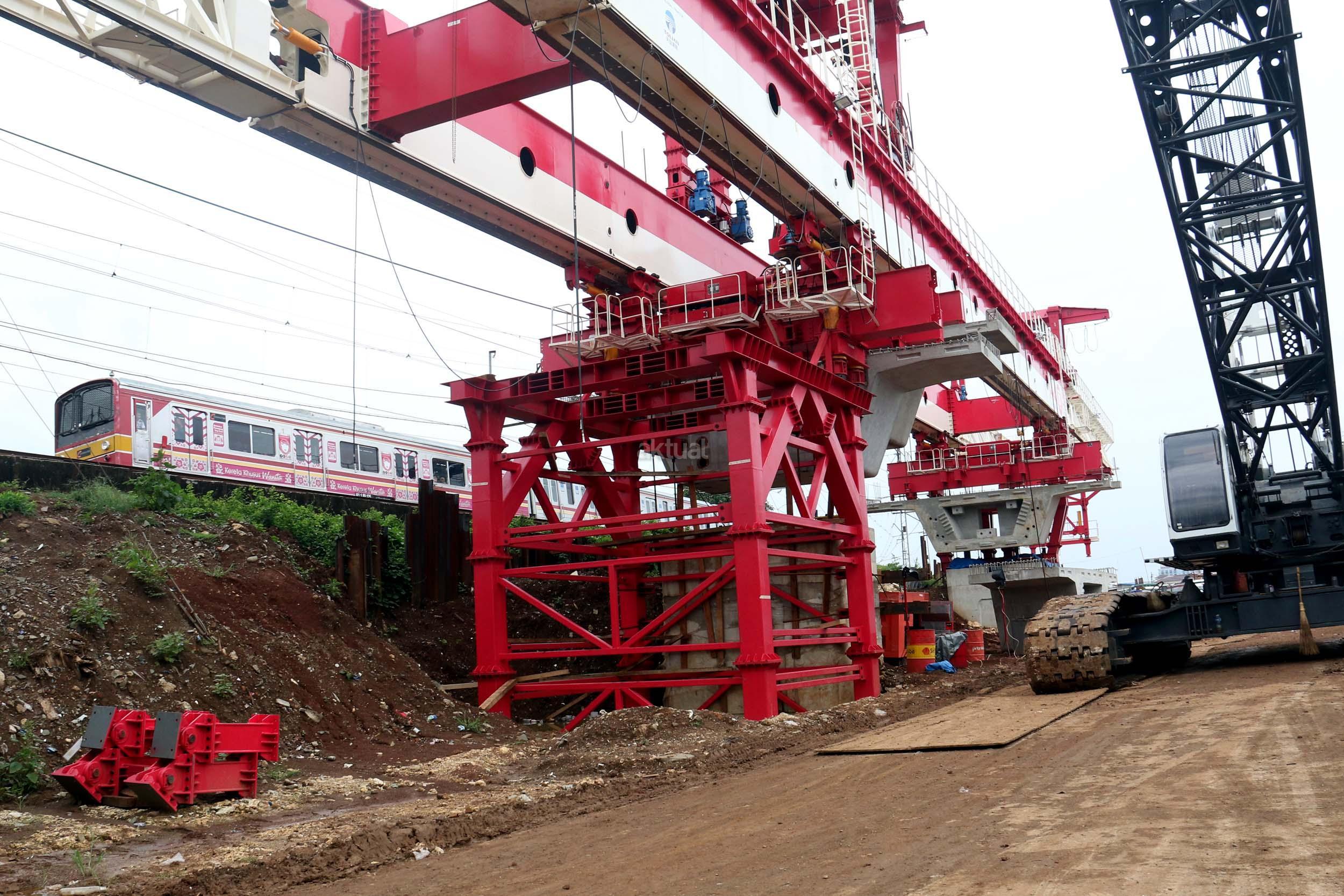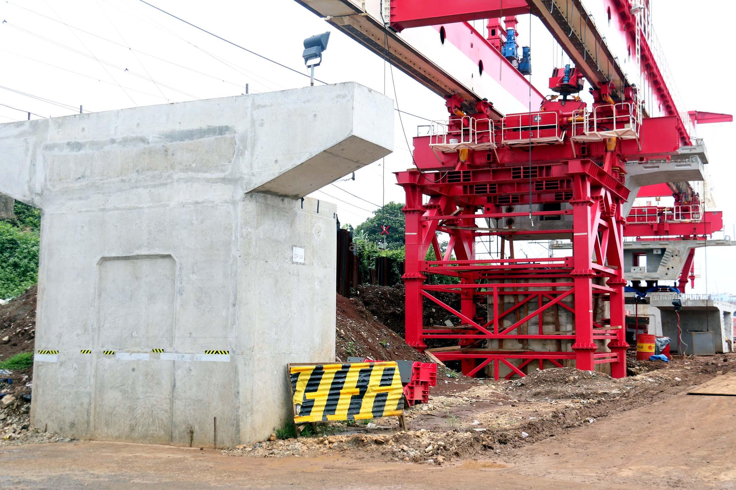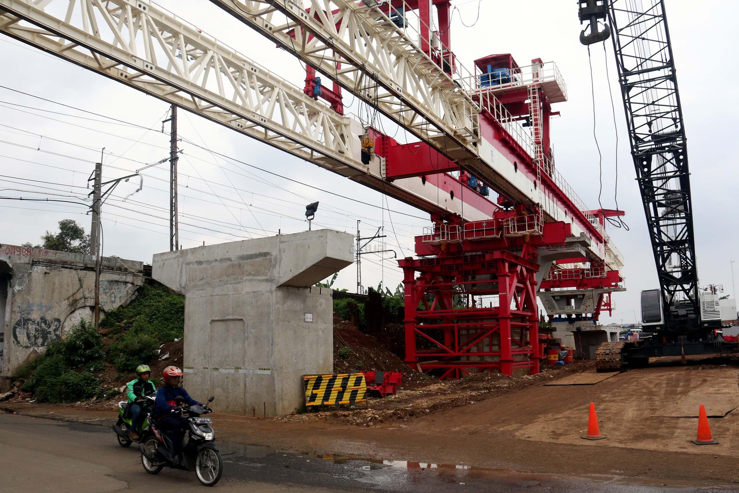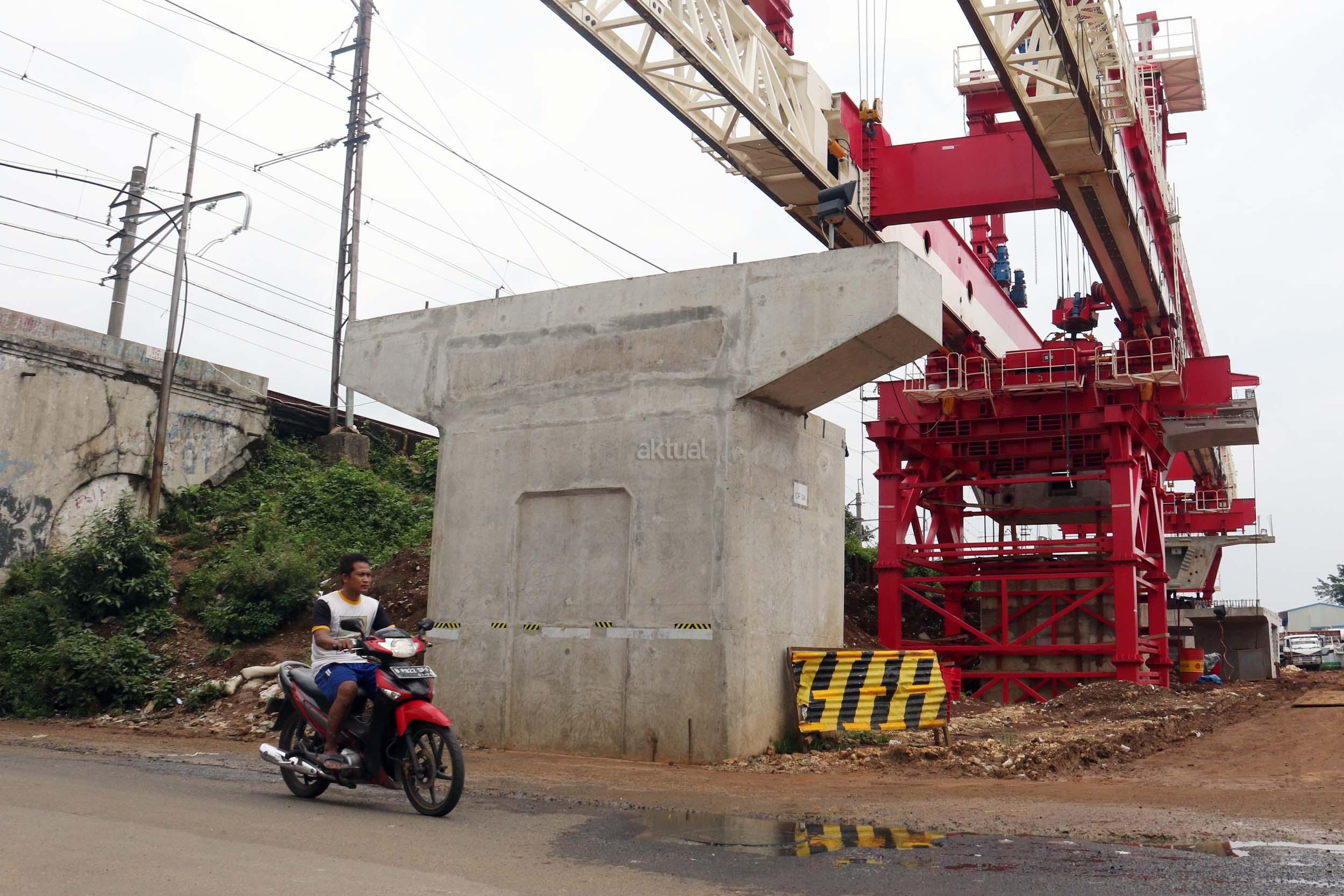 Sejumlah kendaraan mellintas di bawah proyek pembangunan Double Double Track (DDT) Manggarai / Cikarang, Jakarta, Selasa (7/2/2017). Proyek dengan nilai Rp 2,6 sd Rp 3 triliun ini di targetkan dapat digunakan oleh masyarakayat pada tahun 2019 mendatang. AKTUAL/Munzir