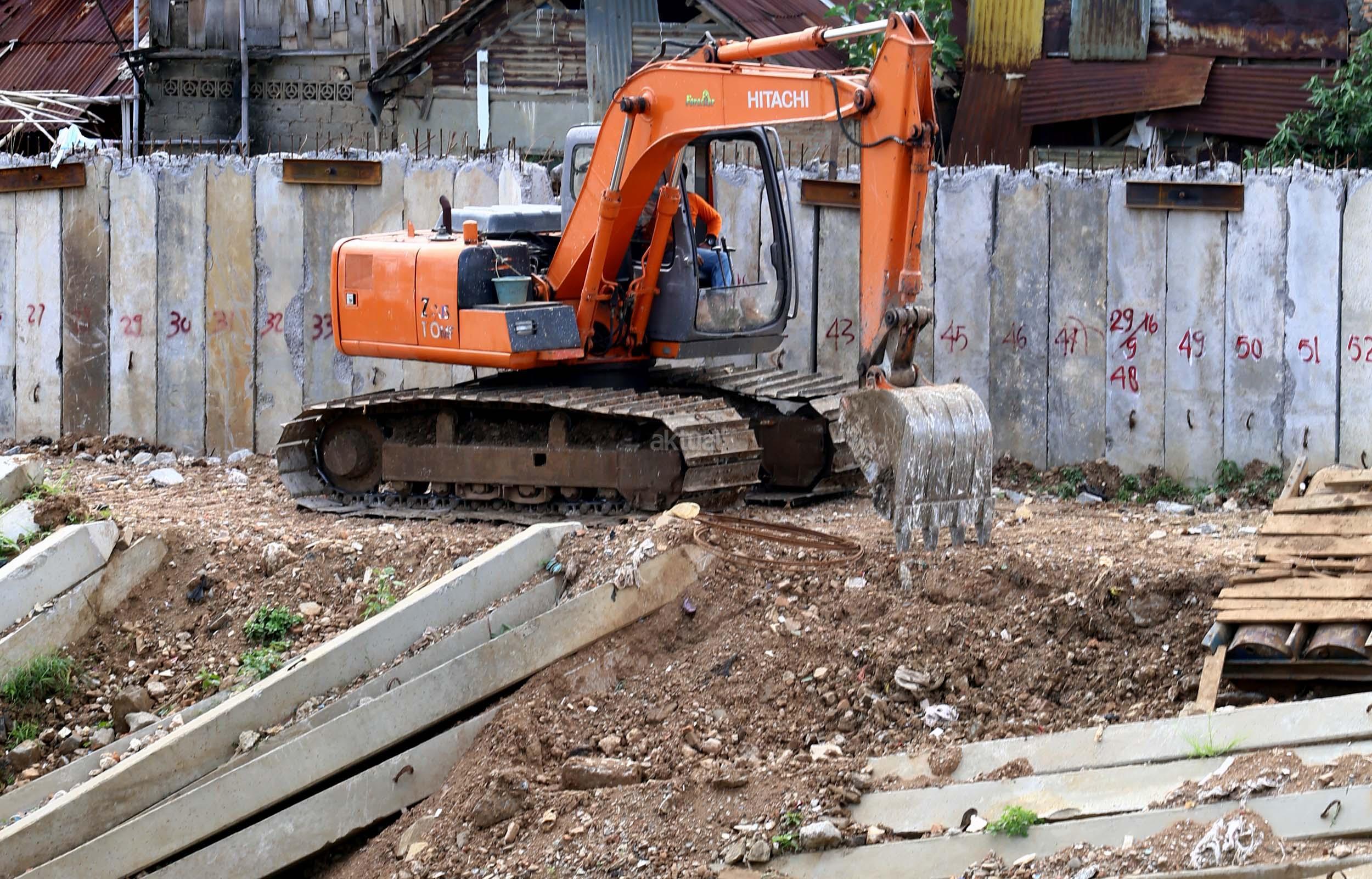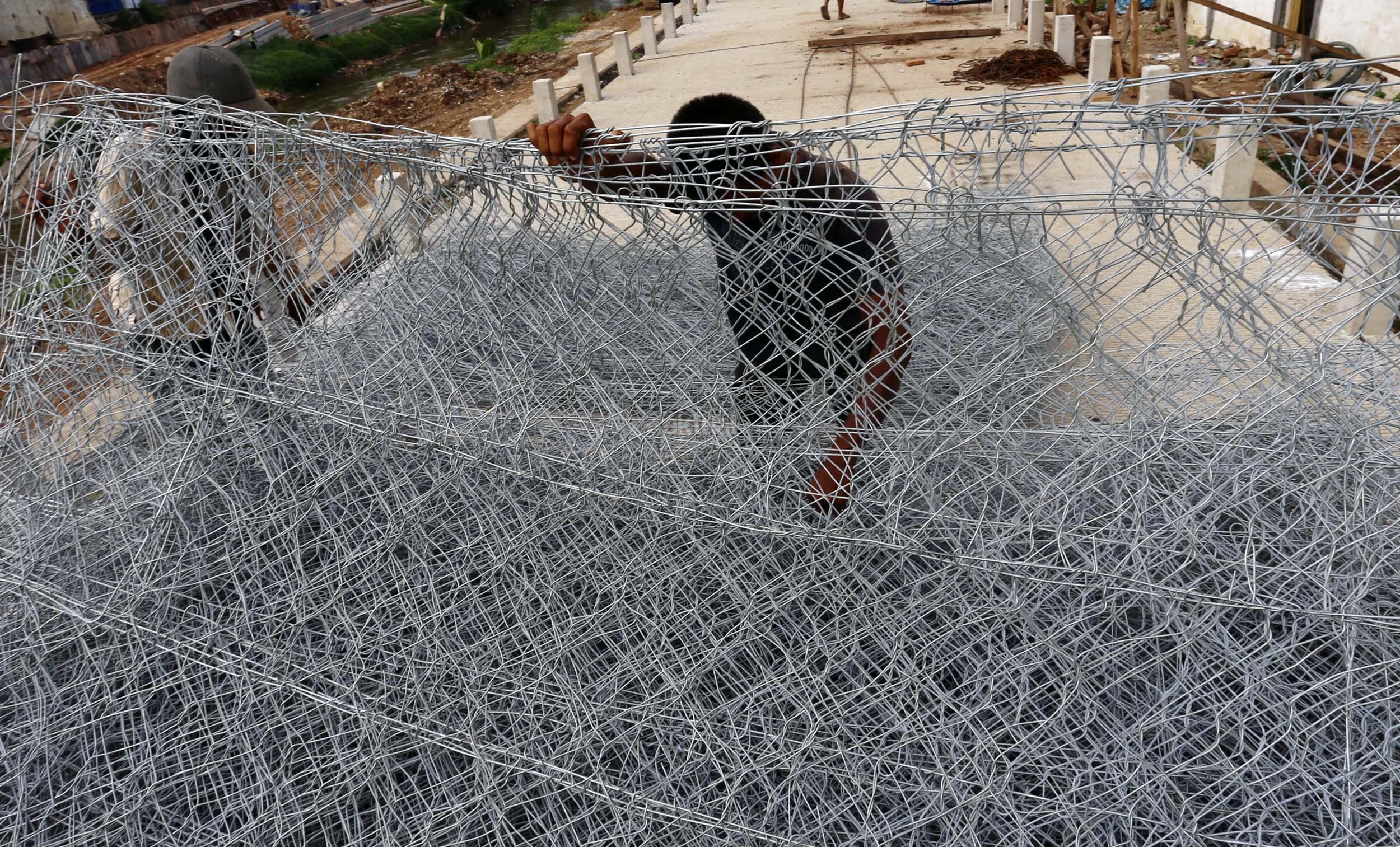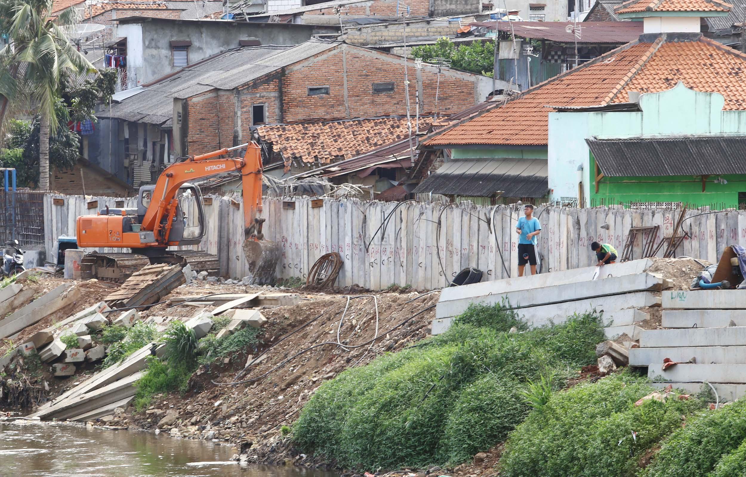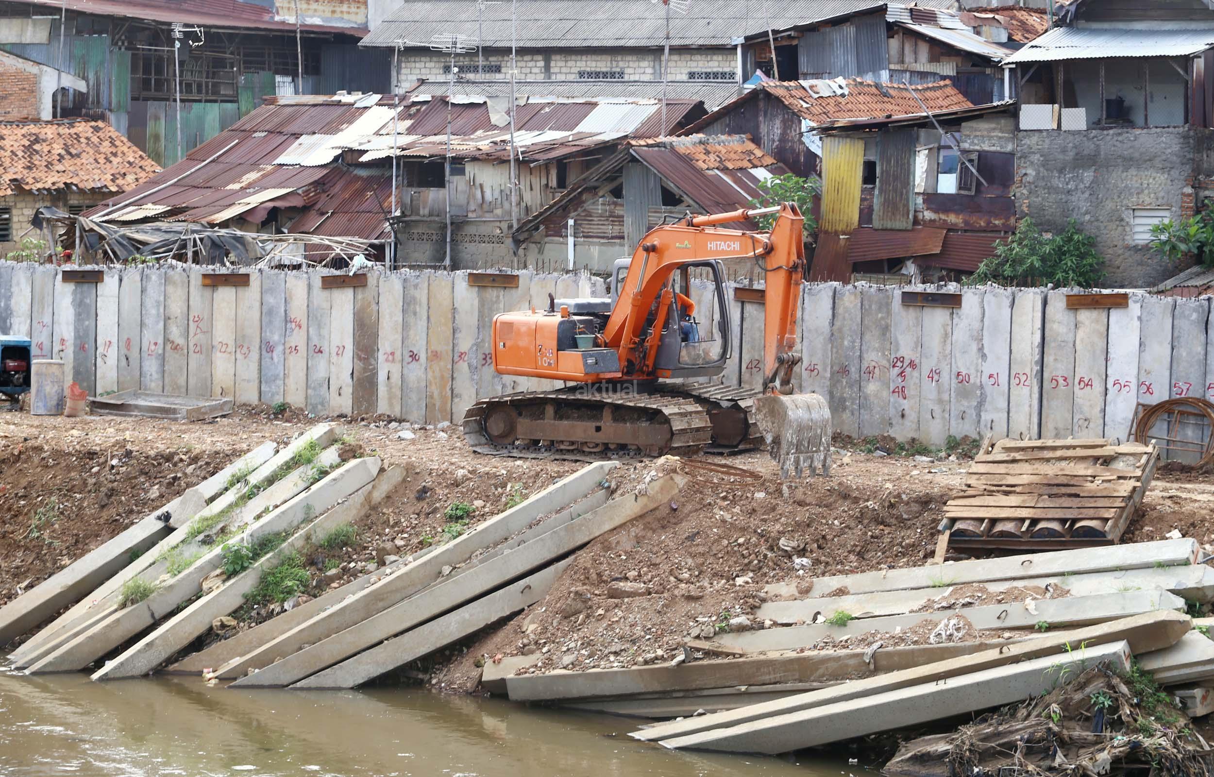 Sejumlah pekerja menyelesaikan proyek jalan inspeksi Sungai Ciliwung di Cililitan Kecil, Jakarta, Jumat (23/12/2016). Pembangunan jalan inspeksi tersebut dilakukan sebagai salah satu solusi mengatasi kemacetan di Ibukota dan normalisasi Sungai Ciliwung. AKTUAL/Munzir