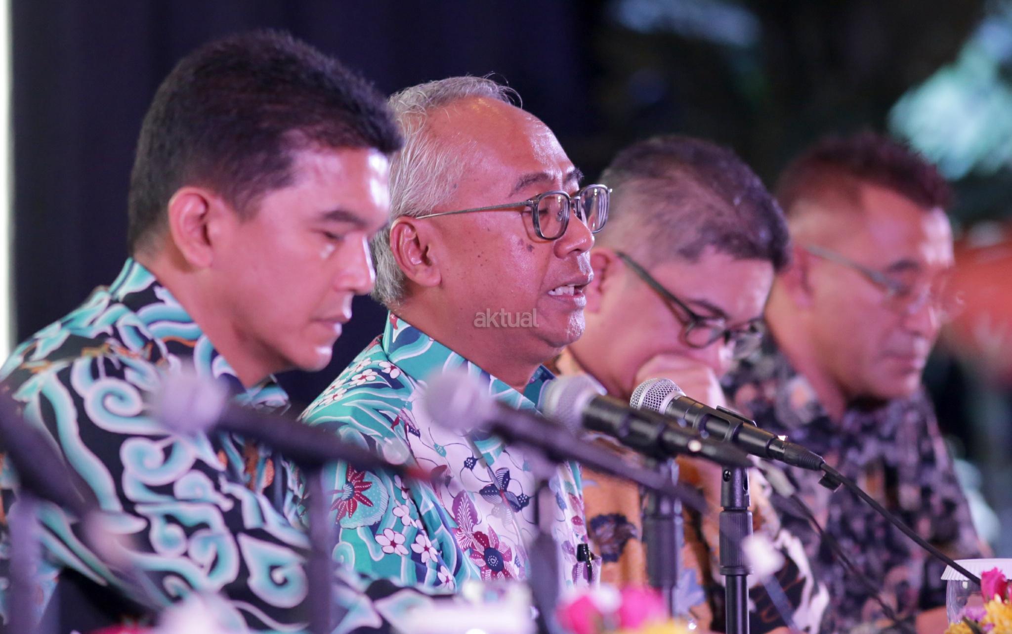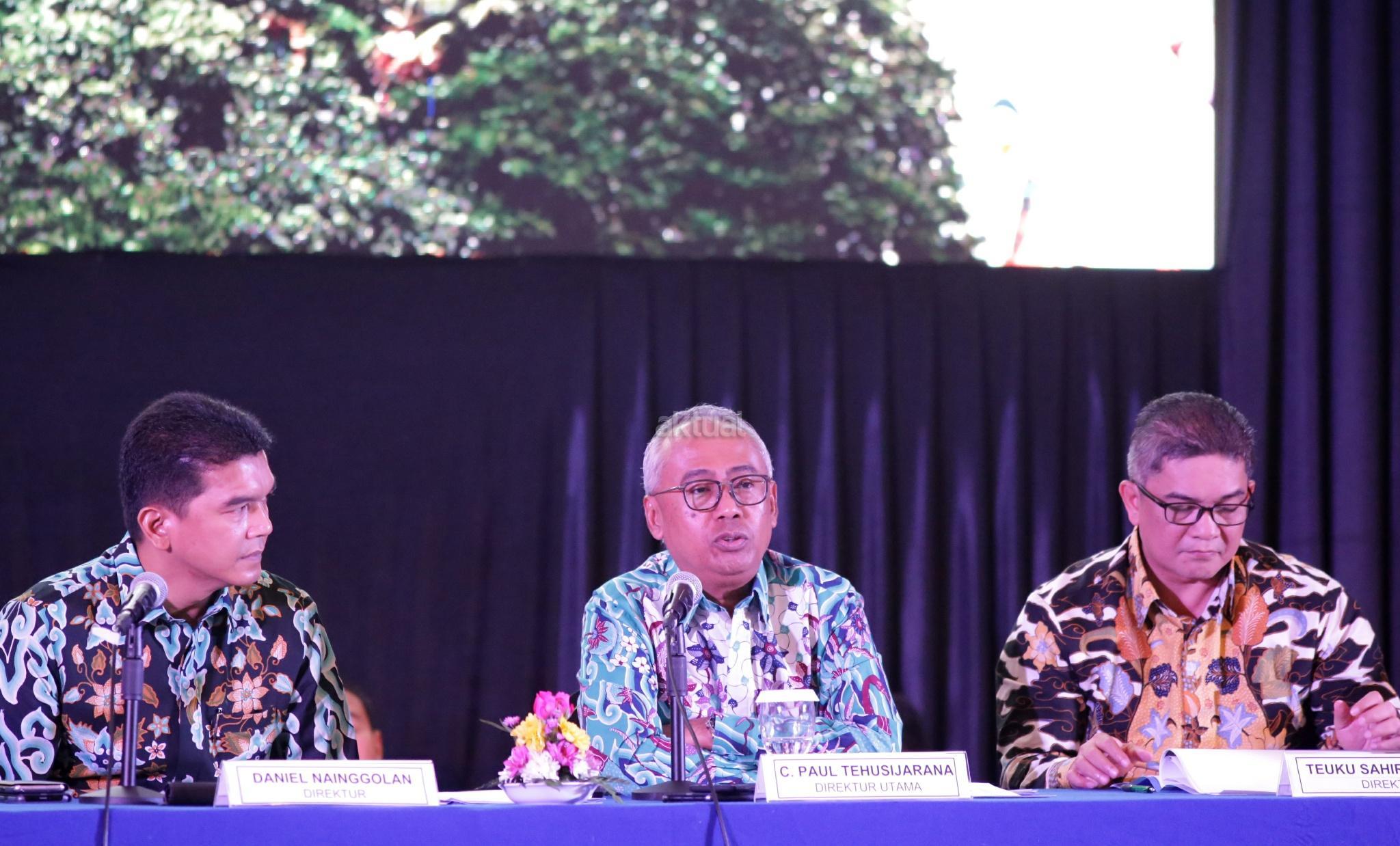 Wakil Direktur Utama PT Pembangunan Jaya Ancol Tbk (PJAA) Teuku Sahir Syahali (kanan) Direktur Utama Paul Tehusijarana (tengah), Direktur Independen Daniel Nainggolan saat konferensi pers usai RUPS PJAA di Jakarta, Senin (14/5/18). Emiten properti dan pengelola kawasan wisata PT Pembangunan Jaya Ancol Tbk. memutuskan untuk membagikan dividen senilai Rp83,2 miliar atau setara 37,78% dari total laba bersih perseroan sepanjang 2017. AKTUAL/Tino Oktaviano