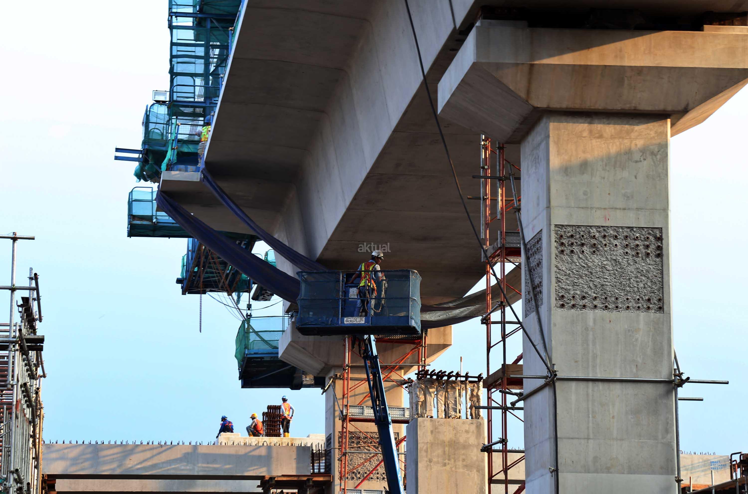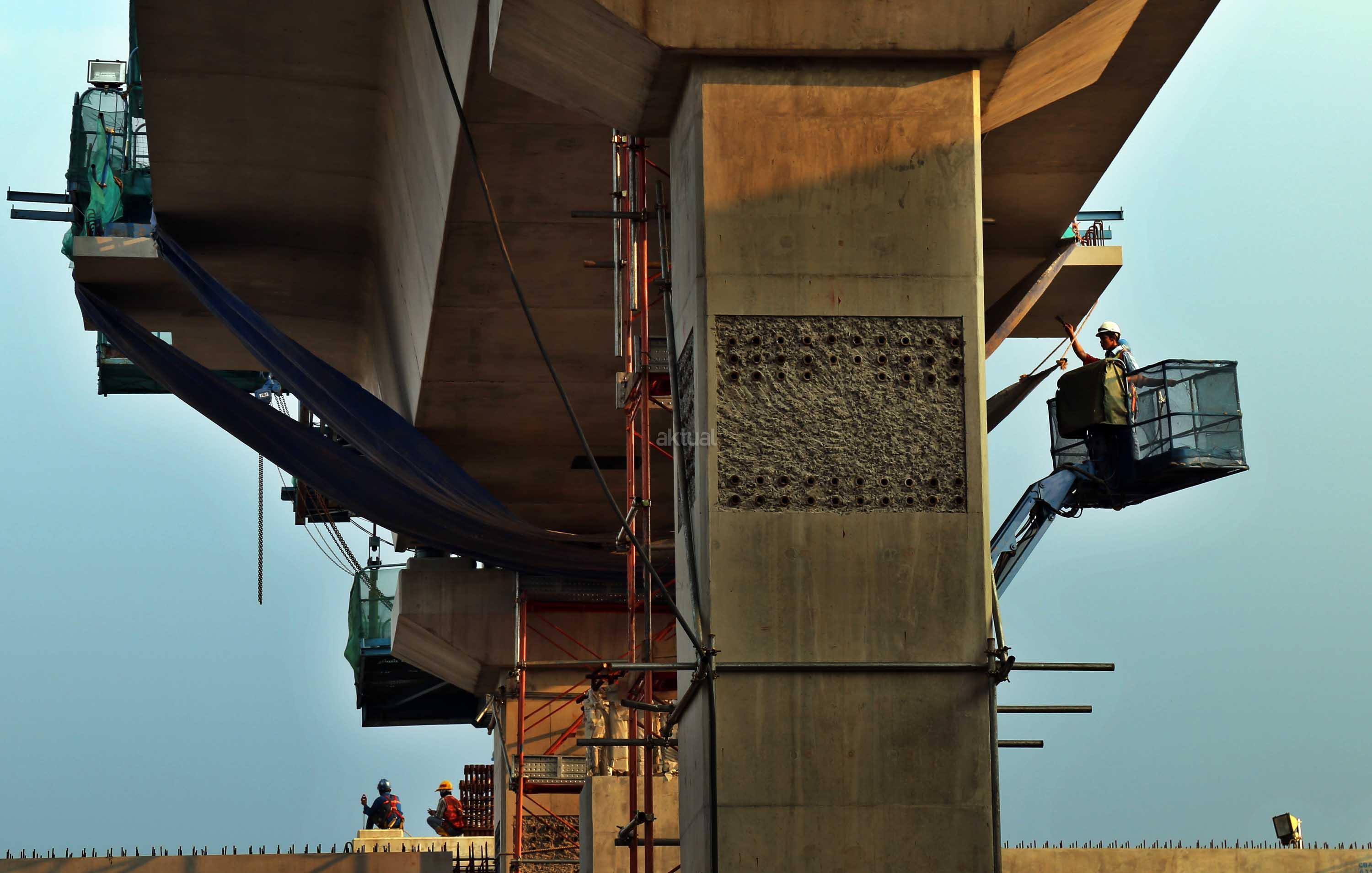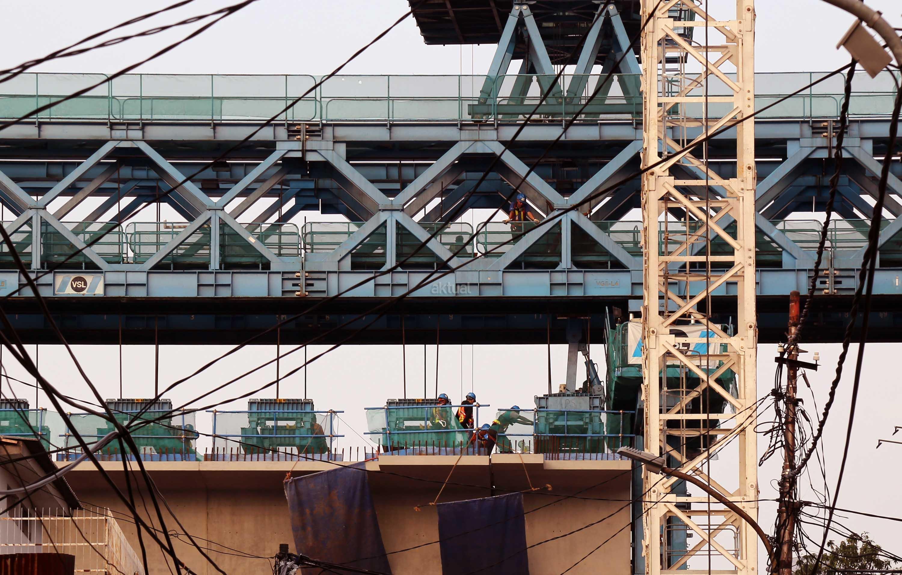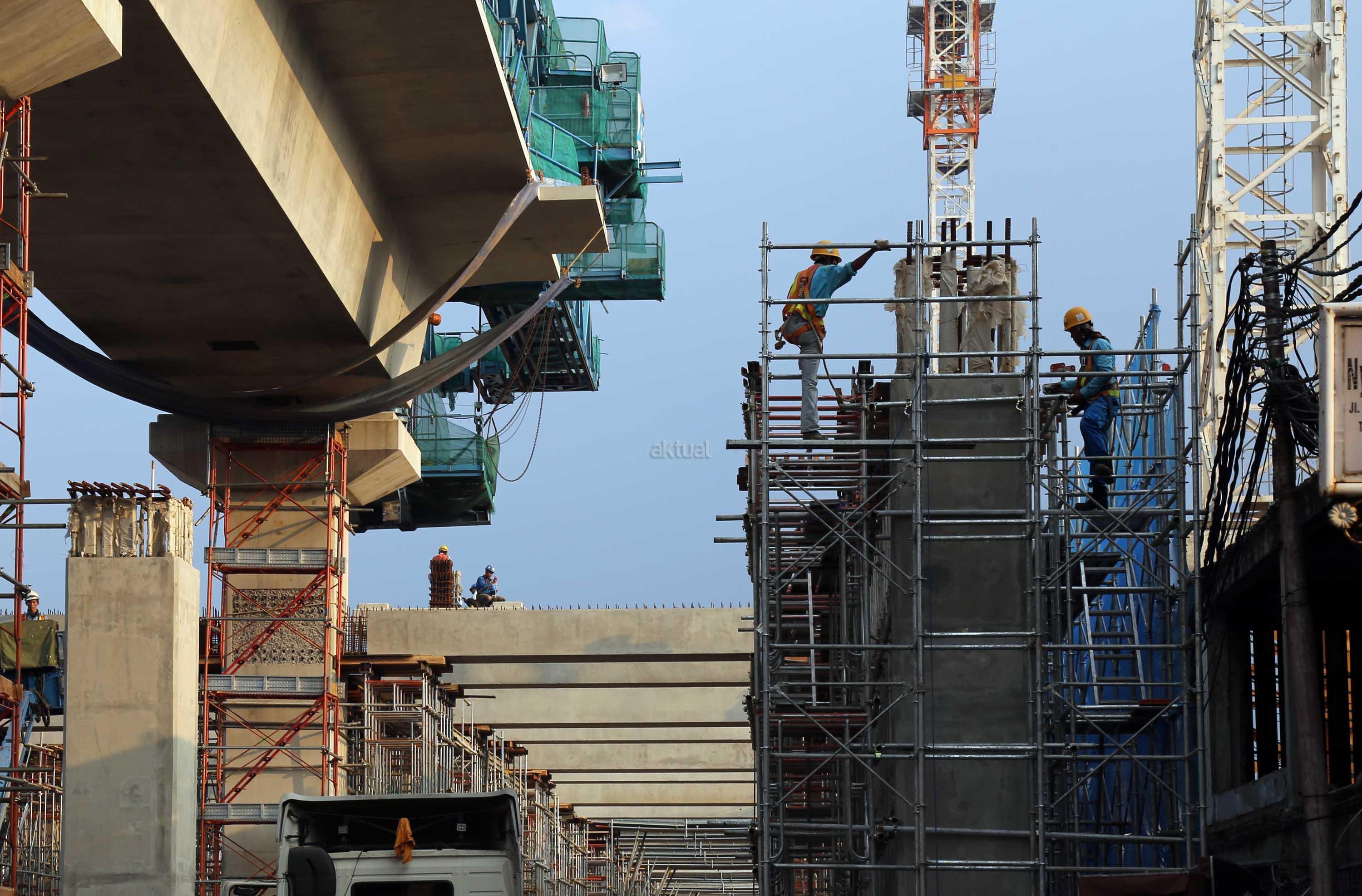 Pekerja menyelesaikan proyek kontruksi konstruksi mass rapid transit (MRT) di jalan Fatmawati, Jakarta Selatan, Sabtu (20/5/2017). Perkembangan pembangunan infrastruktur MRT Jakarta untuk ruas Jl RS Fatmawati, Jl Panglima Polim, sampai Jl Sisingamangaraja telah mencapai 44,90 persen. Proyek ini beroperasi sesuai dengan target, yakni pada bulan Maret 2019. AKTUAL/Tino Oktaviano