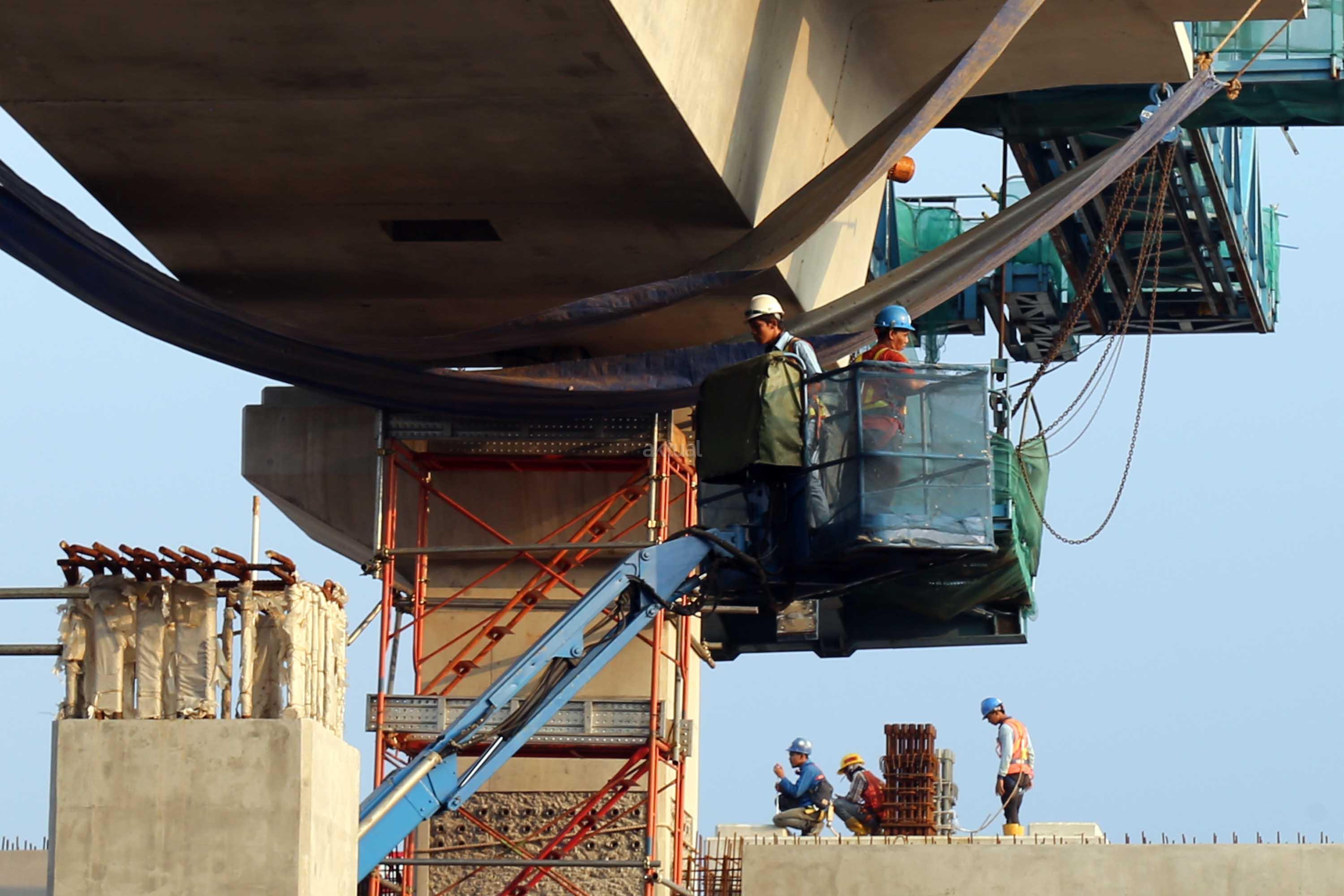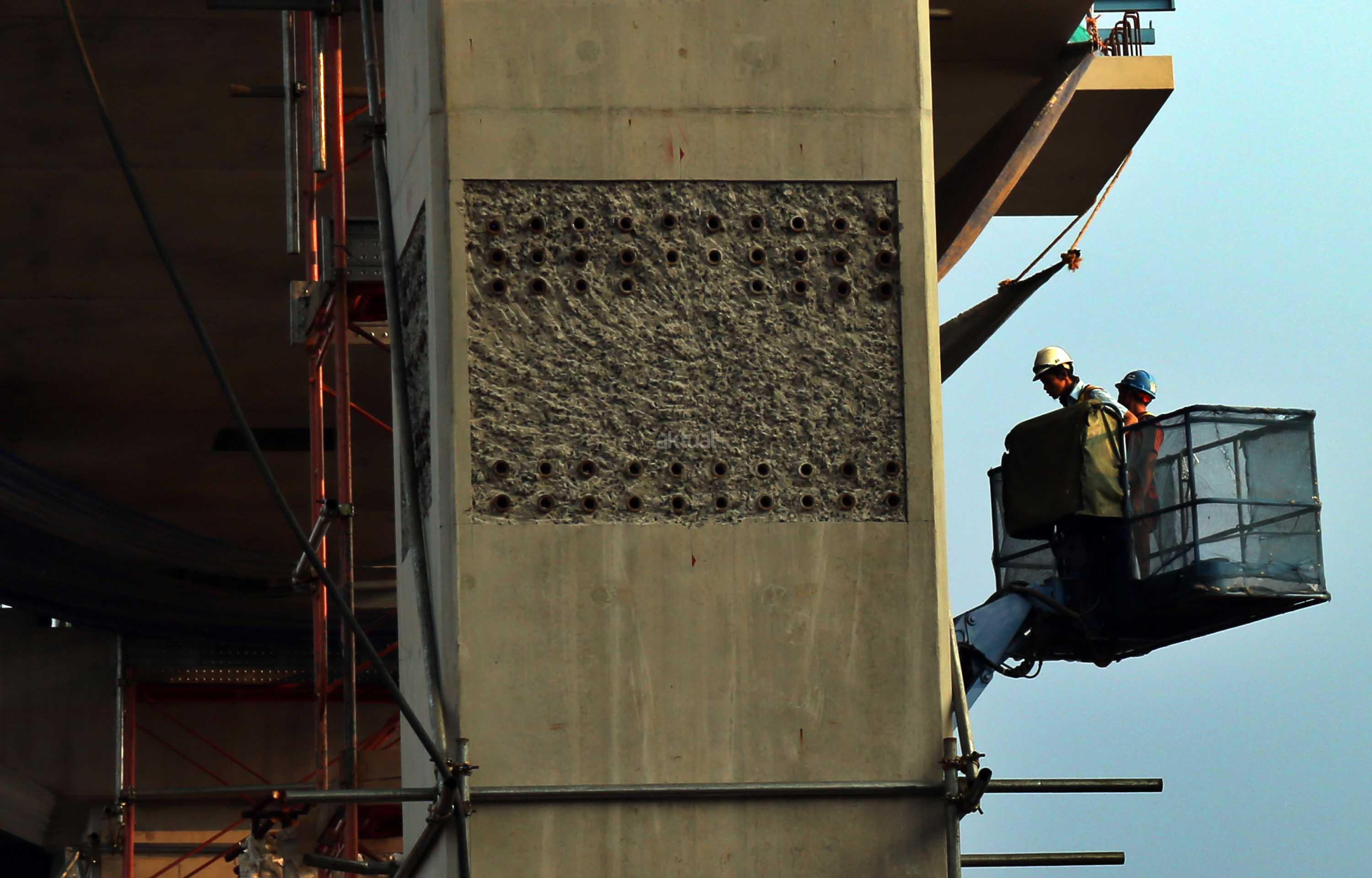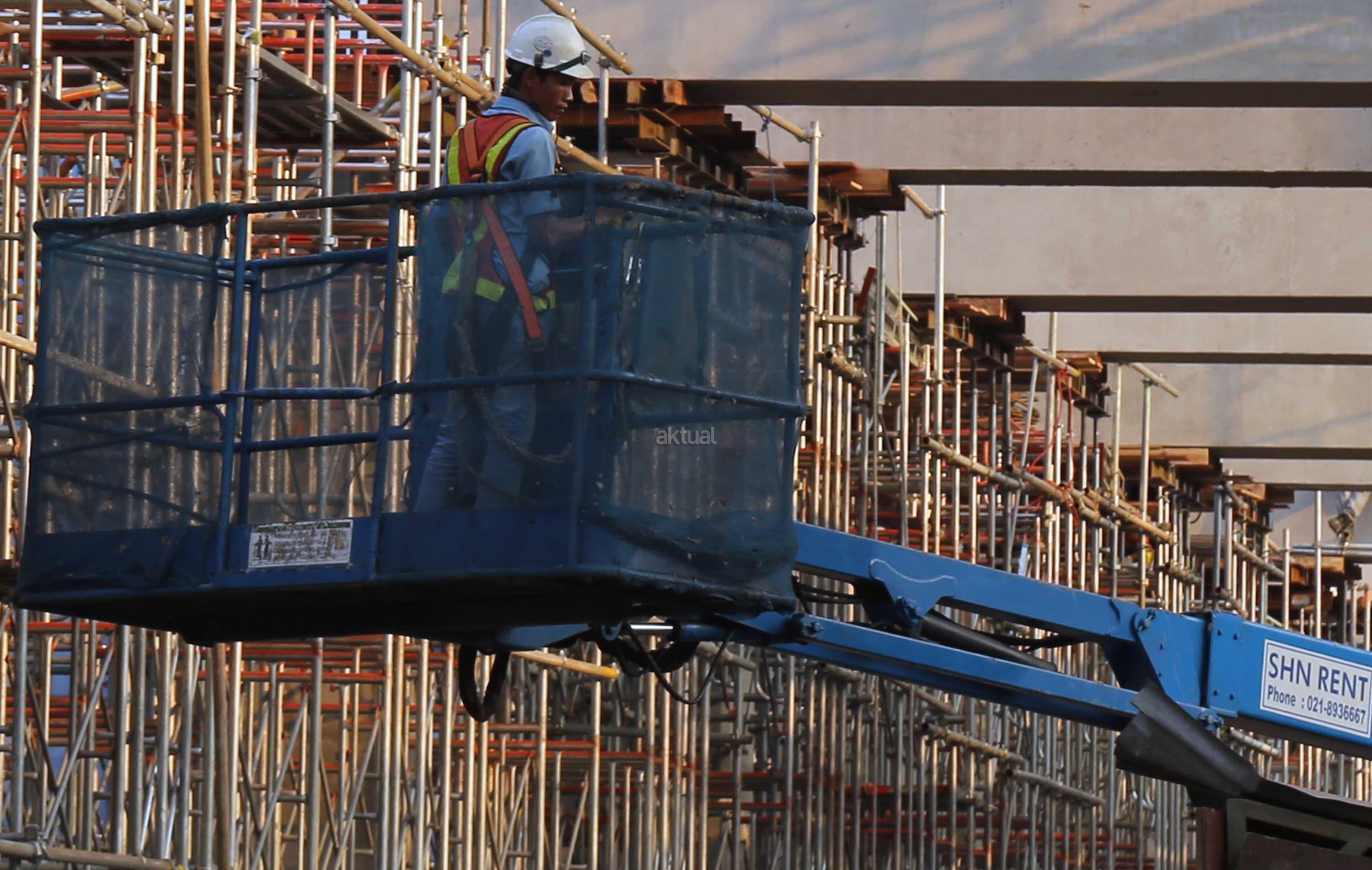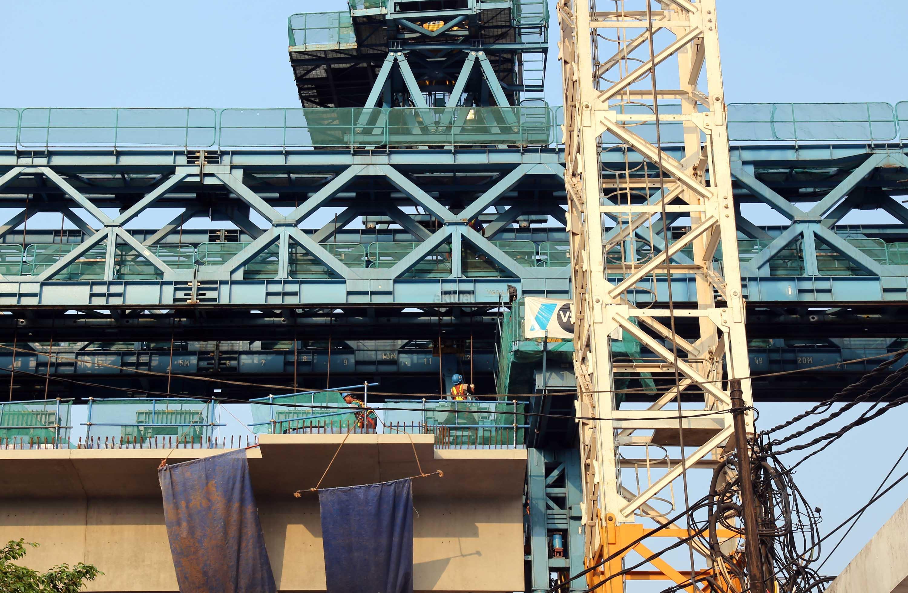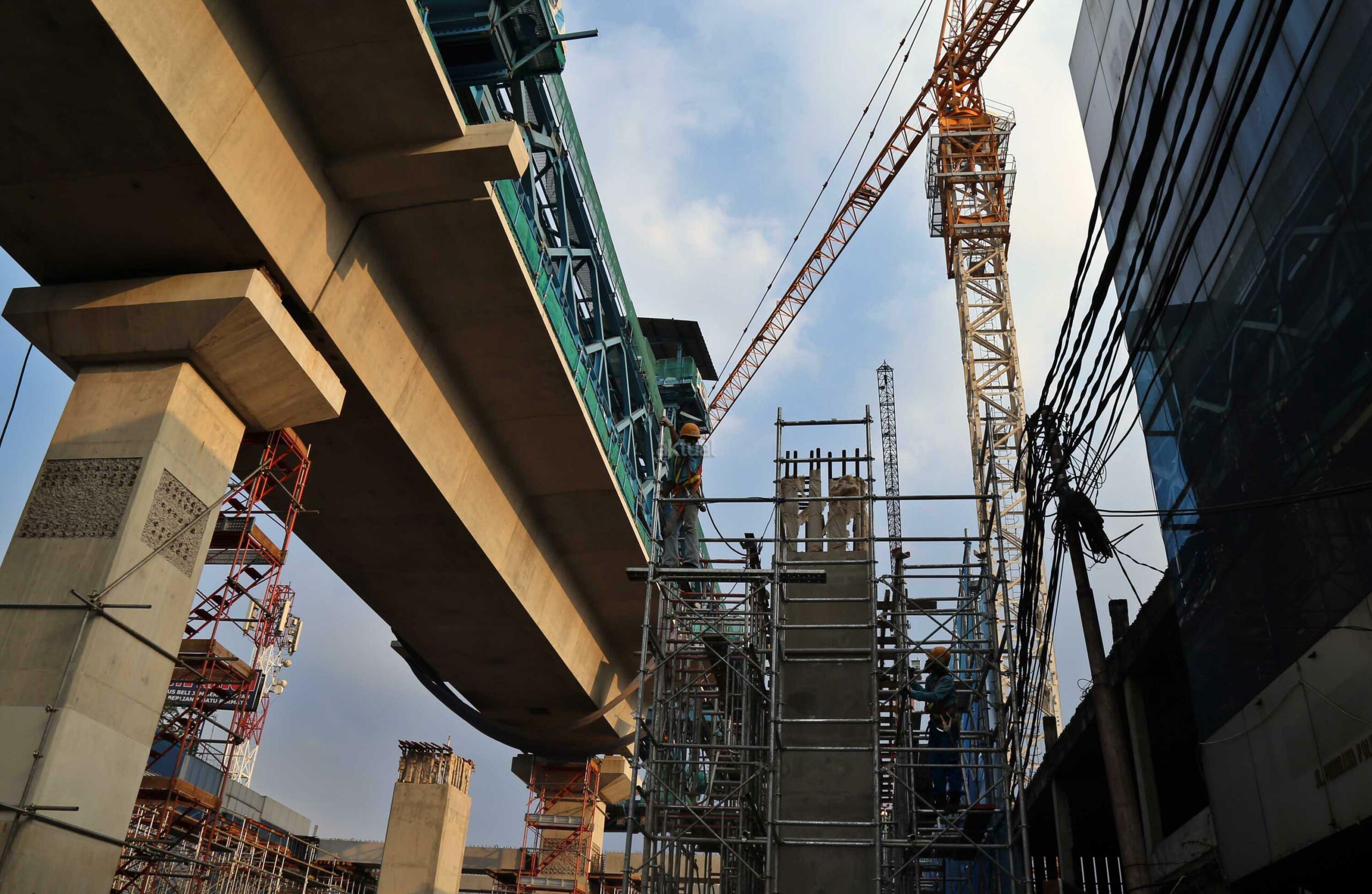 Pekerja menyelesaikan proyek kontruksi konstruksi mass rapid transit (MRT) di jalan Fatmawati, Jakarta Selatan, Sabtu (20/5/2017). Perkembangan pembangunan infrastruktur MRT Jakarta untuk ruas Jl RS Fatmawati, Jl Panglima Polim, sampai Jl Sisingamangaraja telah mencapai 44,90 persen. Proyek ini beroperasi sesuai dengan target, yakni pada bulan Maret 2019. AKTUAL/Tino Oktaviano