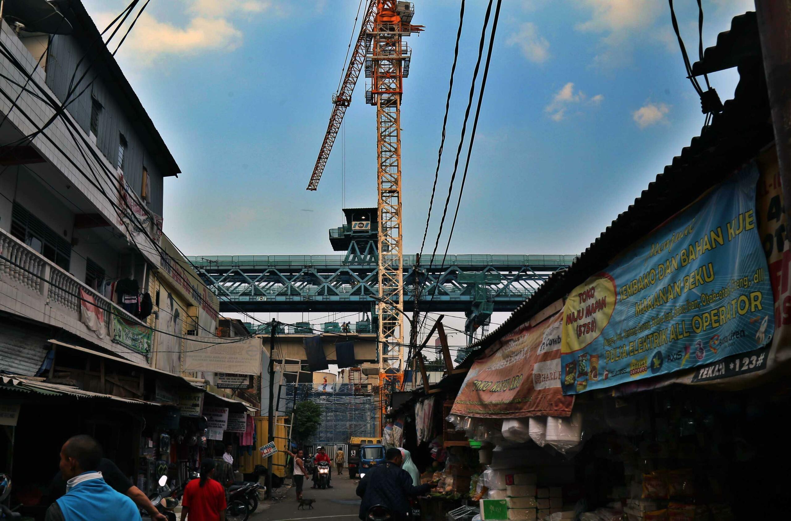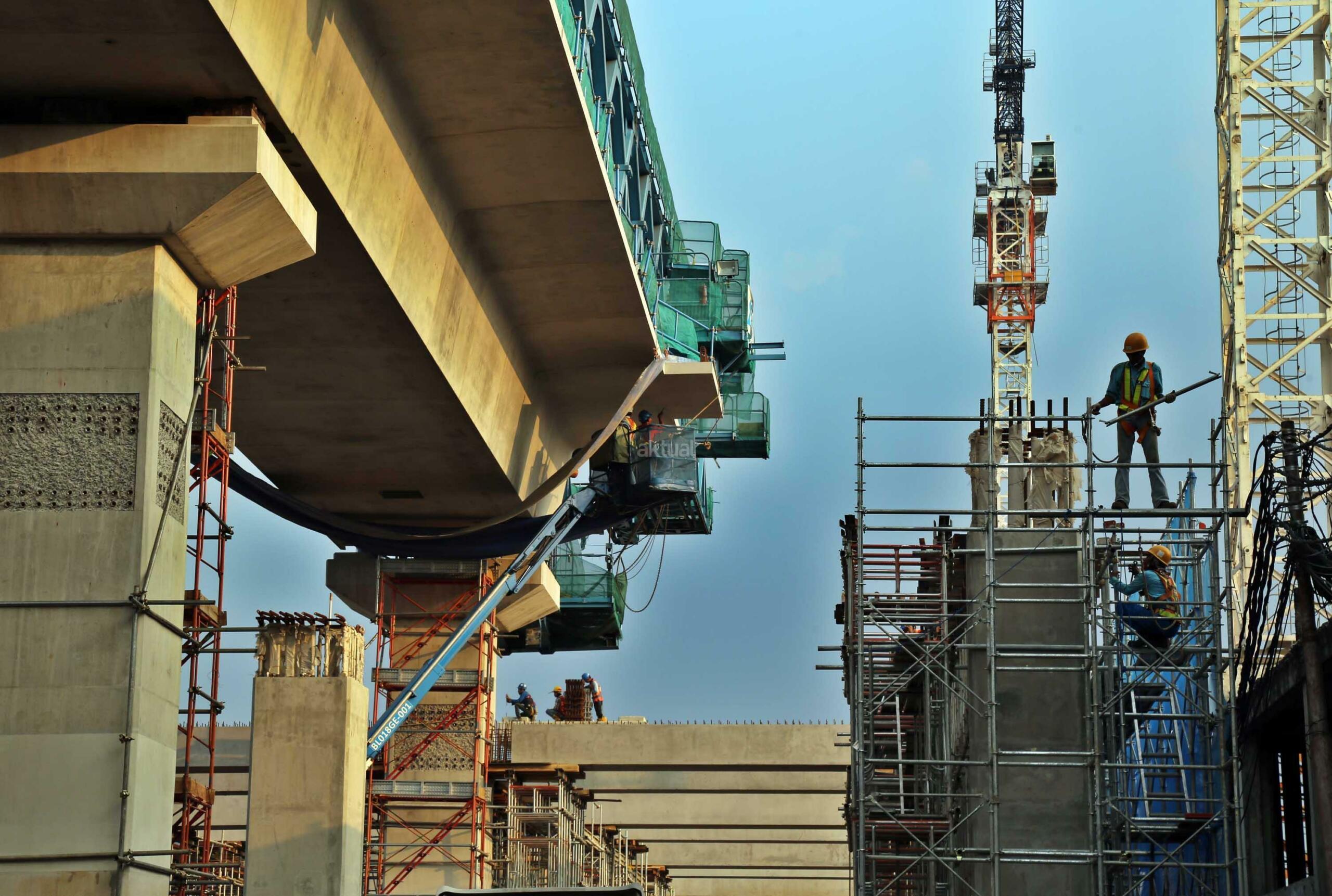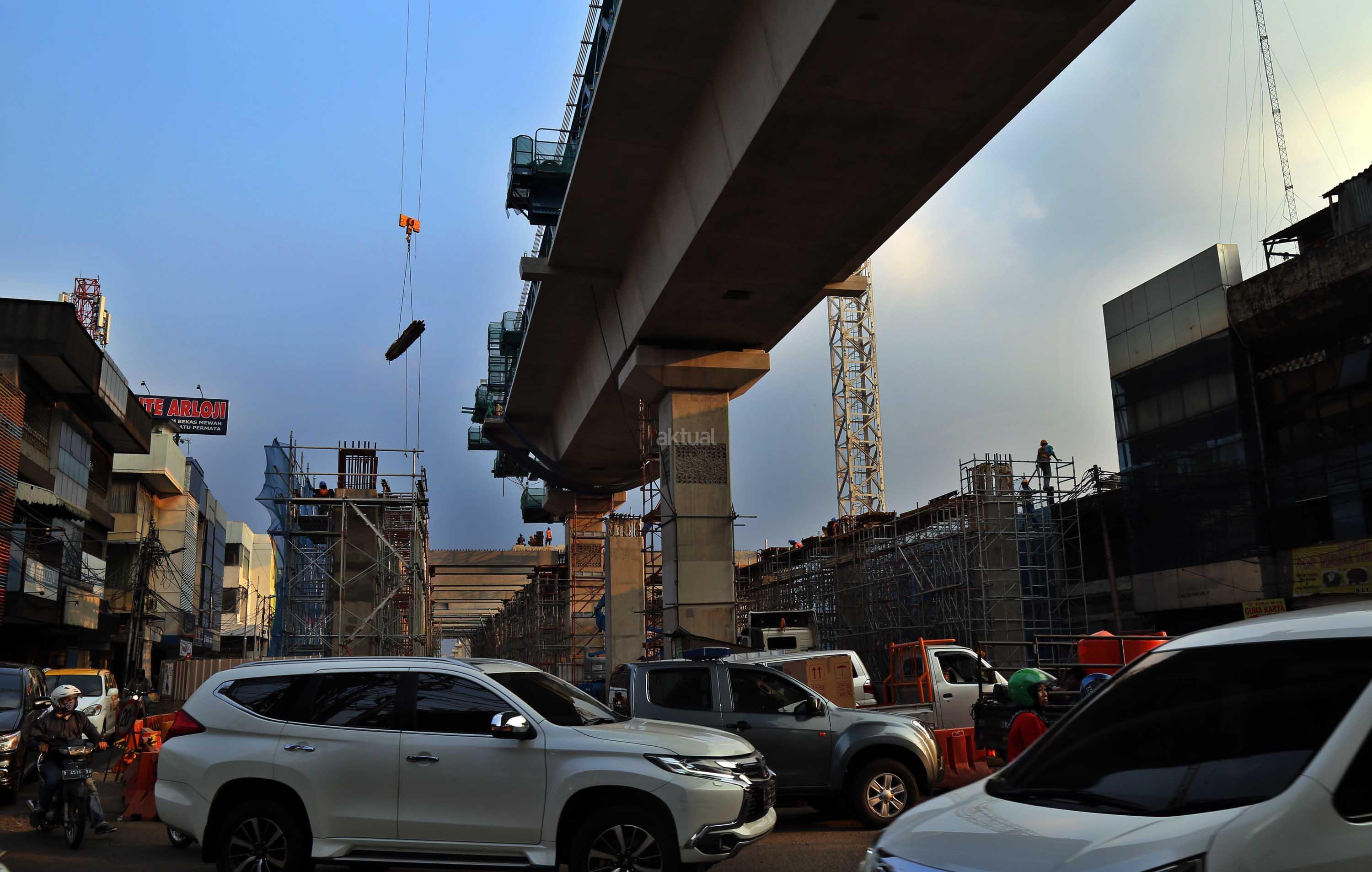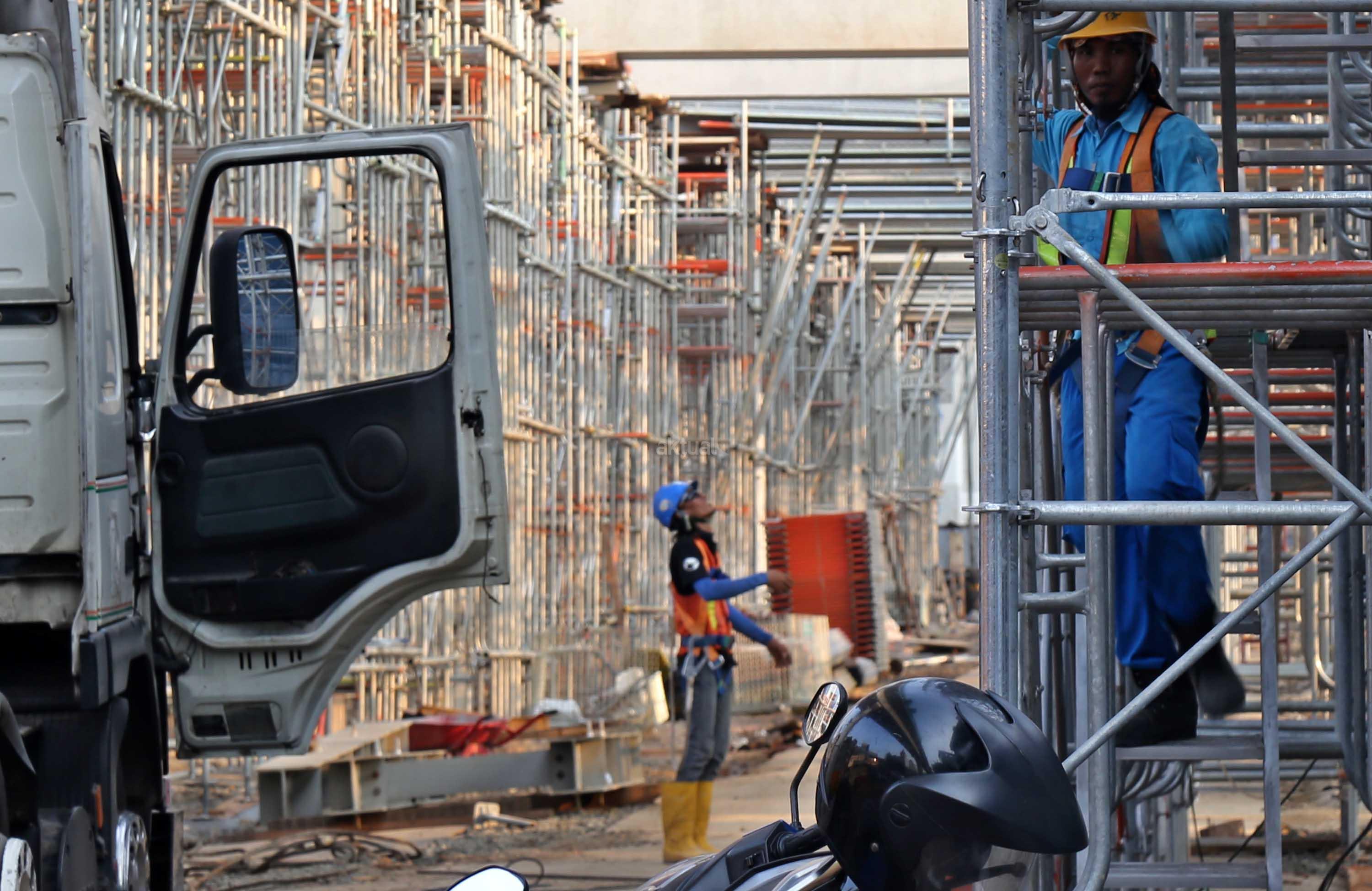 Pekerja menyelesaikan proyek kontruksi konstruksi mass rapid transit (MRT) di jalan Fatmawati, Jakarta Selatan, Sabtu (20/5/2017). Perkembangan pembangunan infrastruktur MRT Jakarta untuk ruas Jl RS Fatmawati, Jl Panglima Polim, sampai Jl Sisingamangaraja telah mencapai 44,90 persen. Proyek ini beroperasi sesuai dengan target, yakni pada bulan Maret 2019. AKTUAL/Tino Oktaviano