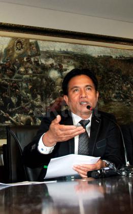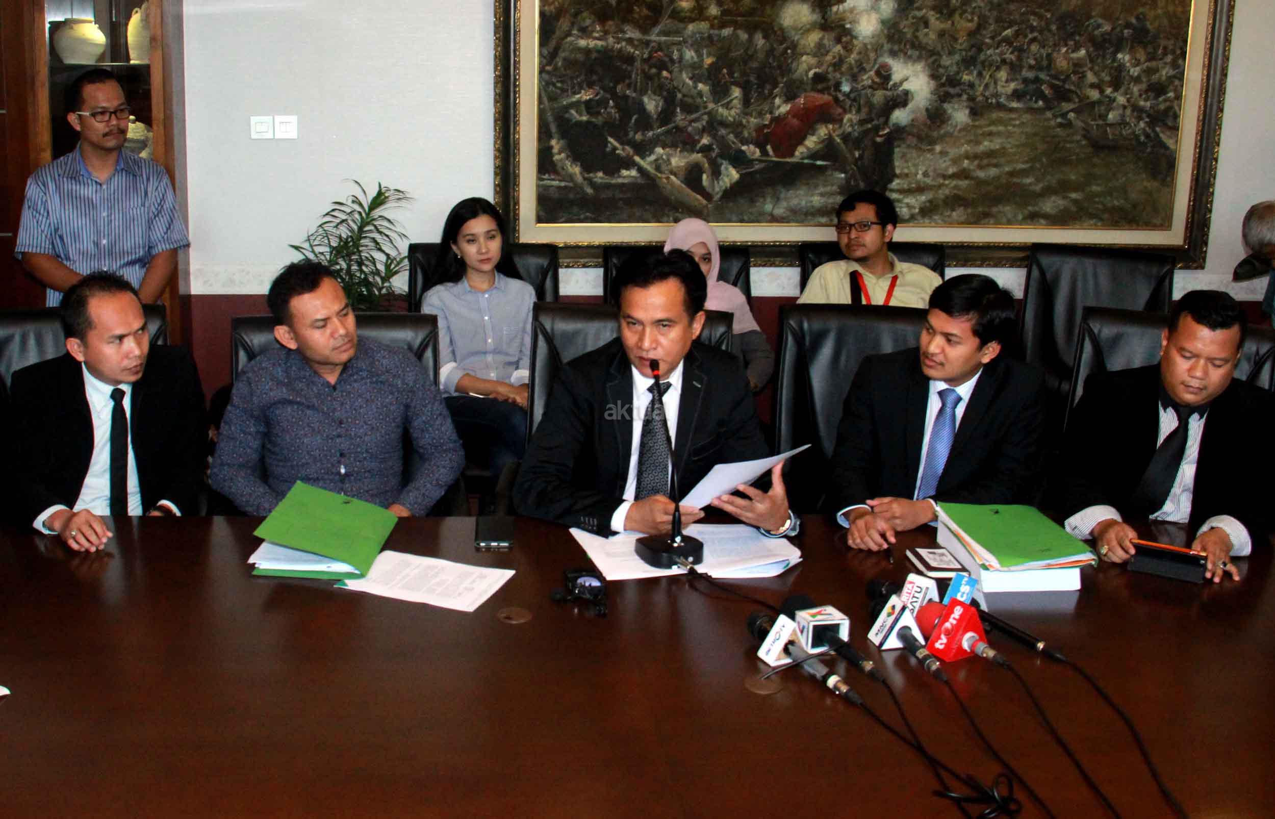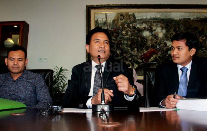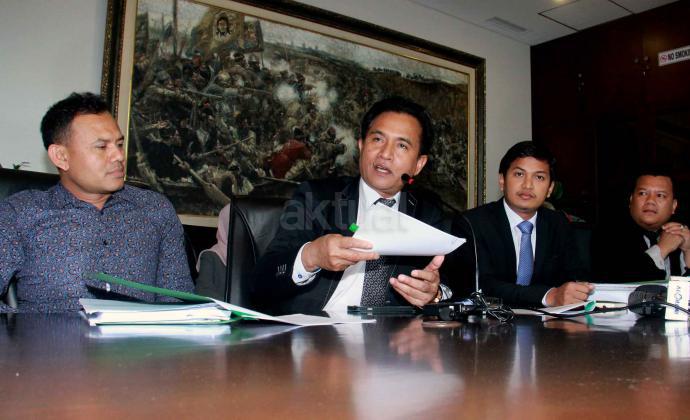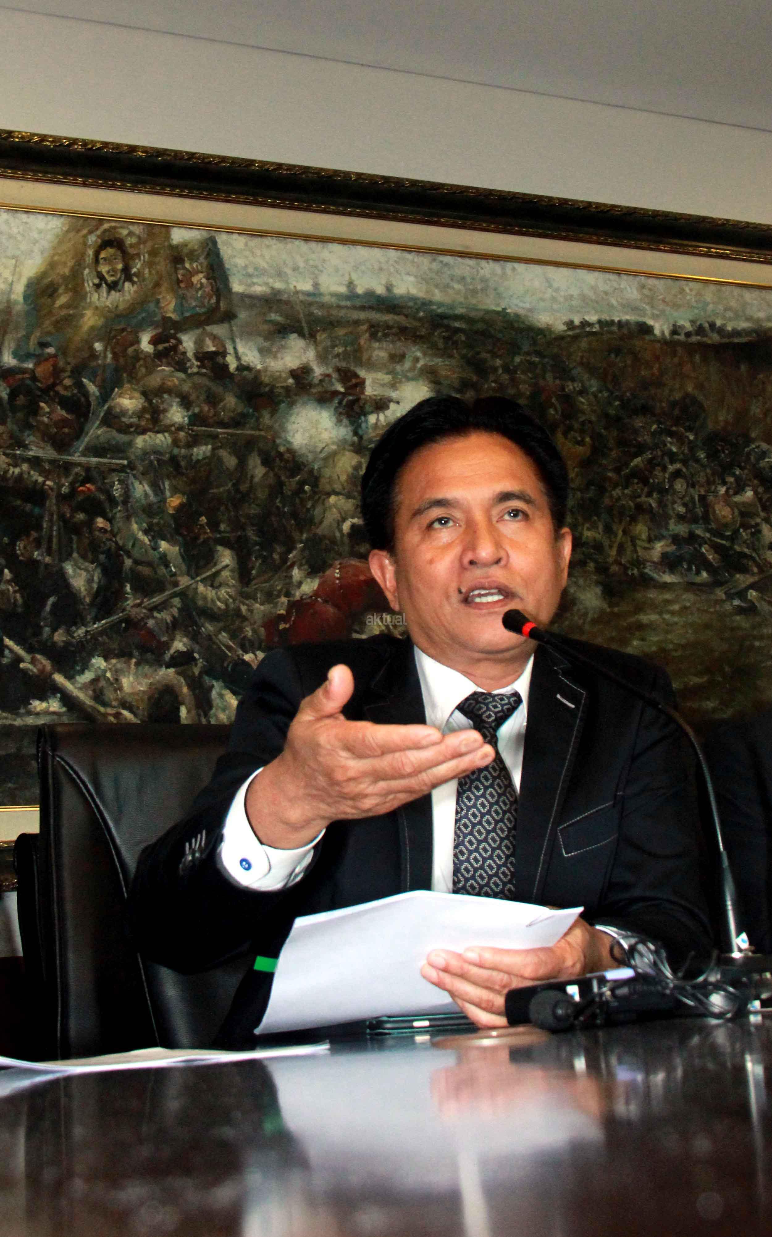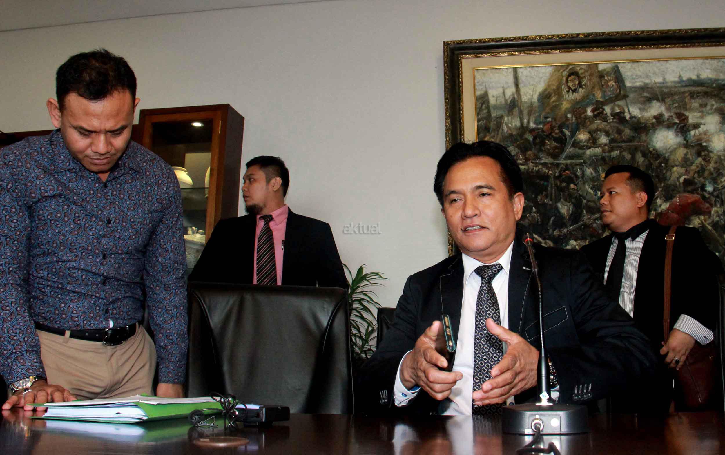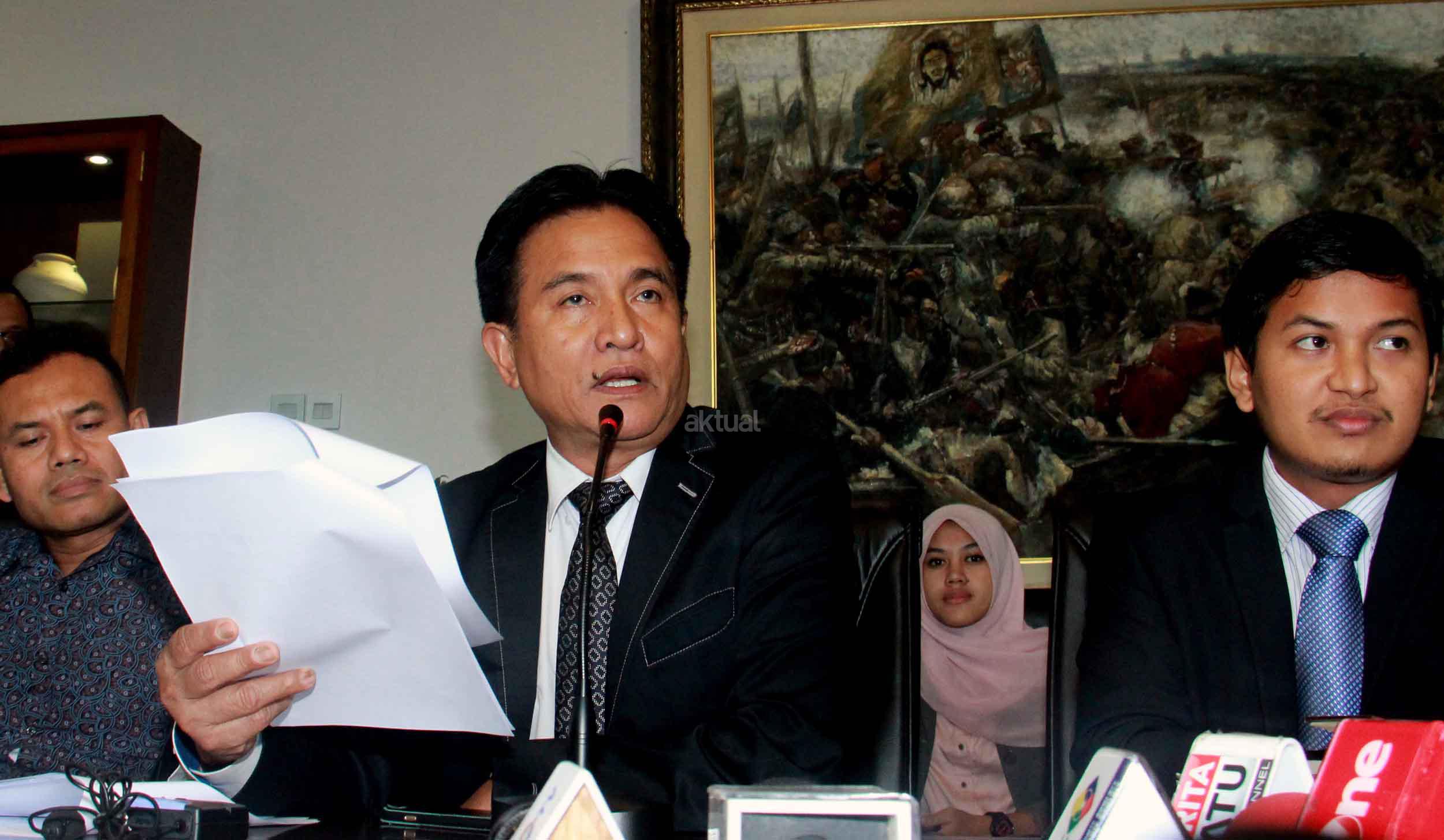 Kuasa Hukum untuk STIE GICI Depok Yusril Ihza Mahendra memberikan keterangan pers terkait informasi pembekuan kampus tersebut oleh Kemenristek Dikti di Jakarta, Senin (5/10/2015). Dalam jumpa pers itu Yusril memberikan klarifikasi dan bantahan sekaligus akan memberikan surat jawaban atas adanya peringatan pembekuan STIE GICI yang dinilainya tanpa dasar hukum yang jelas
