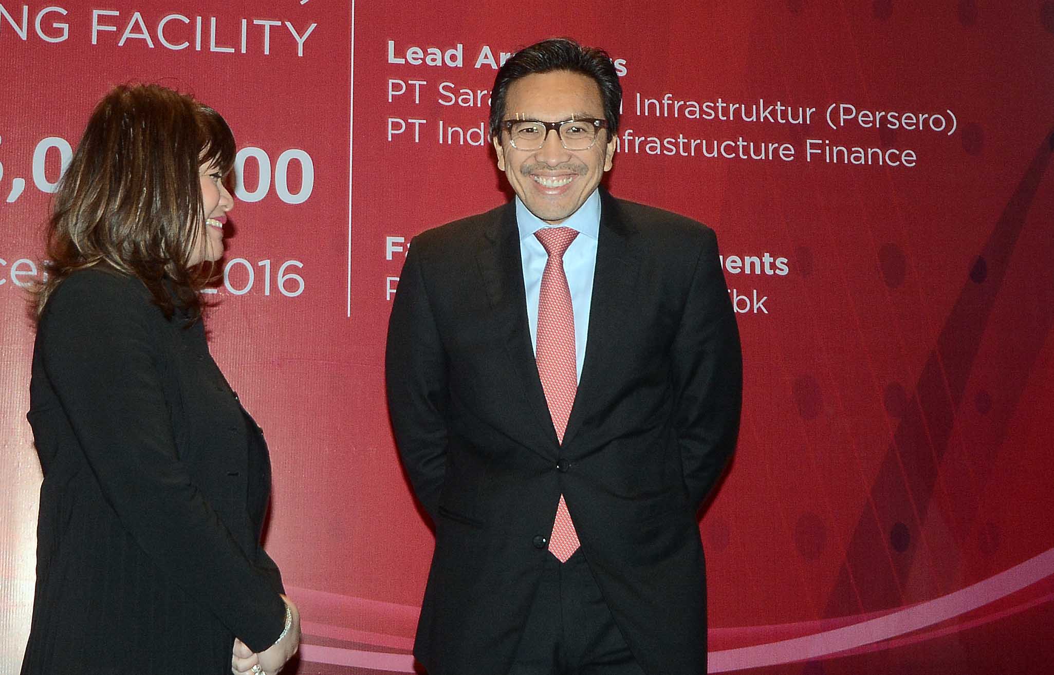 CEO Sintesa Group Shinta Widjaja Kamdani (kiri) berbincang dengan Presdir PT CIMB Niaga Tigor M Siahaan (kanan) seusai acara penandatanganan fasilitas pembiayaan sindikasi PT Bank CIMB Niaga Tbk sebagai Mandated Lead Arrager dan Bookrunner, PT SMI (Sarana Multi Infrastruktur(persero), dan IIF sebagai lead arragers para pihak bersama dengan dana sebesar Rp 1,9 Triliun kepada PT Meppogen di Jakarta, Rabu (7/12/2016). Sindikasi pembiayaan ini dalam rangka mendukung ekspansi PLTGU Gunung Megang dari 110 MW menjadi 150 MW. AKTUAL/Eko Hilman
