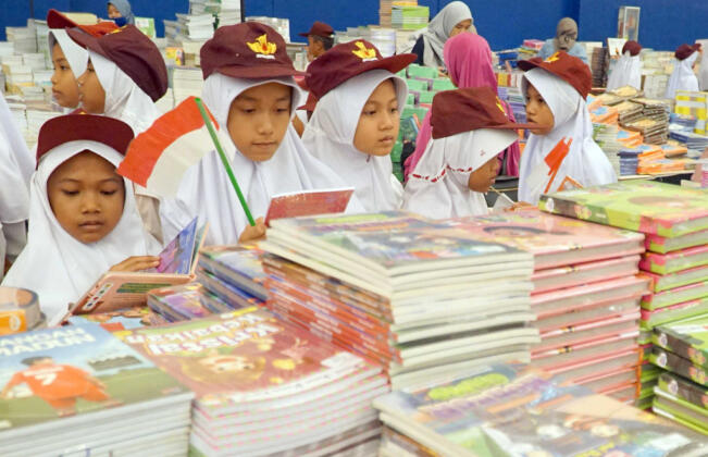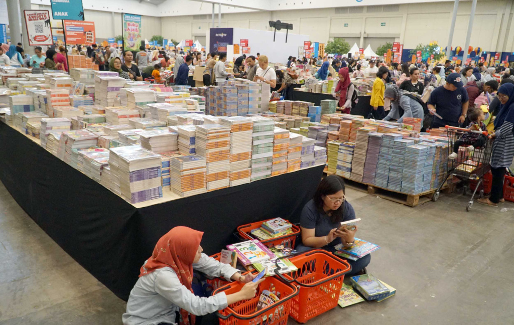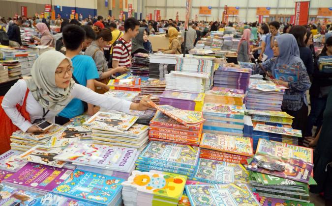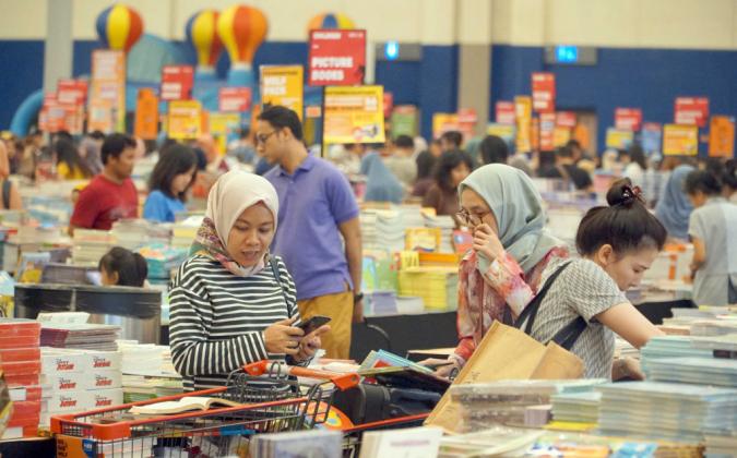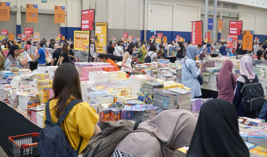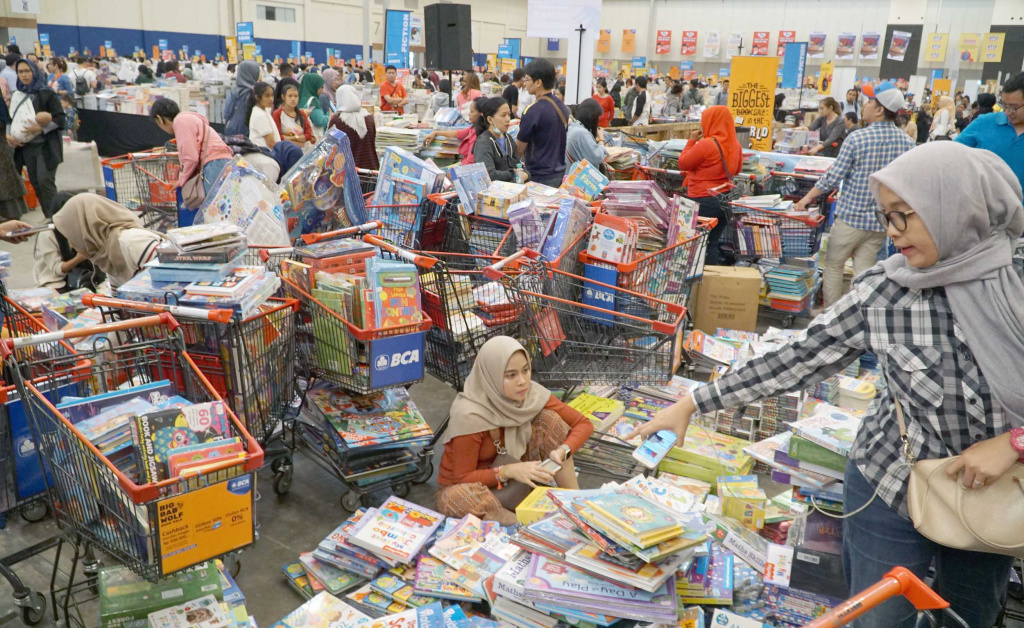 Sejumlah pengunjung memilih beberapa buku saat pembukaan Big Bad Wolf (BBW) 2019 di Tangerang, Kamis (28/2). Pameran ini digelar pada 1 Maret hingga 11 Maret 2019 di ICE BSD, Tangerang untuk umum. AKTUAL/STR-Eko S Hilman