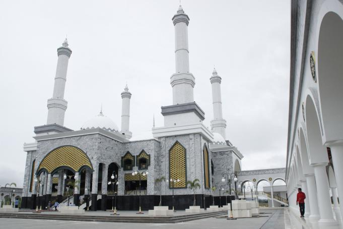 Gedung Islamic Center yang terletak di Mansapa, Nunukan, Kalimantan Utara, Selasa (17/5). Gedung yang diresmikan Gubernur Kaltara, Irianto Lambrie tersebut menelan dana APBD II hingga ratusan miliar rupiah diharapkan dapat menjadi ikon dan tempat kegiatan keagamaan khususnya bagi umat Islam dalam menjaga kerukunan antar umat beragama di wilayah perbatasan RI-Malaysia. ANTARA FOTO/M Rusman/pd/16