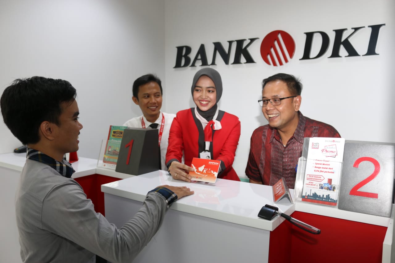 Pemimpin Grup Pengembangan Jaringan Bank DKI, Romy Wijayanto (kanan) berbincang dengan nasabah saat melakukan pembukaan rekening usai melakukan peresmian Kantor Kas Bank DKI Pasar Anyar di Tangerang, Banten, Kamis (20/12). Pada hari yang sama, Bank DKI juga membuka kantor layanan setingkat kantor kas di Mall Ambassador, Rusun Rawa Buaya dan Rusun KS Tubun. Sampai dengan 20 Desember 2018, jumlah kantor Bank DKI yang ada di pasar menjadi sebanyak 85 kantor layanan dari total 288 Kantor Layanan yang dimiliki Bank DKI. AKTUAL/Dok Bank DKI