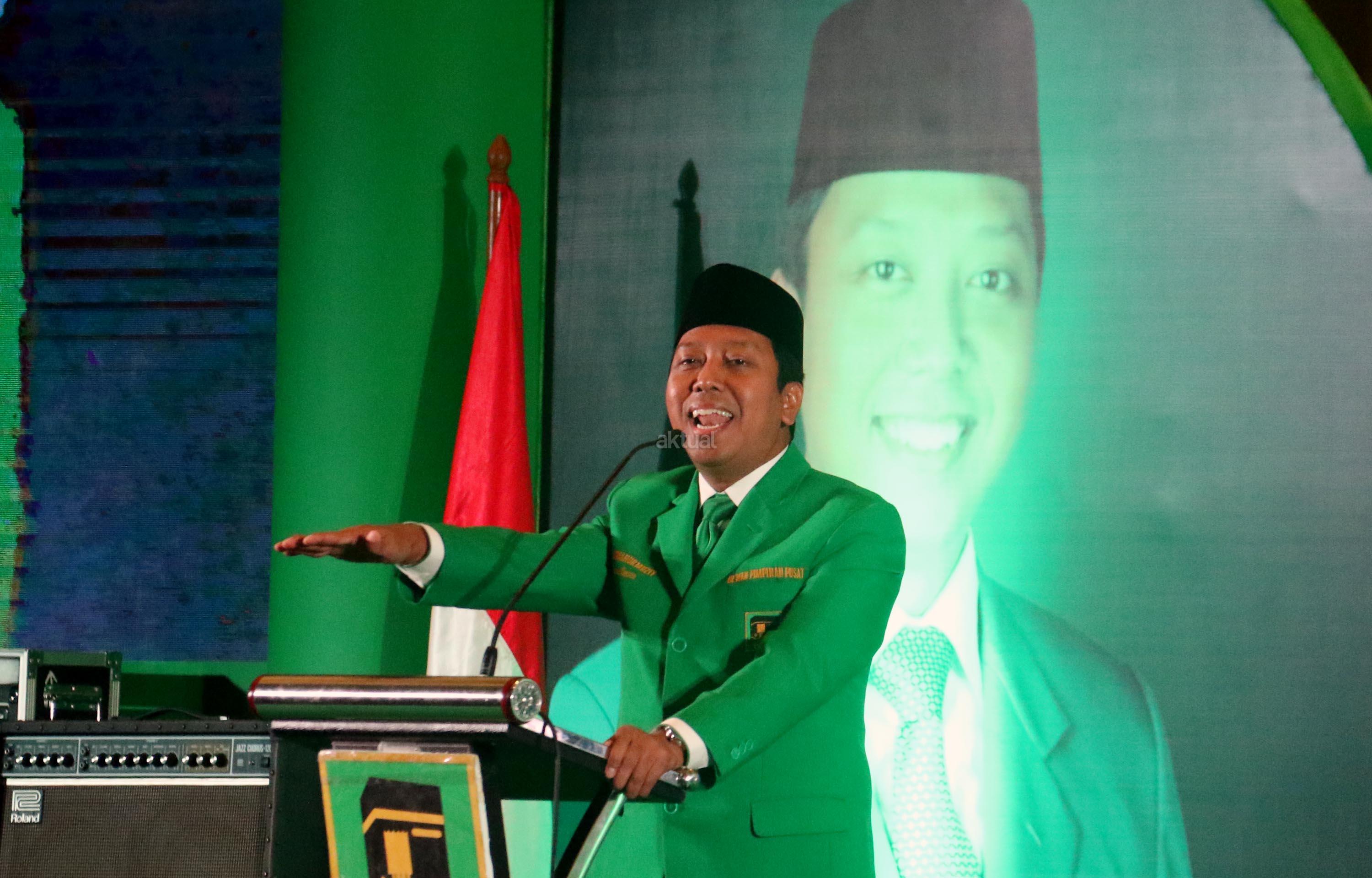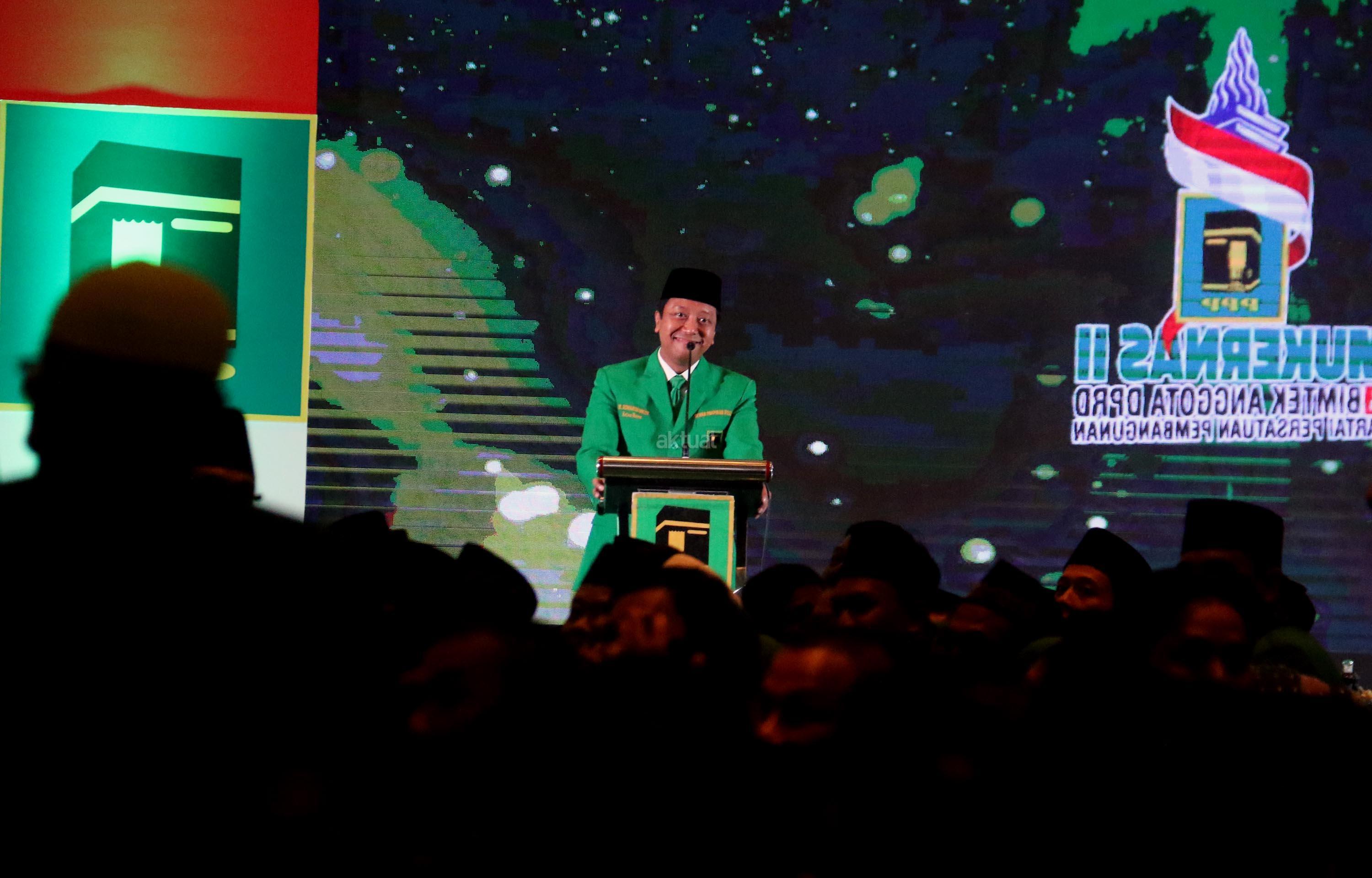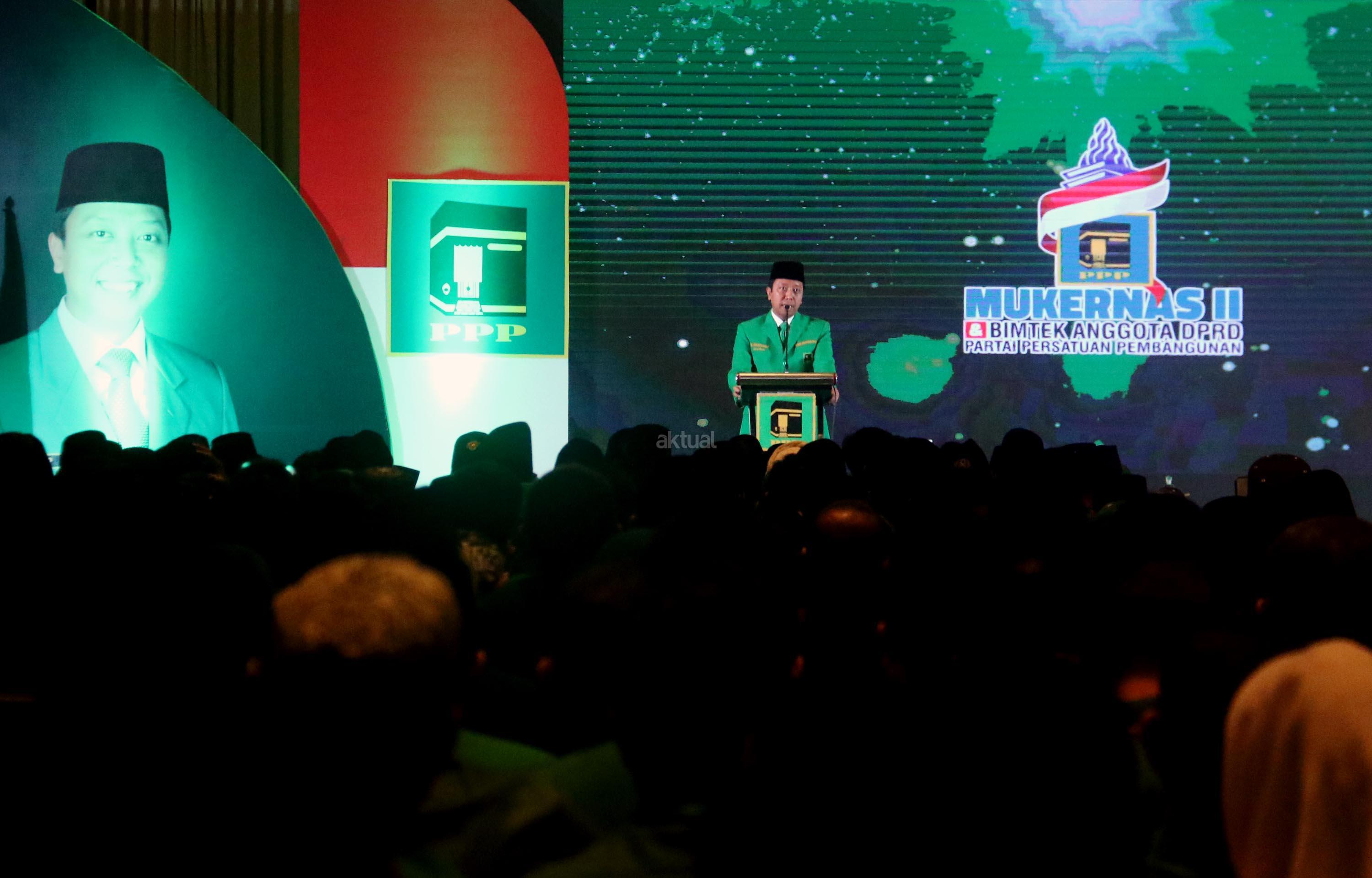 Ketua Umum Partai Persatuan Pembangunan (PPP) Romahurmuziy memberikan sambutannya dan sekaligus membuka Mukernas II Bimtek Anggota DPRD PPP di Jakarta, Rabu (19/7/2017), malam. Dalam Mukernas tersebut sebanyak 34 DPW PPP se-Indonesia akan menyampaikan pandangan secara umum terkait sikap politik maupun situasi politik terkini serta konsolidasi organisasi dan membahas persiapan pemilu serentak 2019 dan pelaksanaan Pemilukada 2018. AKTUAL/Munzir