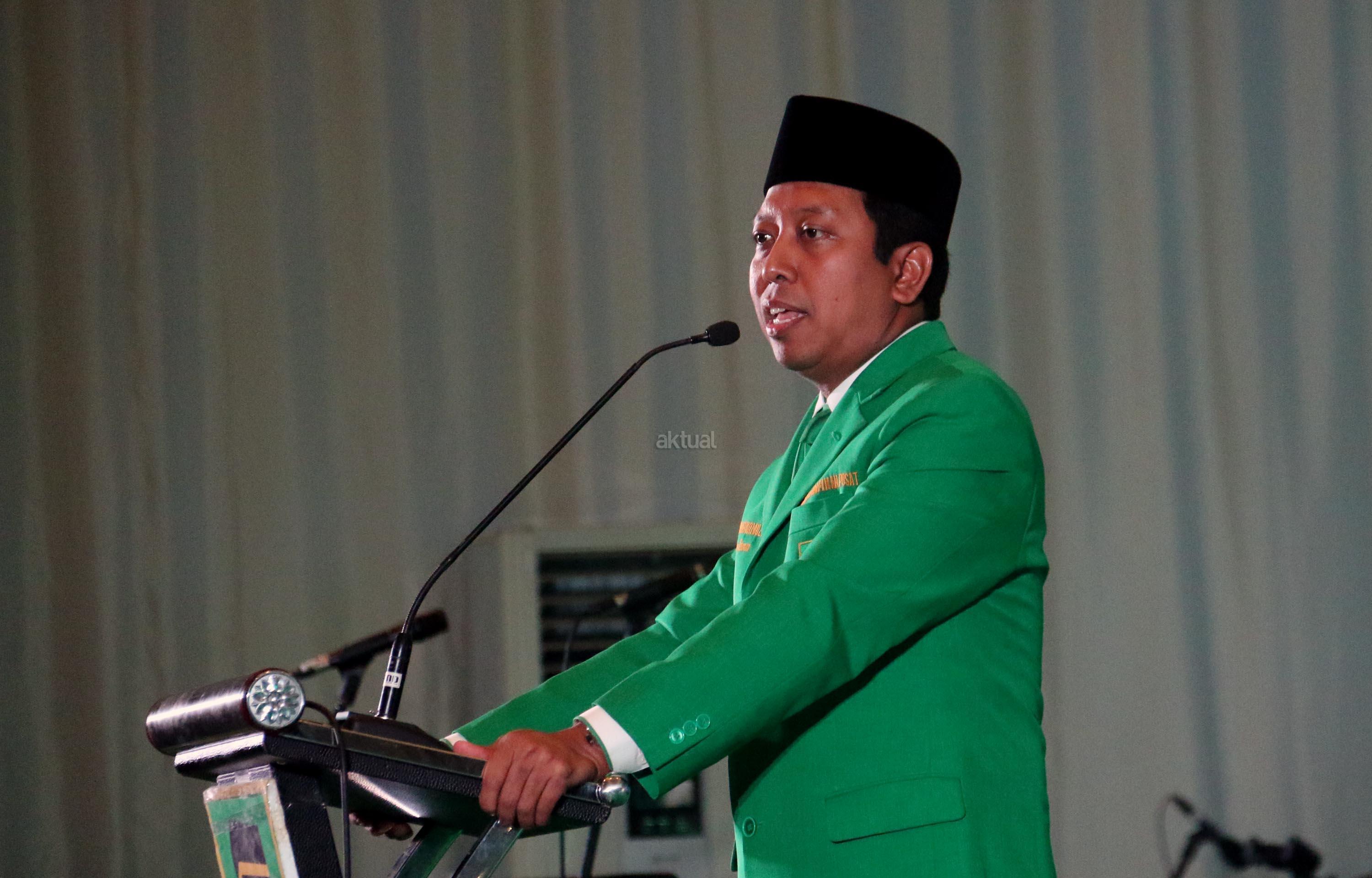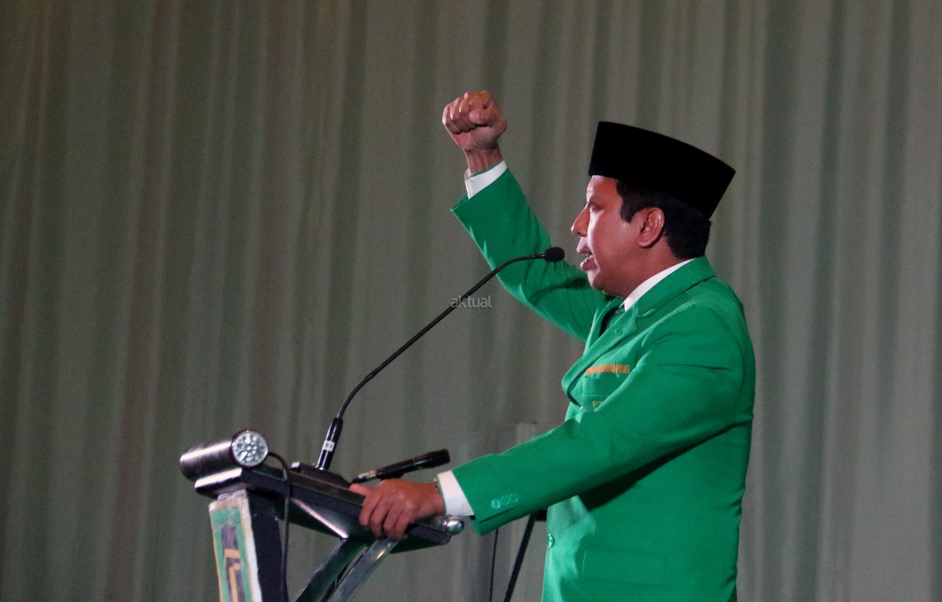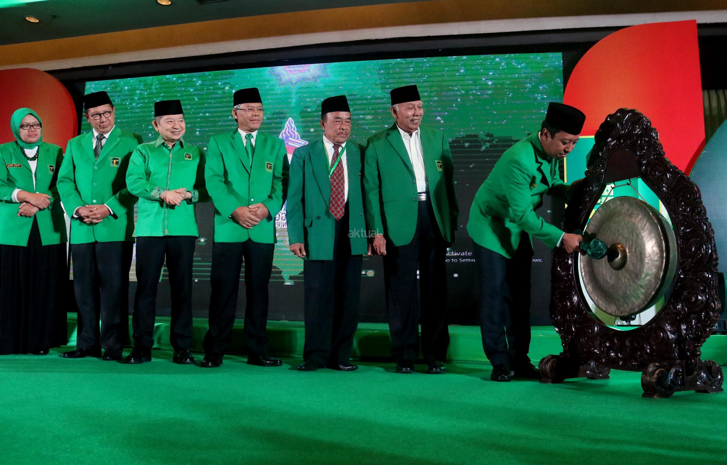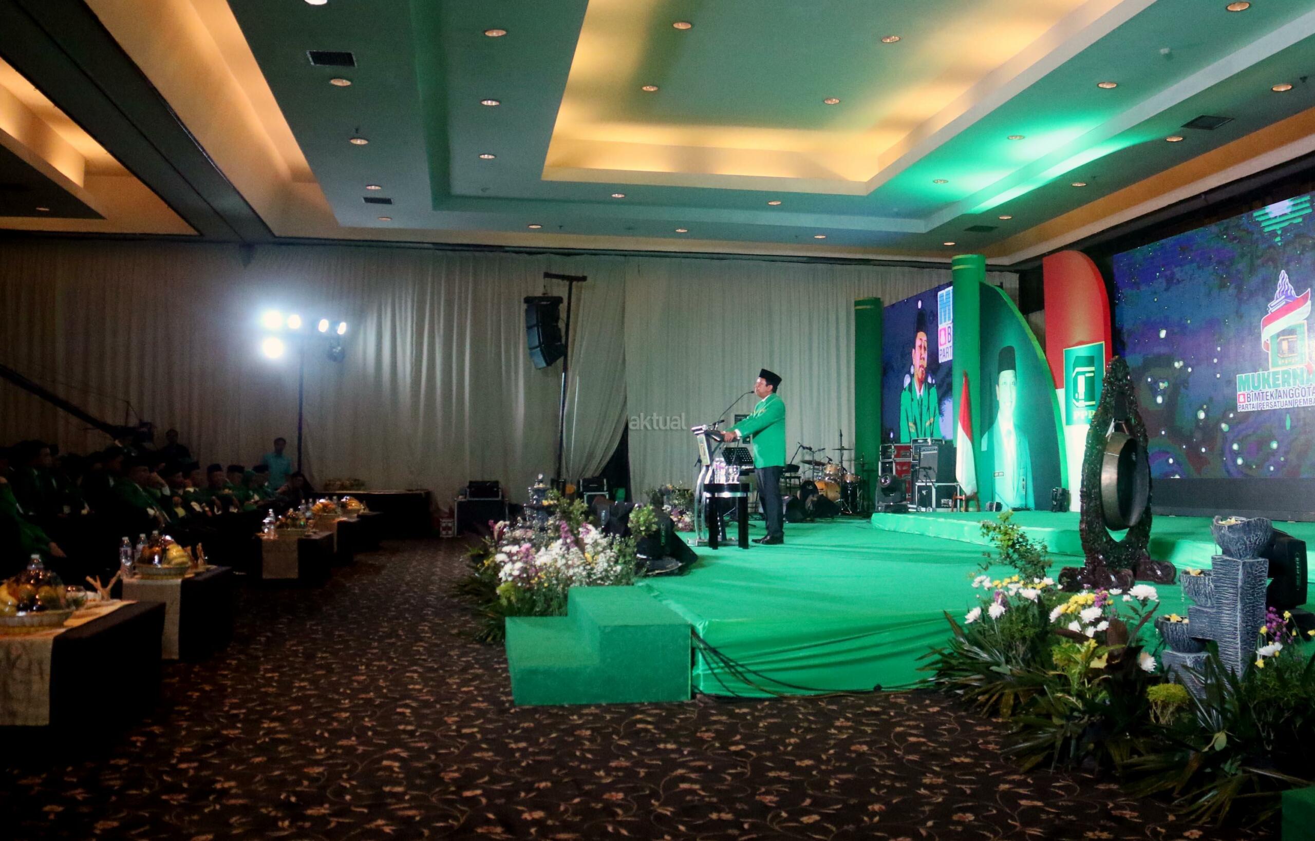 Ketua Umum Partai Persatuan Pembangunan (PPP) Romahurmuziy memberikan sambutannya dan sekaligus membuka Mukernas II Bimtek Anggota DPRD PPP di Jakarta, Rabu (19/7/2017), malam. Dalam Mukernas tersebut sebanyak 34 DPW PPP se-Indonesia akan menyampaikan pandangan secara umum terkait sikap politik maupun situasi politik terkini serta konsolidasi organisasi dan membahas persiapan pemilu serentak 2019 dan pelaksanaan Pemilukada 2018. AKTUAL/Munzir