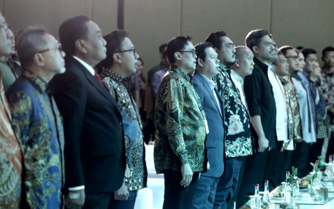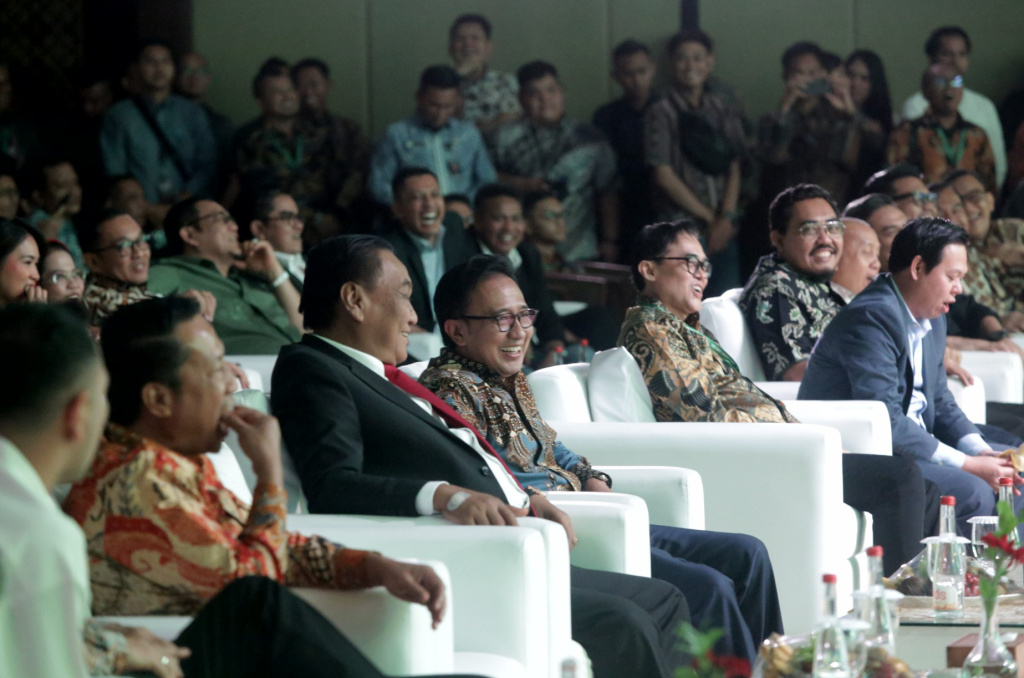 Sejumlah undangan diantaranya menteri dan anggota DPR saat menghadiri munas Dewan Koperasi Indonesia (Dekopin) di Jakarta, Jum'at (27/12/2024).