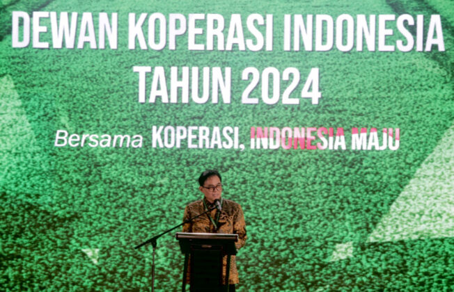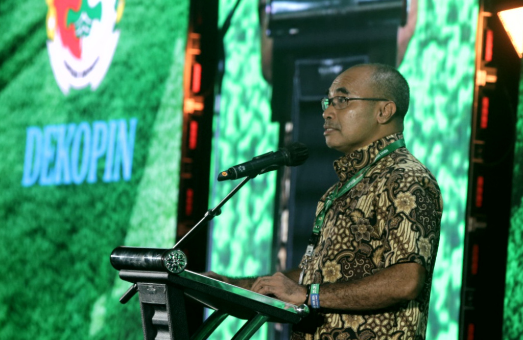 Ketum Dewan Koperasi Indonesia (Dekopin) Priskhianto menyampaikan sambutan saat pembukaan Munas Dewan Koperasi Indonesia (Dekopin) di Jakarta, Jum'at (27/12/2024).