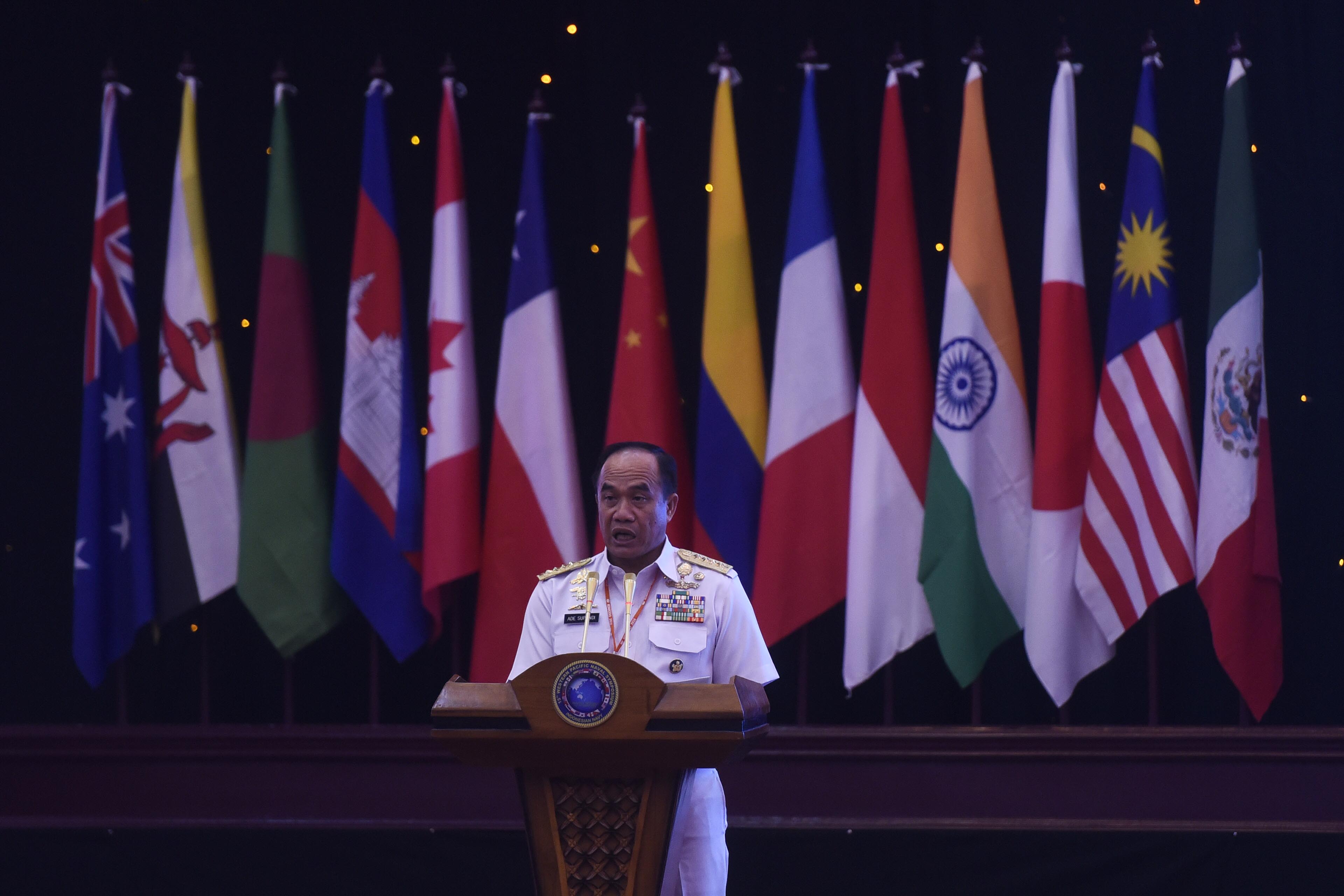 Kepala Staf Angkatan Laut Laksamana TNI Ade Supandi memberikan pidato saat membuka Western Pasific Naval Symposium (WPNS) ke-15 di Padang, Sumatera Barat, Rabu (13/4). WPNS yang diikuti delegasi angkatan laut dari 27 negara itu mengangkat tema Kerjasama Maritim untuk menjaga stabilitas di wilayah Pasific Barat. ANTARA FOTO/Akbar Nugroho Gumay/pd/16