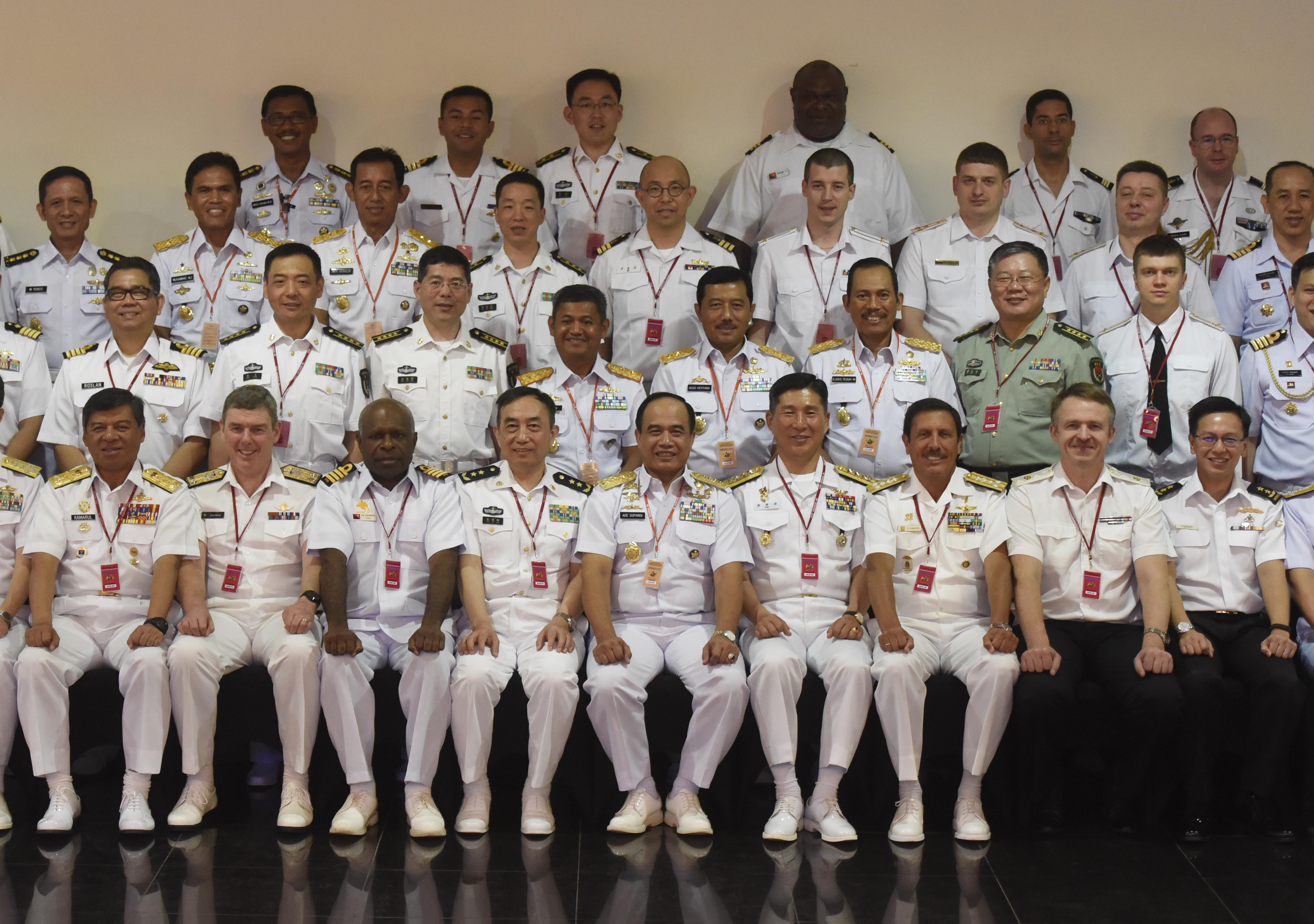 Kepala Staff Angkatan Laut Laksamana TNI Ade Supandi (tengah) berfoto bersama dengan perwakilan delegasi peserta Western Pasific Naval Symposium (WPNS) ke-15 di Padang, Sumatera Barat, Rabu (13/4). WPNS yang diikuti delegasi angkatan laut dari 27 negara itu mengangkat tema Kerjasama Maritim untuk menjaga stabilitas di wilayah Pasific Barat. ANTARA FOTO/Akbar Nugroho Gumay/pd/16